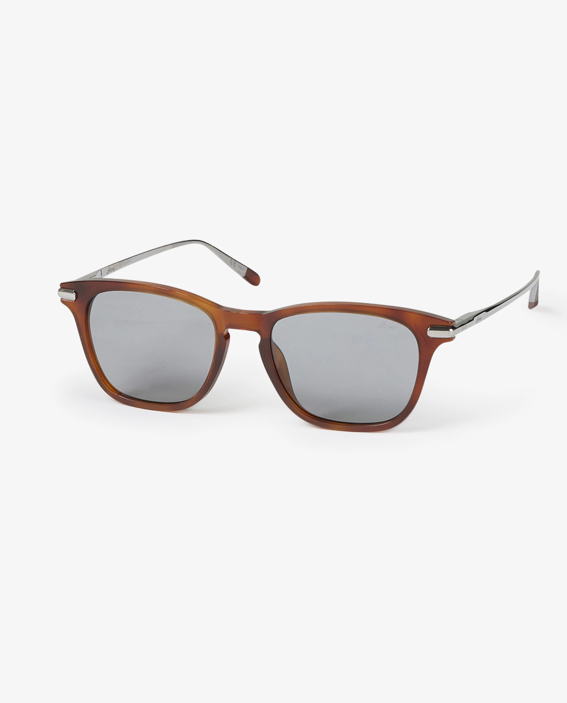 These sunglasses by Brioni are inspired on the 50’s. Made of acetate and titanium temples with a subtle Brioni logo. Wear with a high summer look – a bermuda, a short sleeve linen shirt and espadrilles.