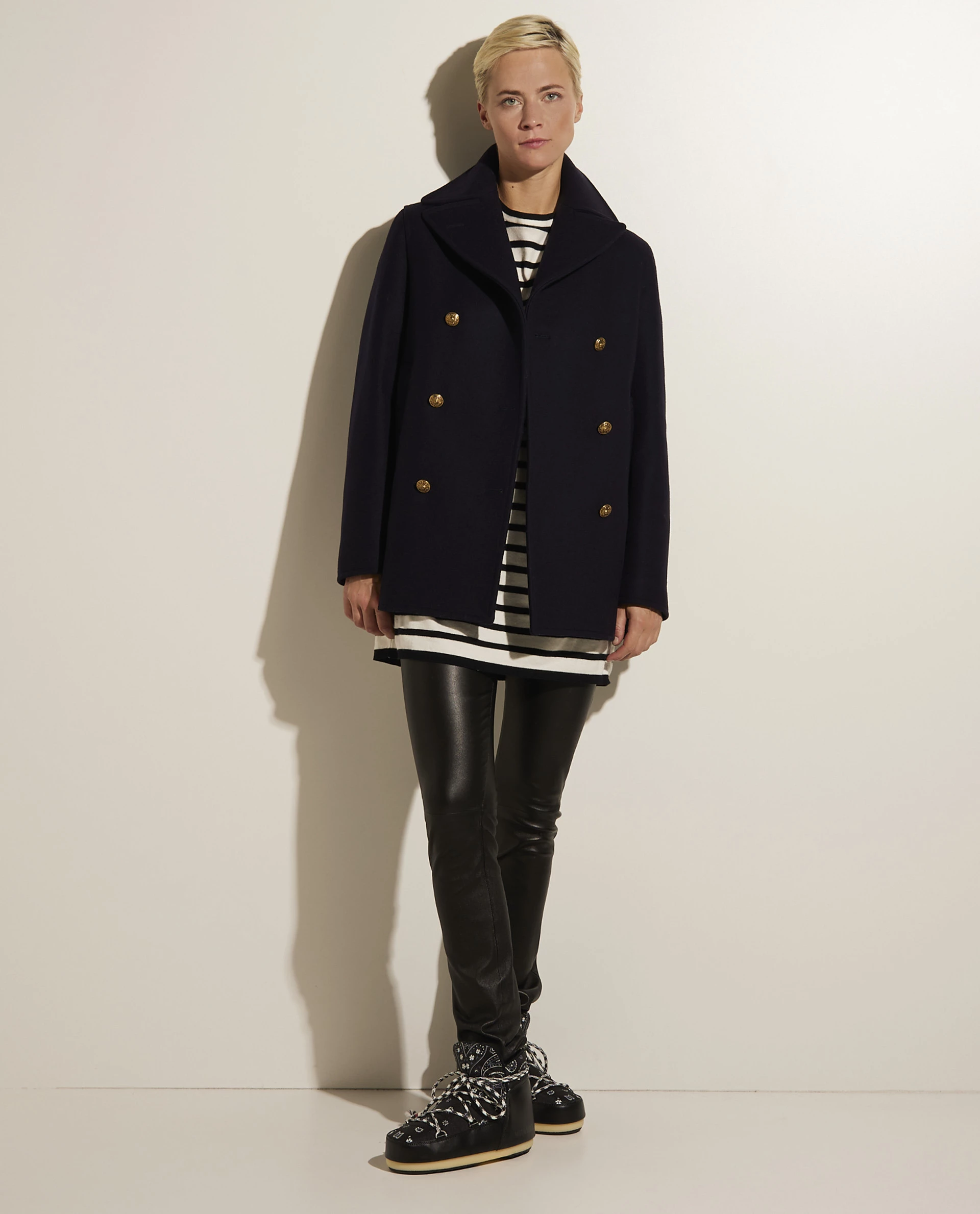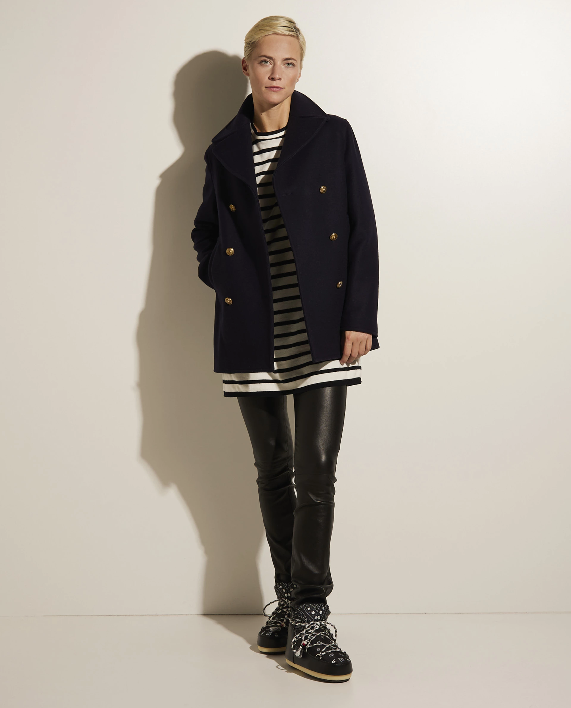 Besides an extensive footwear collection, we also offer carefully curated items from the Golden Goose clothing line. This double breasted coat is made in a firm and warm wool quality in Italy, and features a loose, straight fit.
