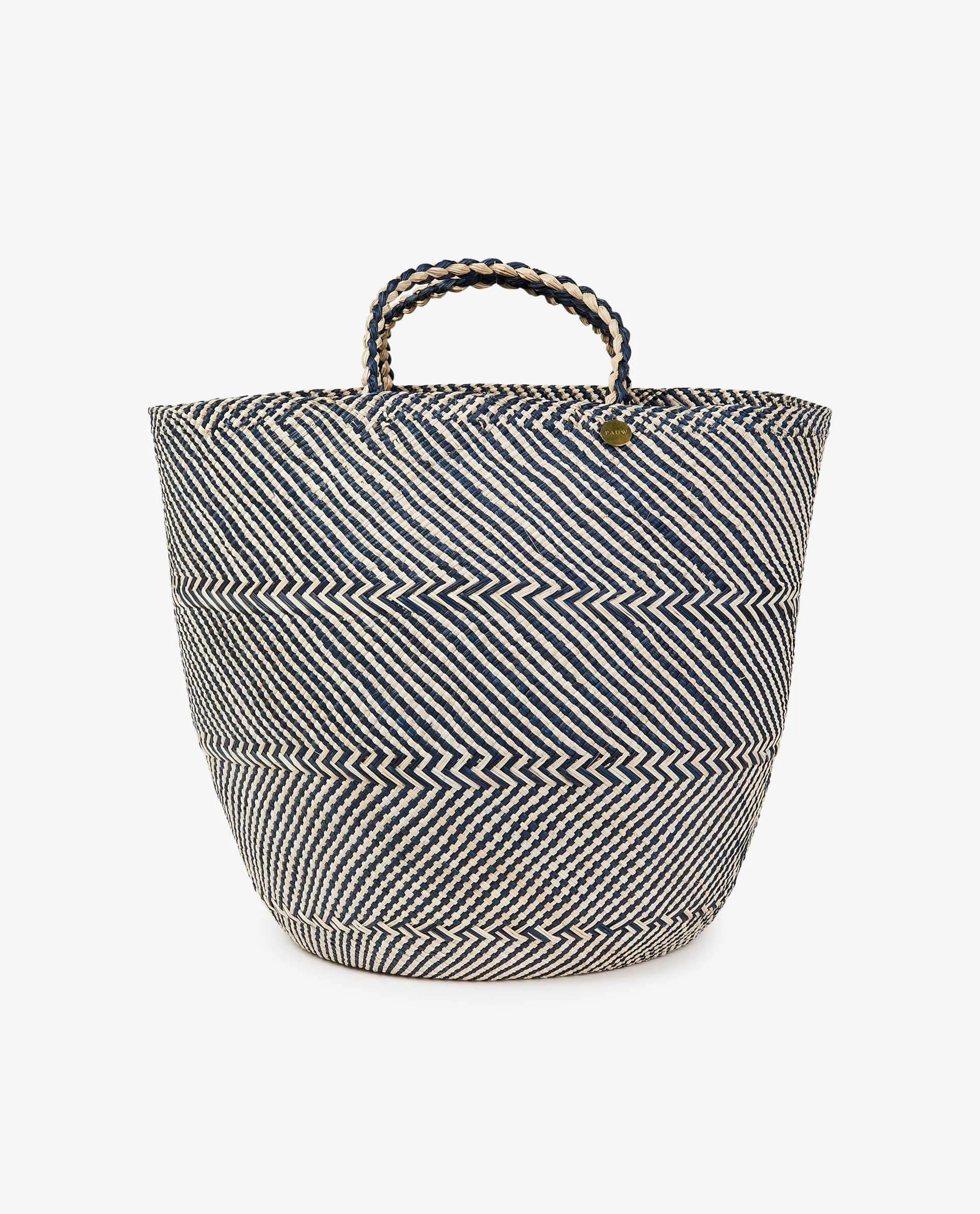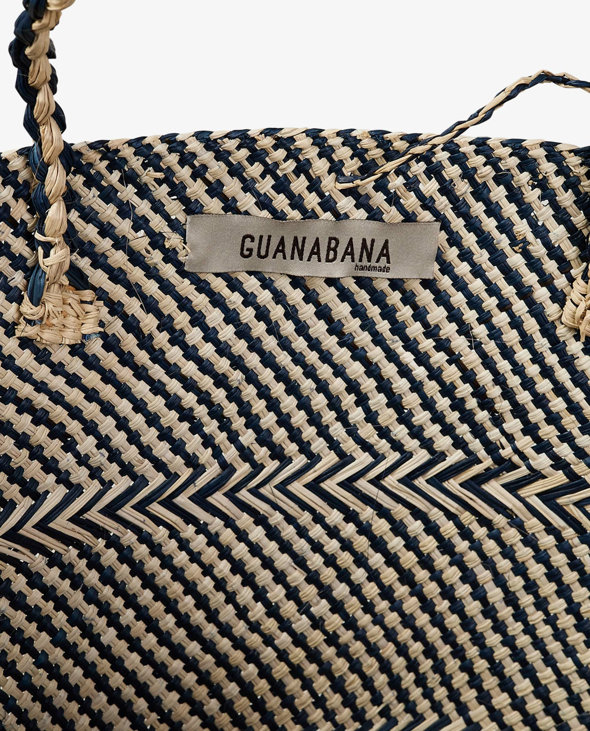 The design is handcrafted by Colombian Wayuu women using unique weaving techniques. Each bag is unique and entirely handmade, so there may be slight variations in shape or size. This shopper is also available in a smaller model.