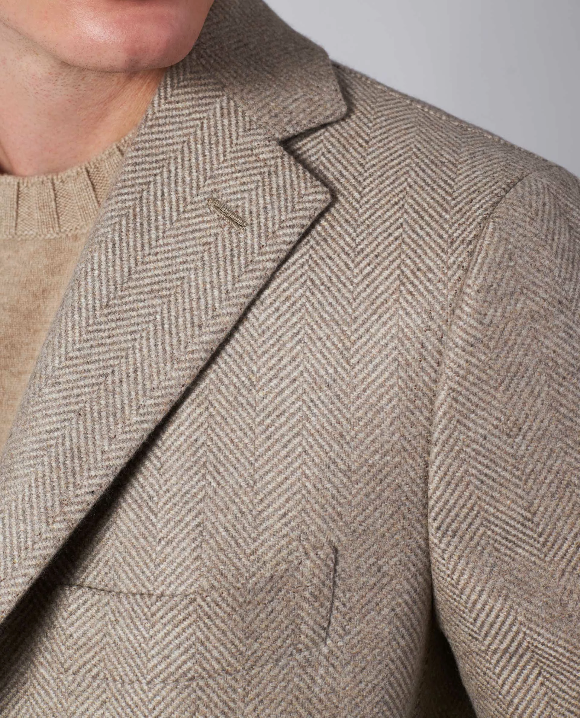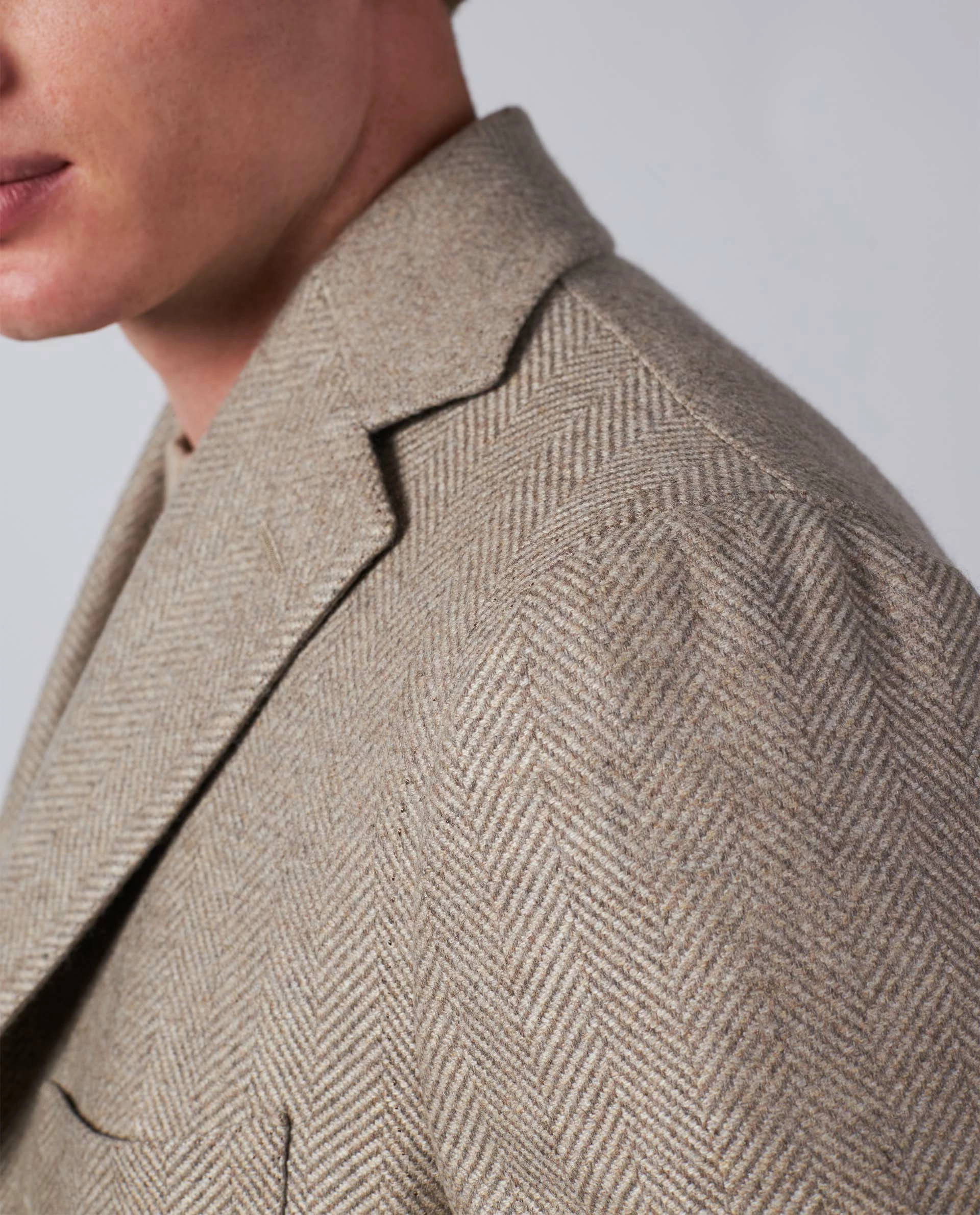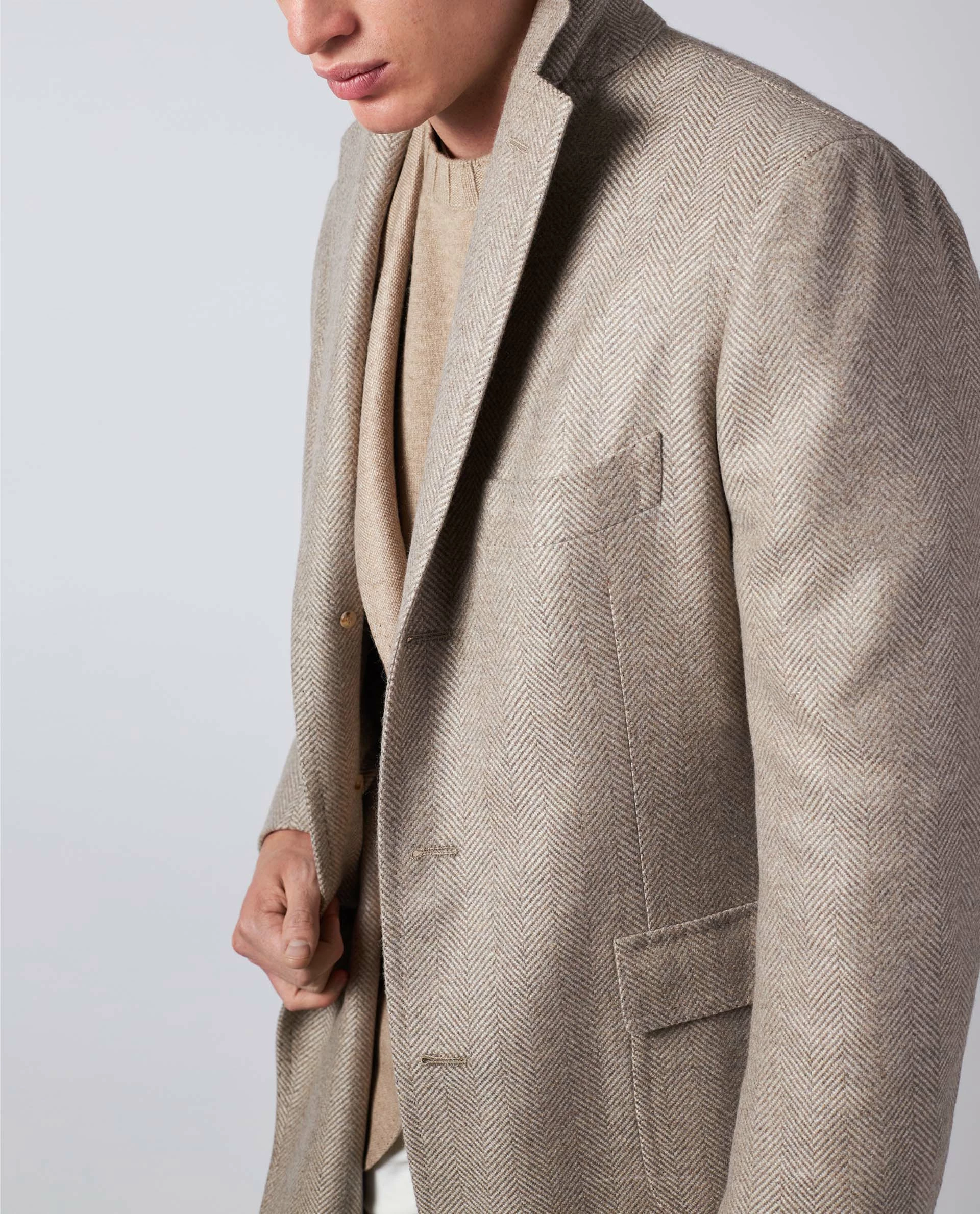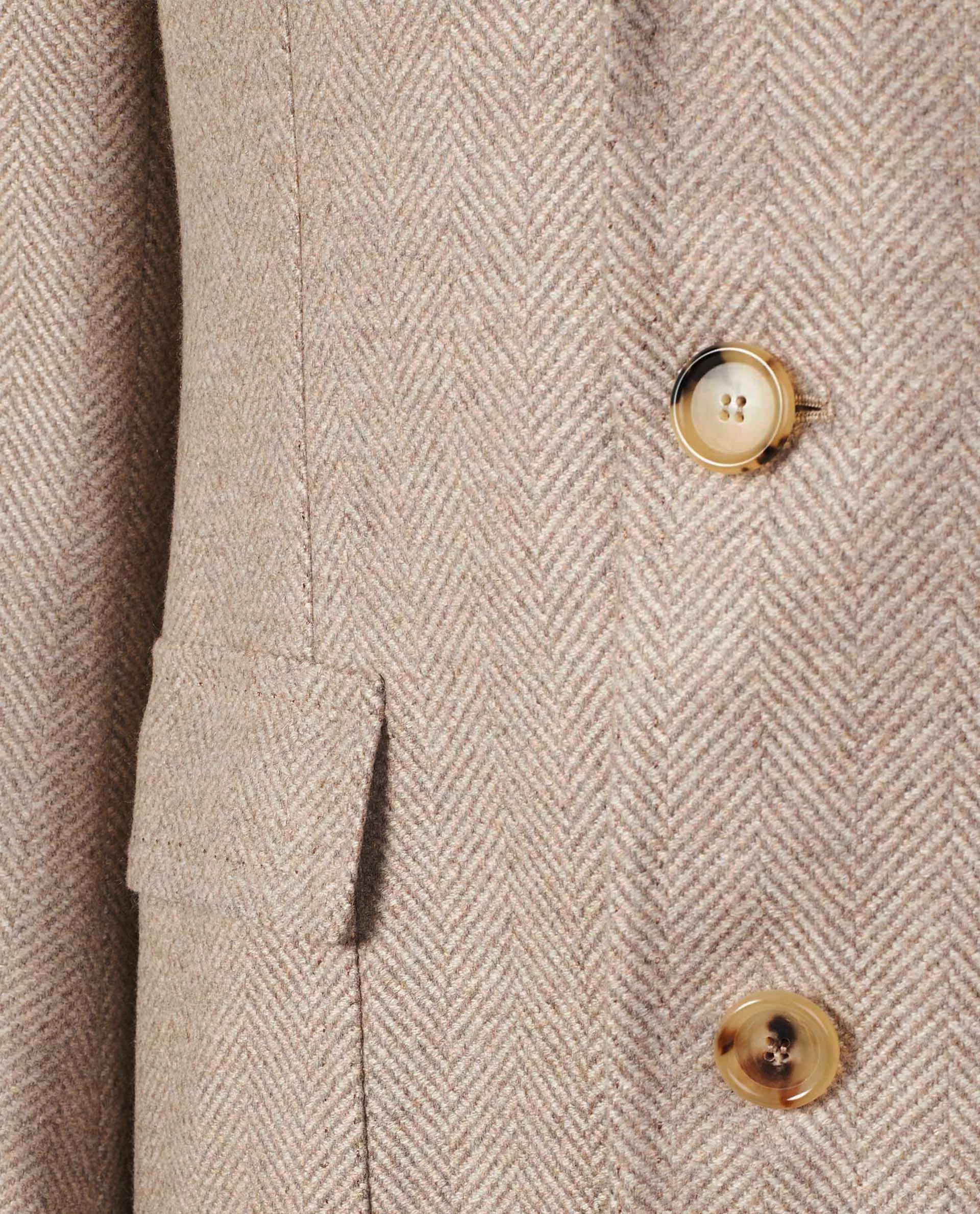 This dress coat by Cesare Attolini is crafted in cashmere, woven into a herringbone pattern. Finished with three horn buttons, a breast pocket and flap pockets. Combine this beige coat with similar colours like off-white and brown.