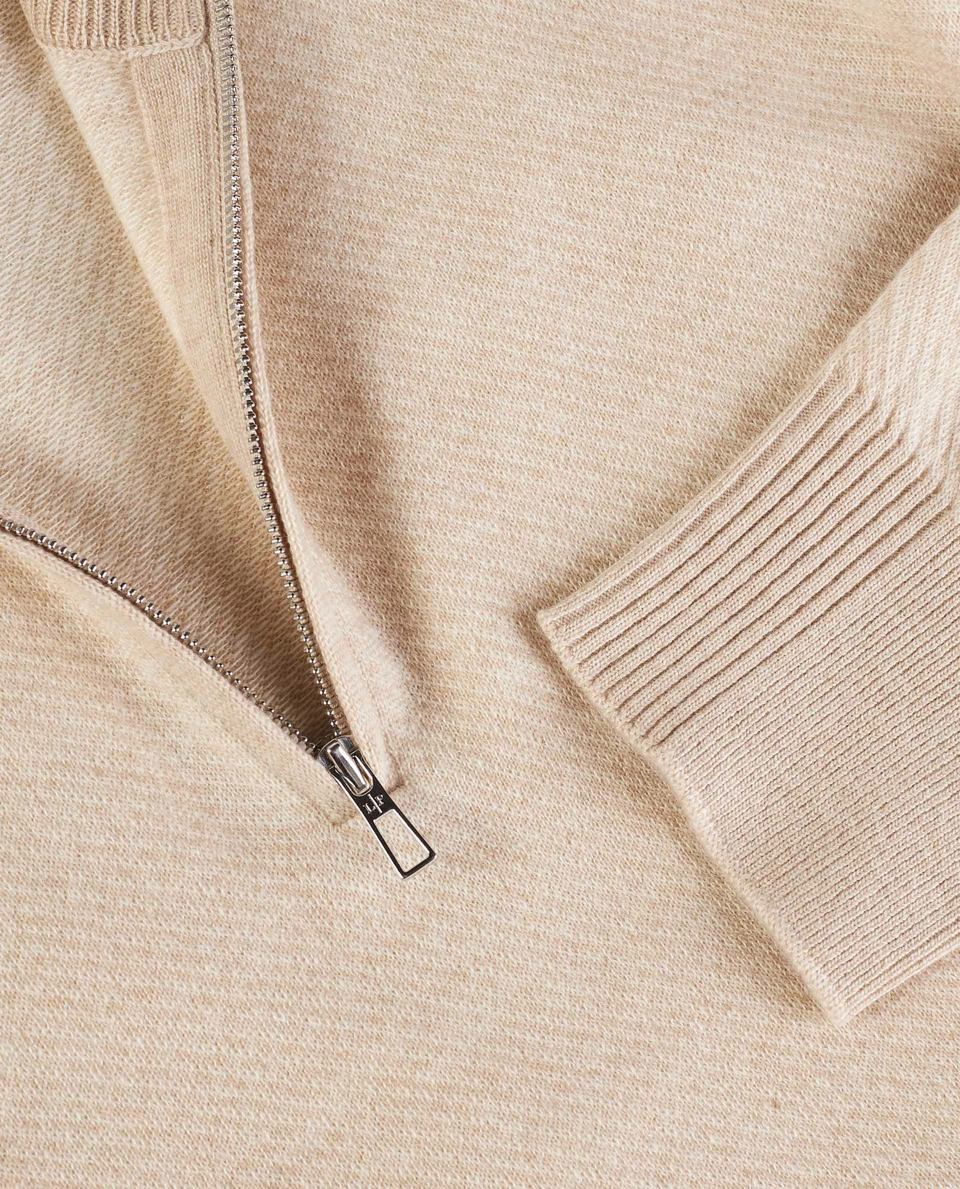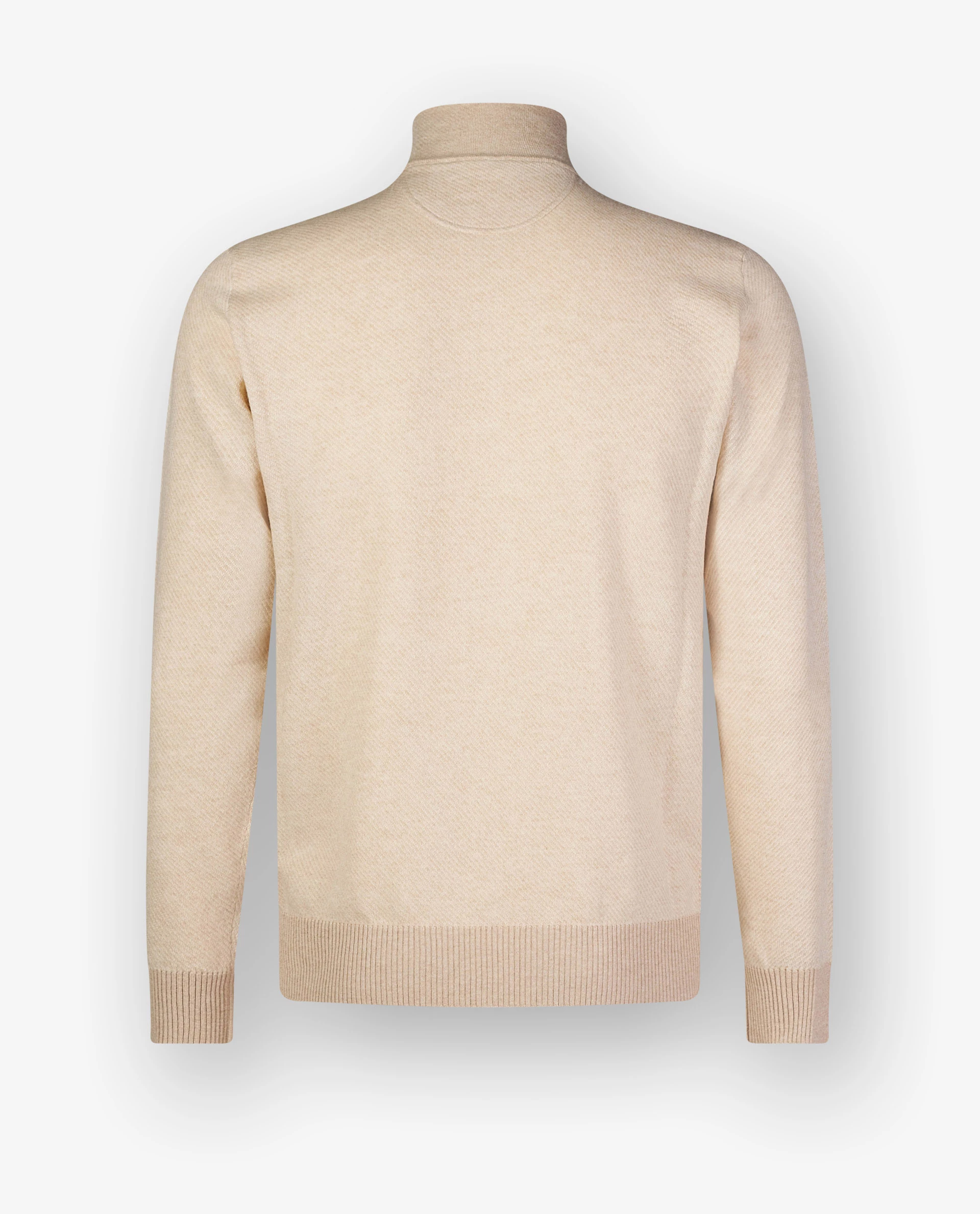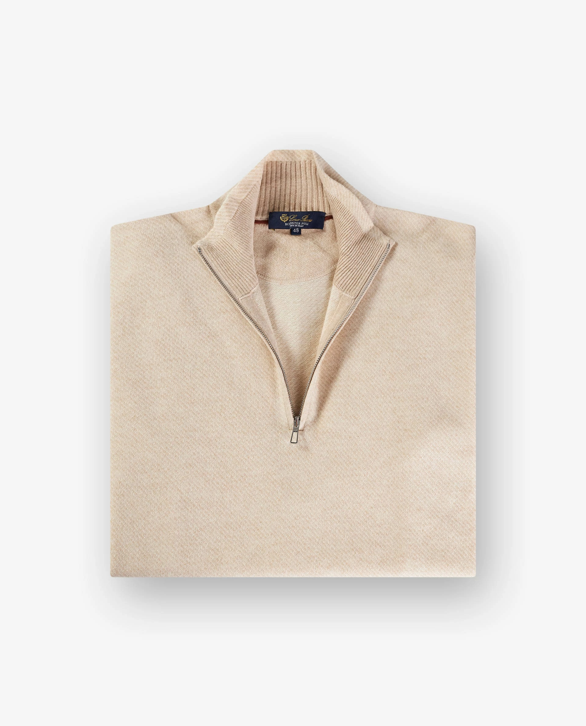 This Mezzocollo sweater is crafted in pure cashmere and woven into a two-tone jacquard stitch. This is inspired by the uniform of the Loro Piana Classic Car Team. Wear this lightweight zip knit as a layer underneath a jacket.