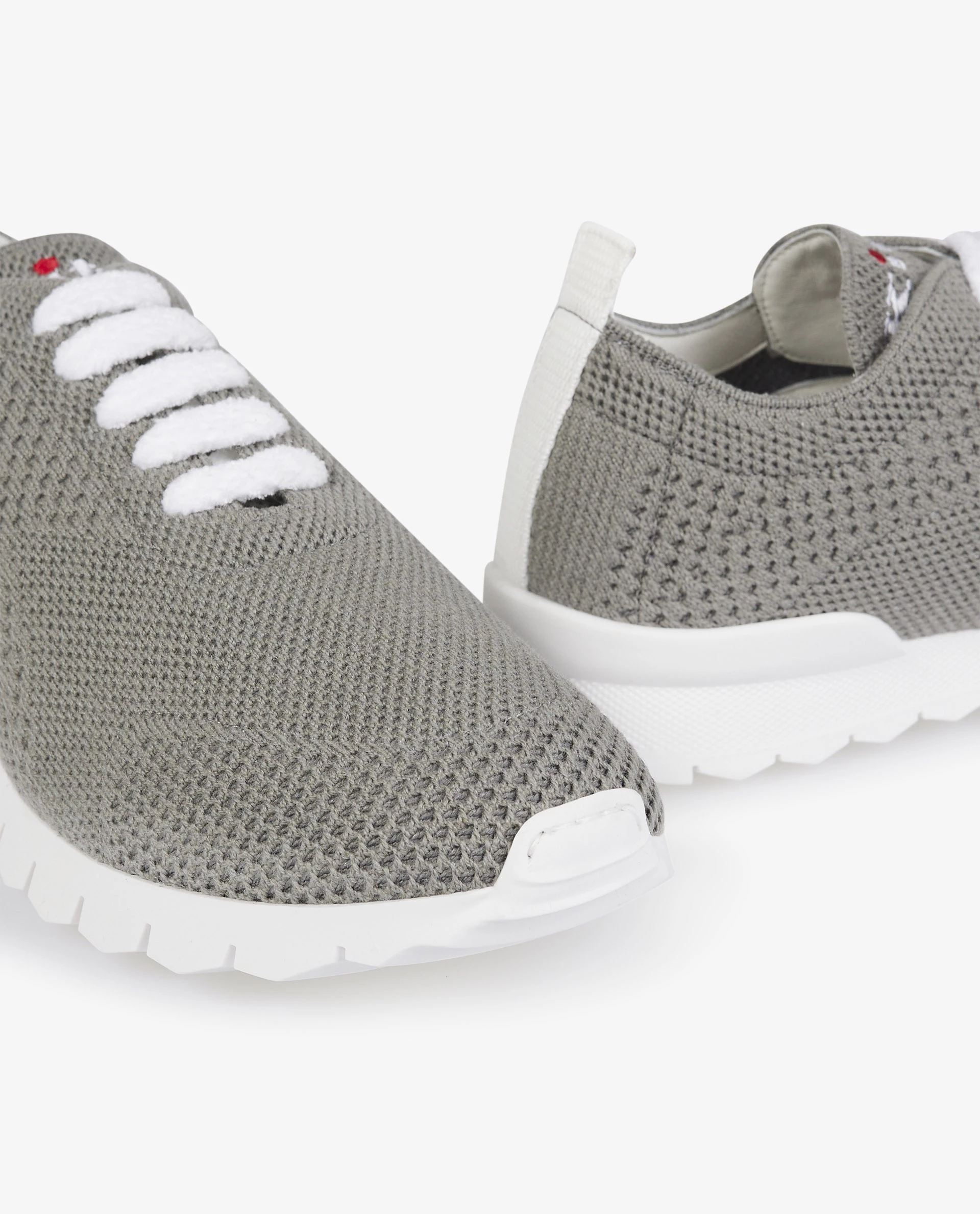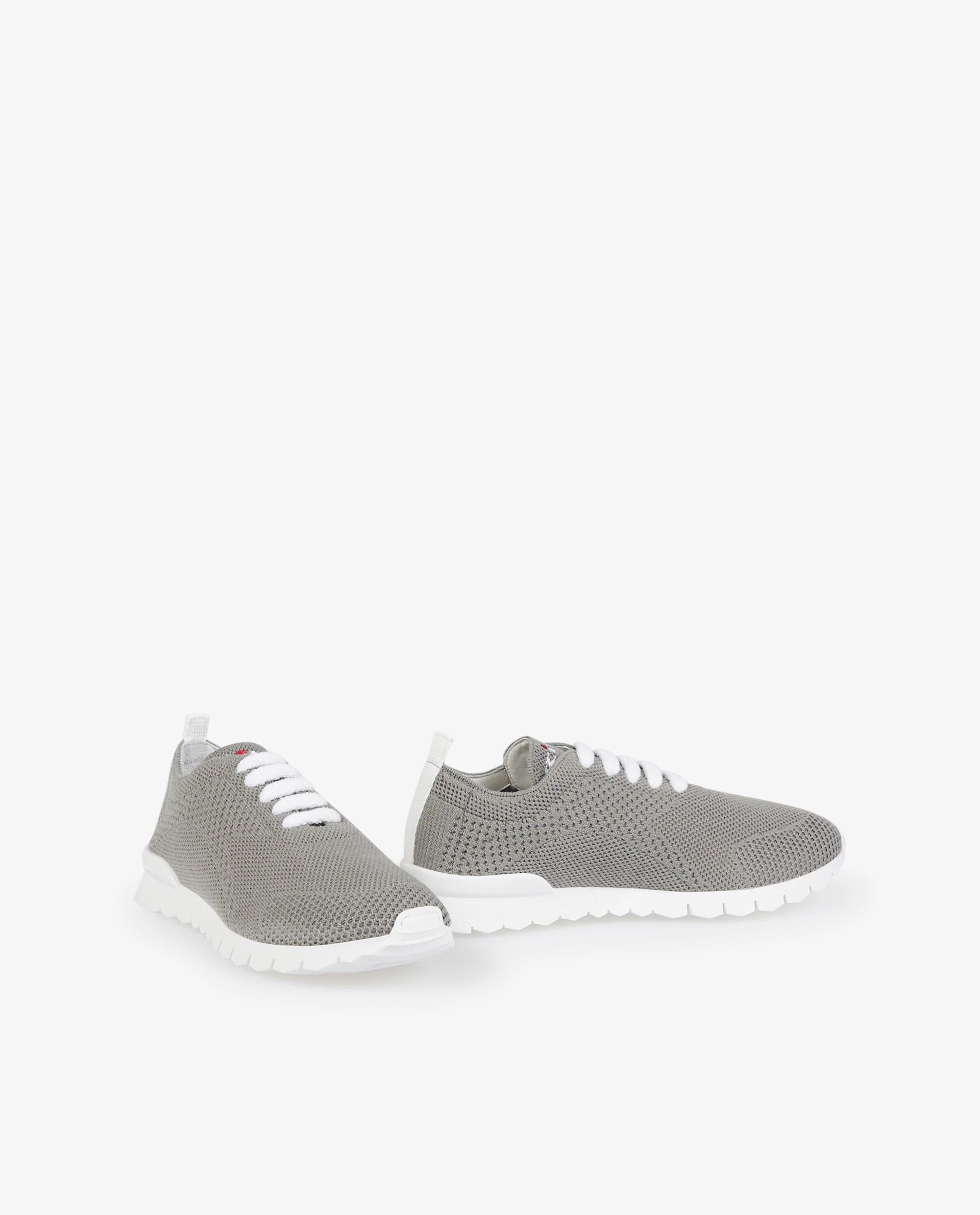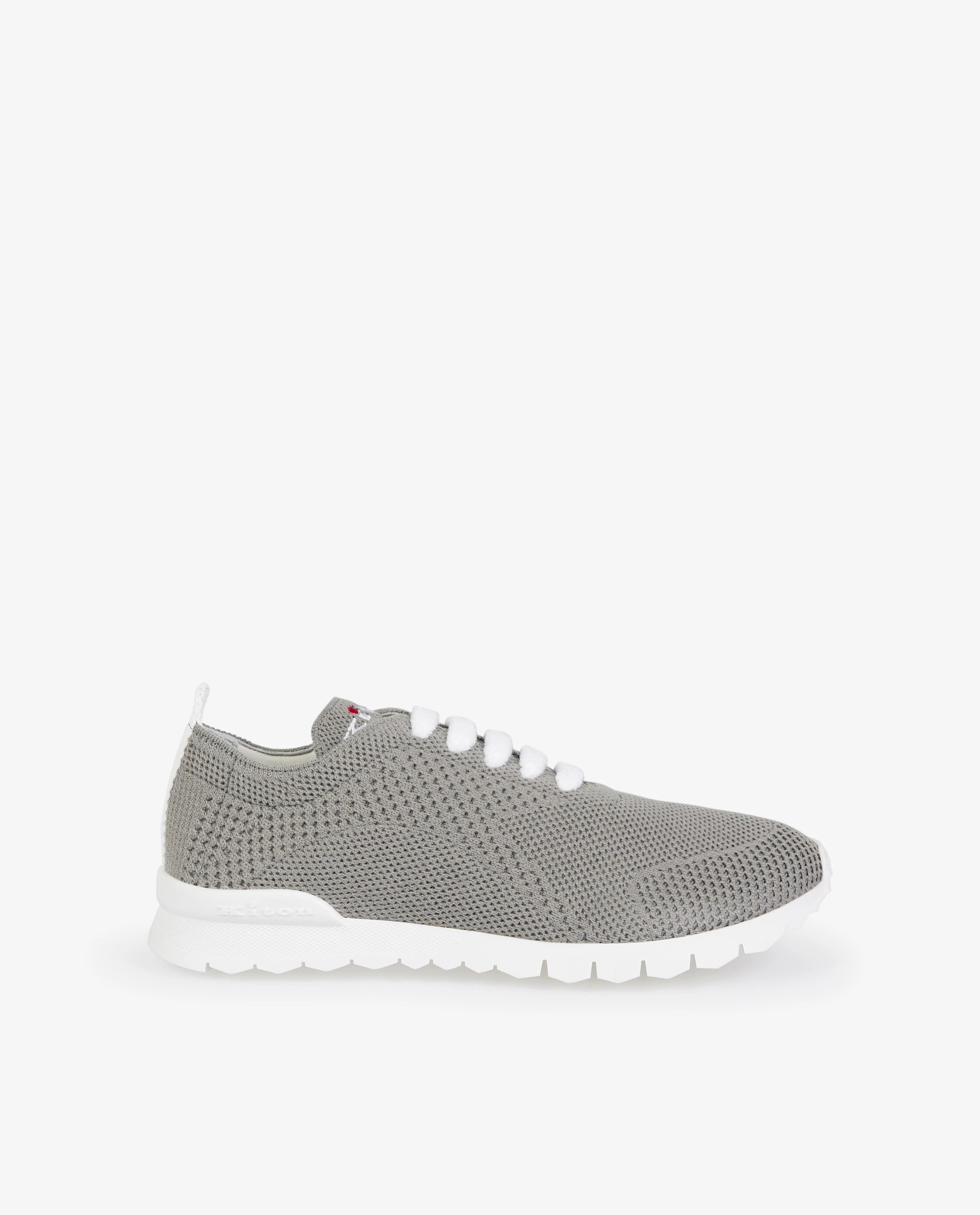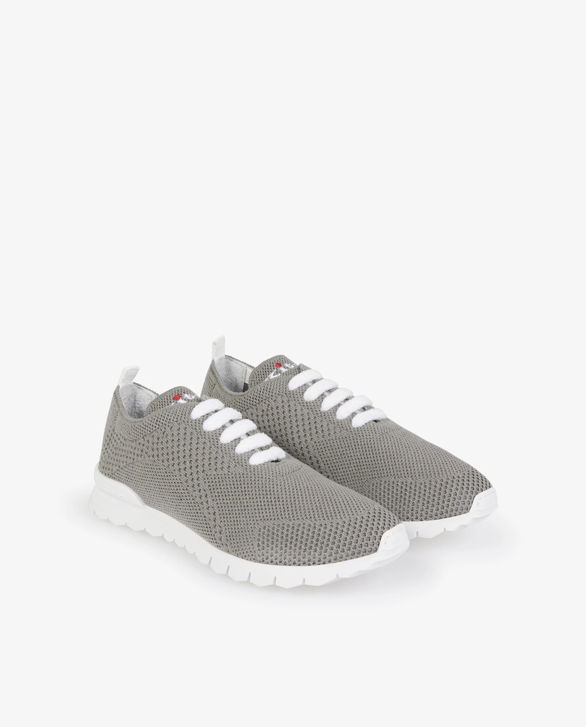 The FIT runners from the Kiton collection. These sneakers have a one-piece upper made of luxurious cashmere, combined with a flexible and lightweight white sole. The Kiton logo is embroidered on the tongue and the elastic mesh lacing ensures a comfortable fit.