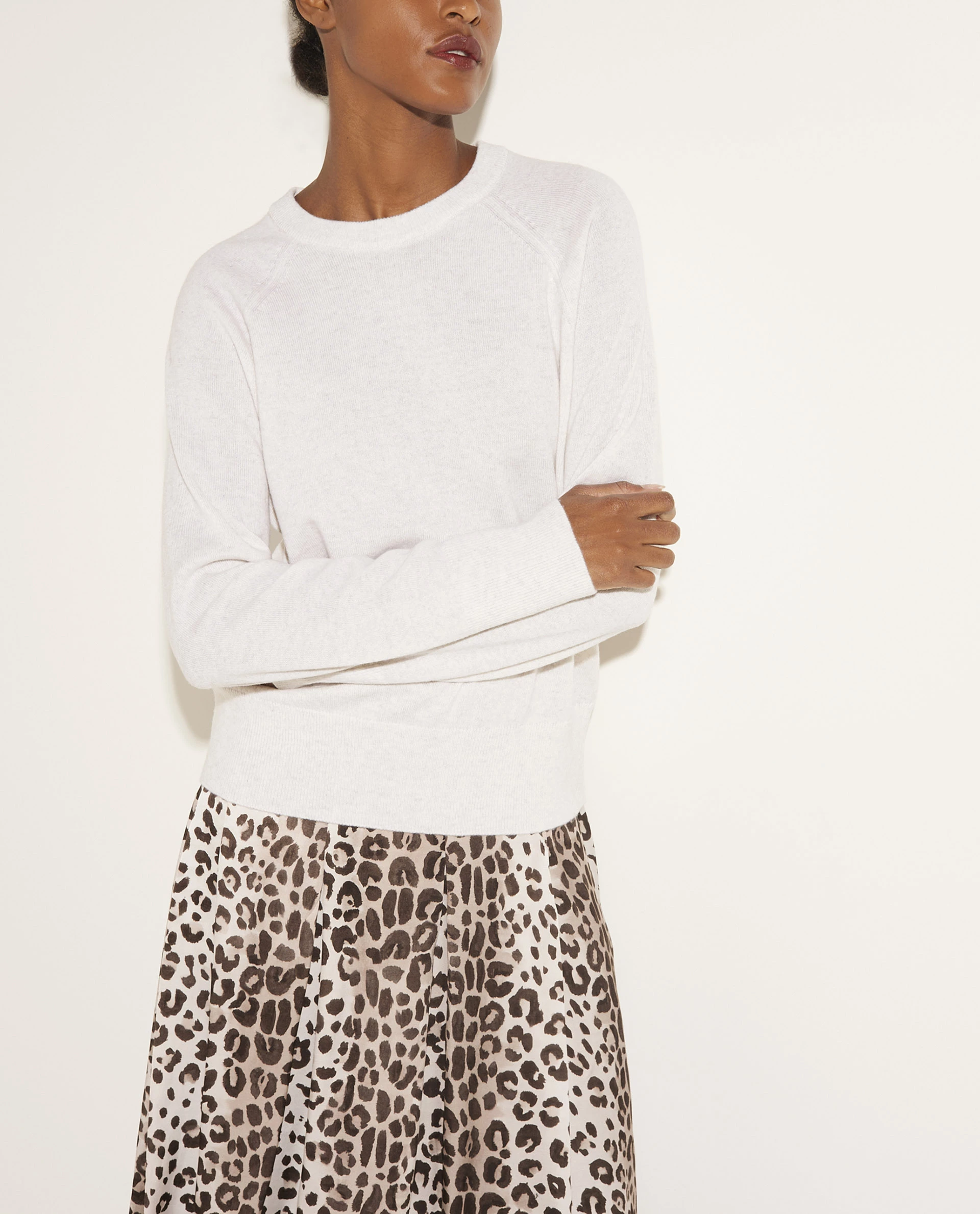 Soft sweater by Vince, made from a blend from wool and lightweight cashmere quality. This straight design features a crew neck and long sleeves.