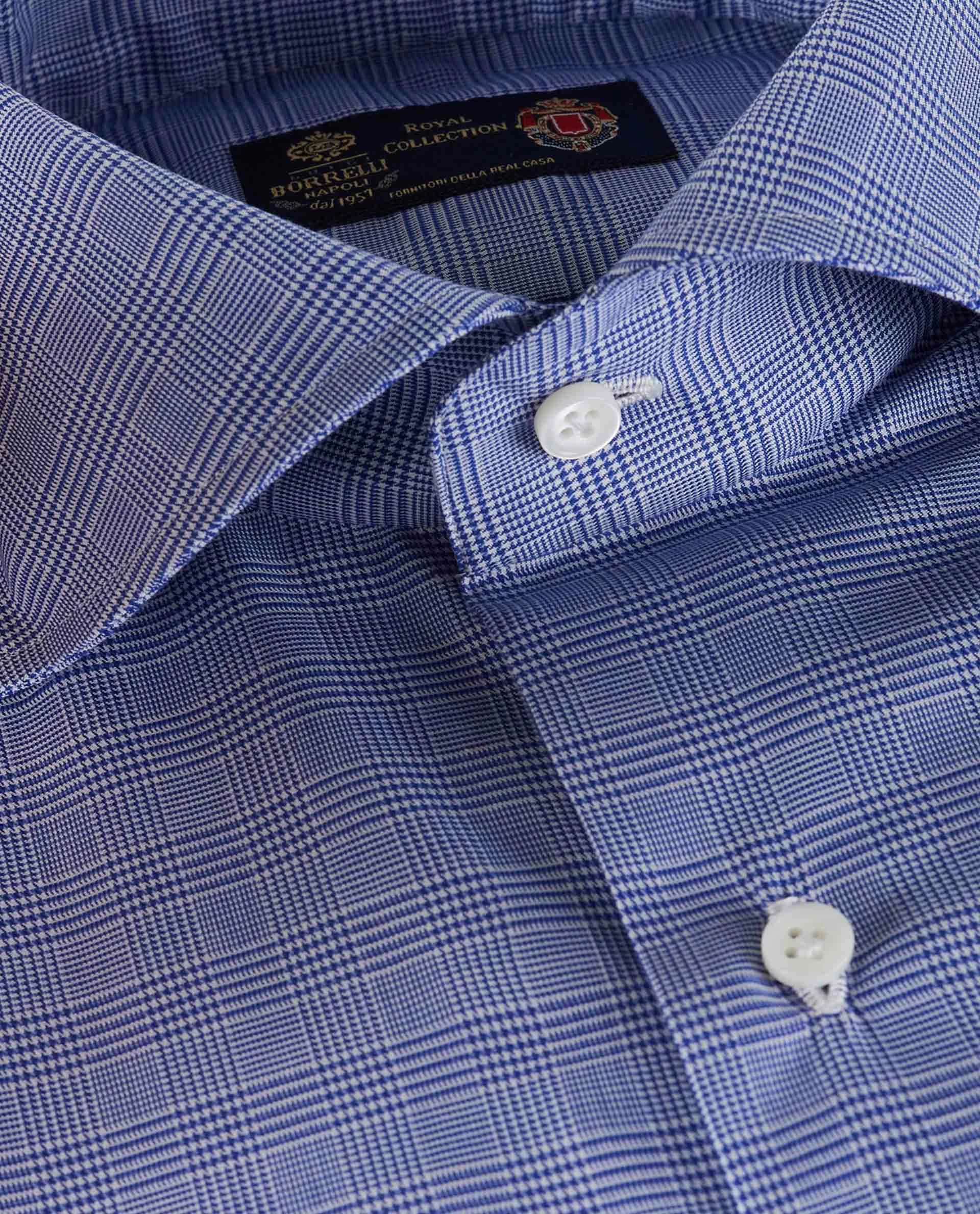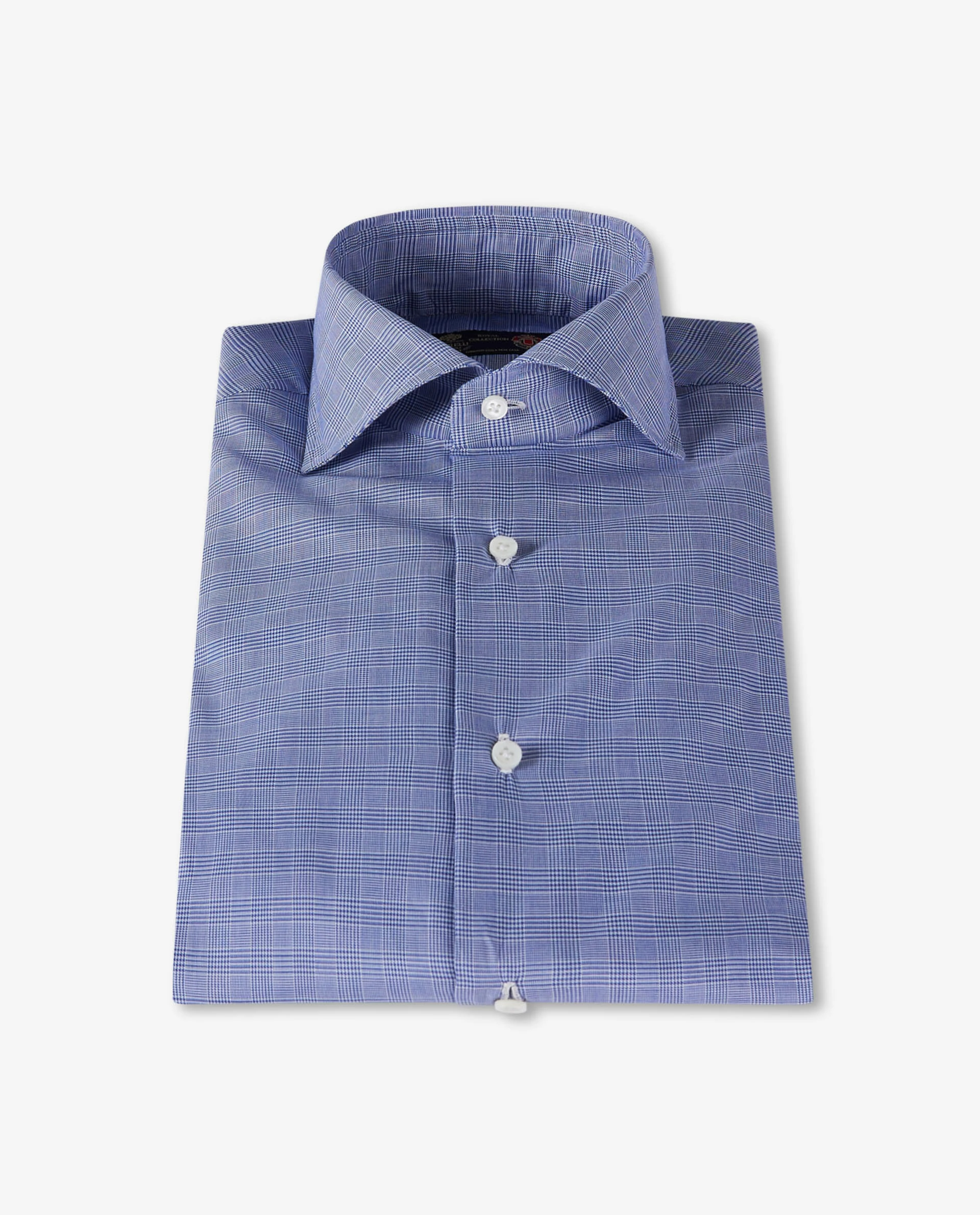 This shirt by Luigi Borrelli is made of pure cotton and woven into a noticable check. The spread collar lends itself well for wearing with a tie, but also unbuttoned. This creates an extremely versatile shirt for nearly every occasion. The handwork finishes it off and gives a luxurious look to it.