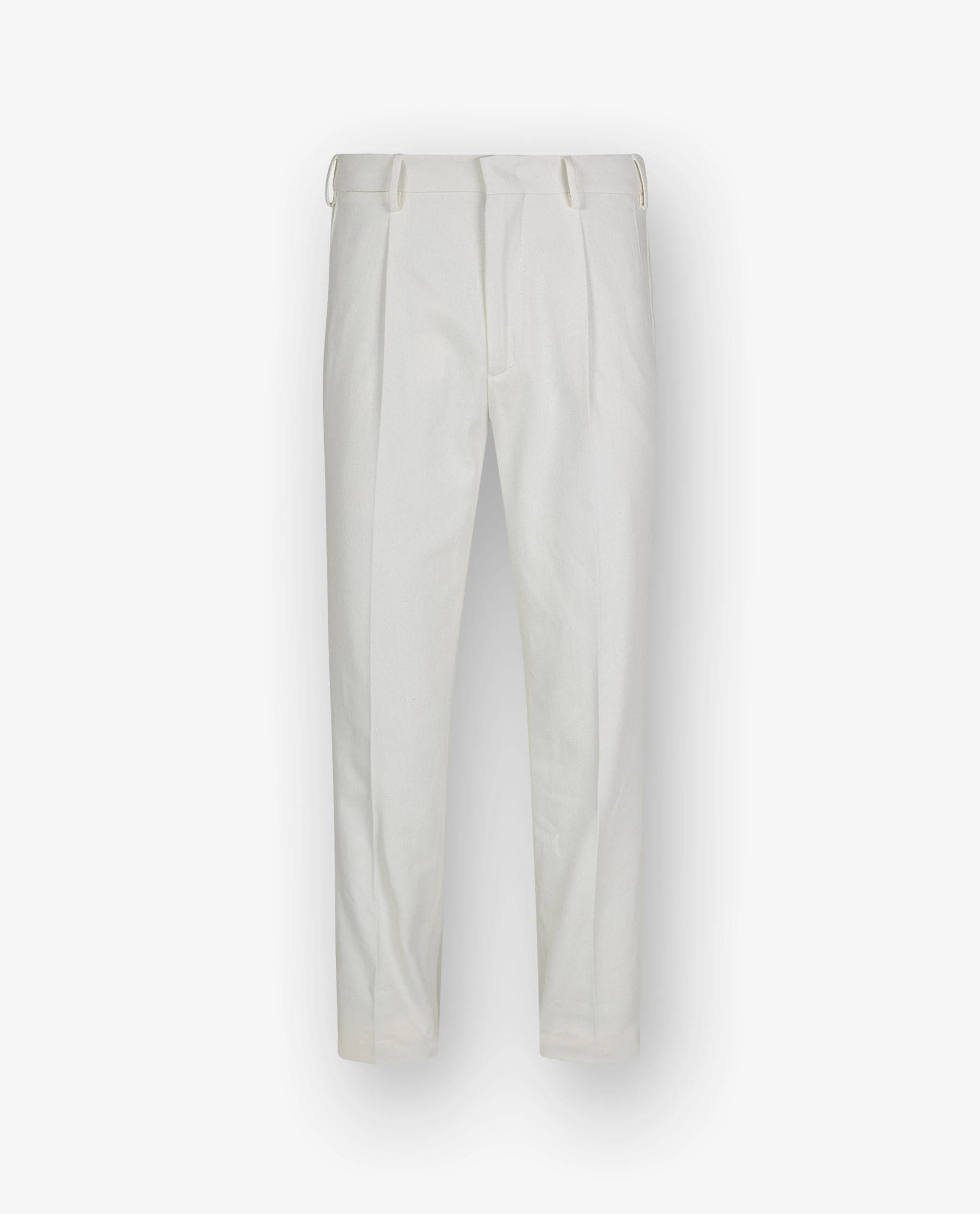These trousers by Loro Piana is crafted in cotton denim, feature pleats and slit pockets on the front and welt pockets on the back. This item matches perfectly with a crewneck knit, a jacket, and double monk strap shoes.