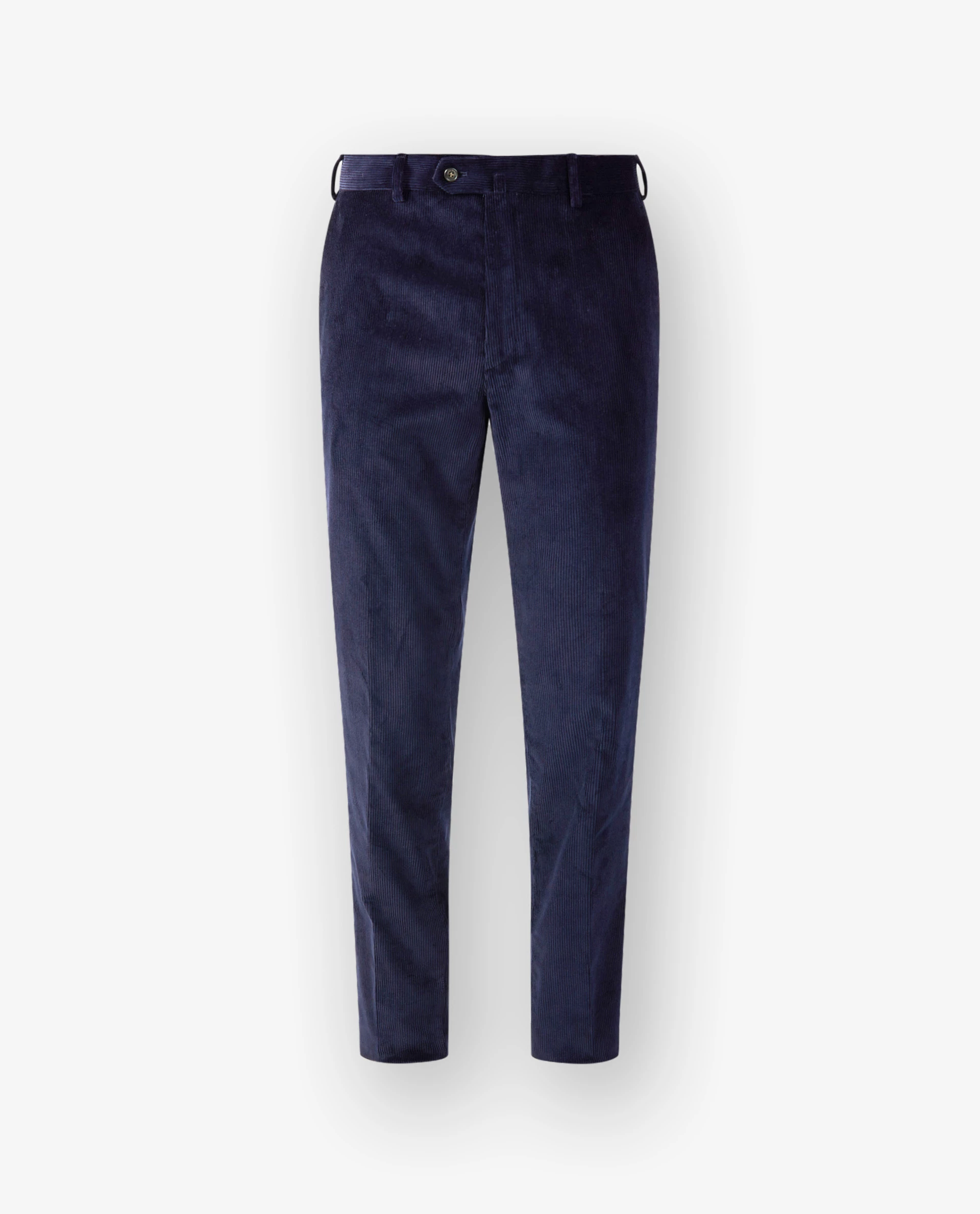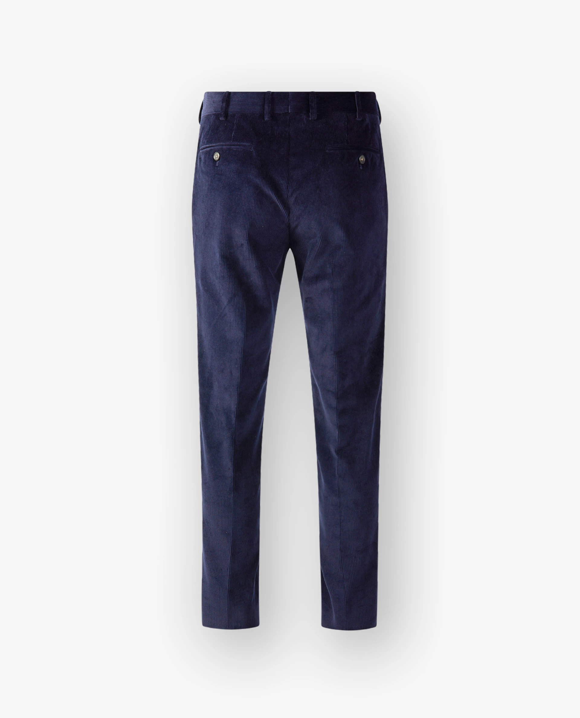 These corduroy trousers by Loro Piana have been made of luxurious cotton. The model is finished with beltloops and has a flat front. Its fit is slim and modern. Combines well with a cashmere turtleneck and open walks.