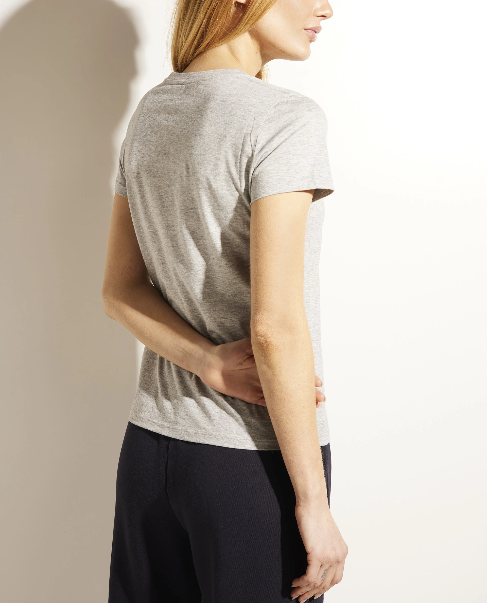 T-shirt by the brand Vince in a subtle cotton fabric. This easy going model has a slim fit and wears super comfortable. A must have basic.