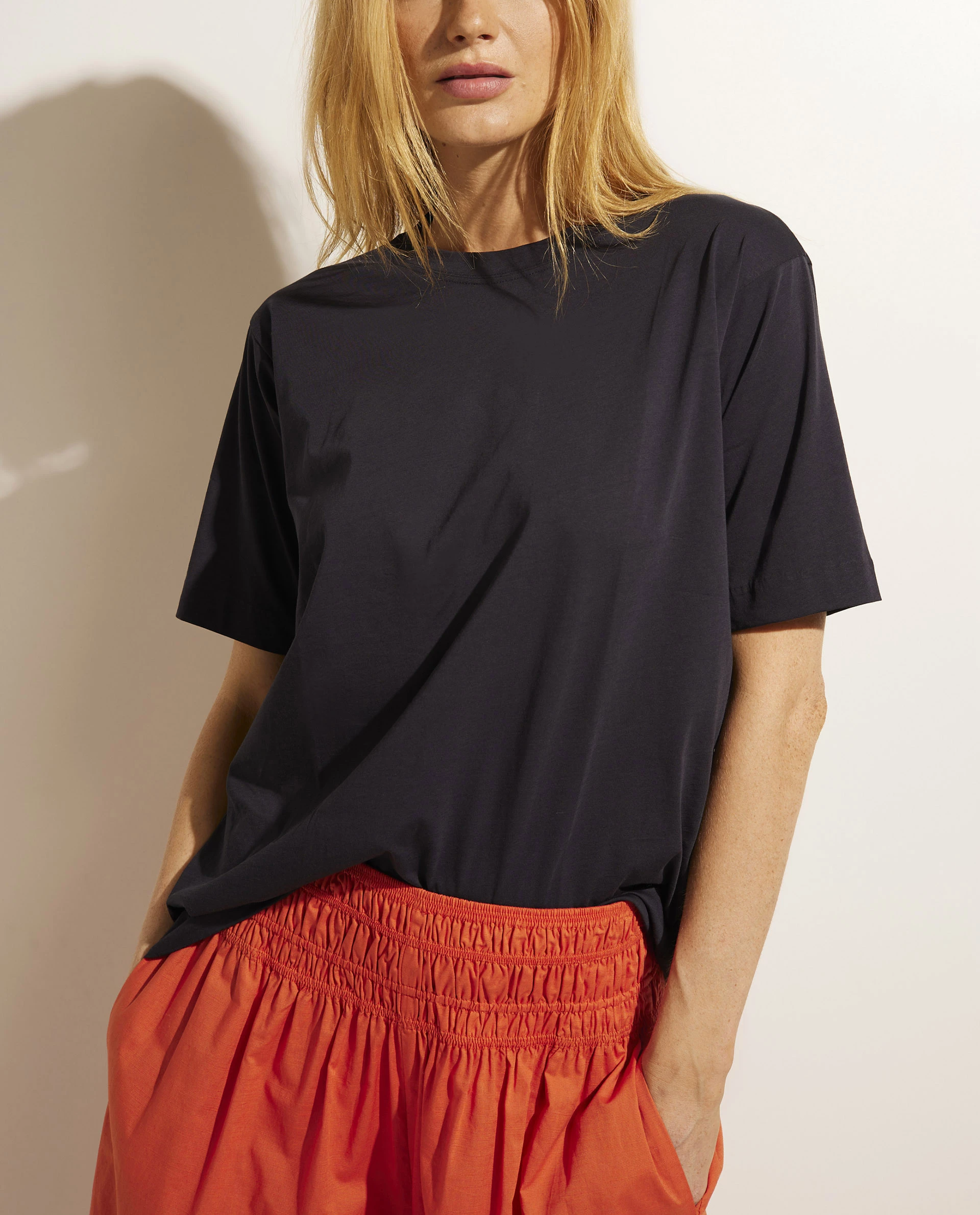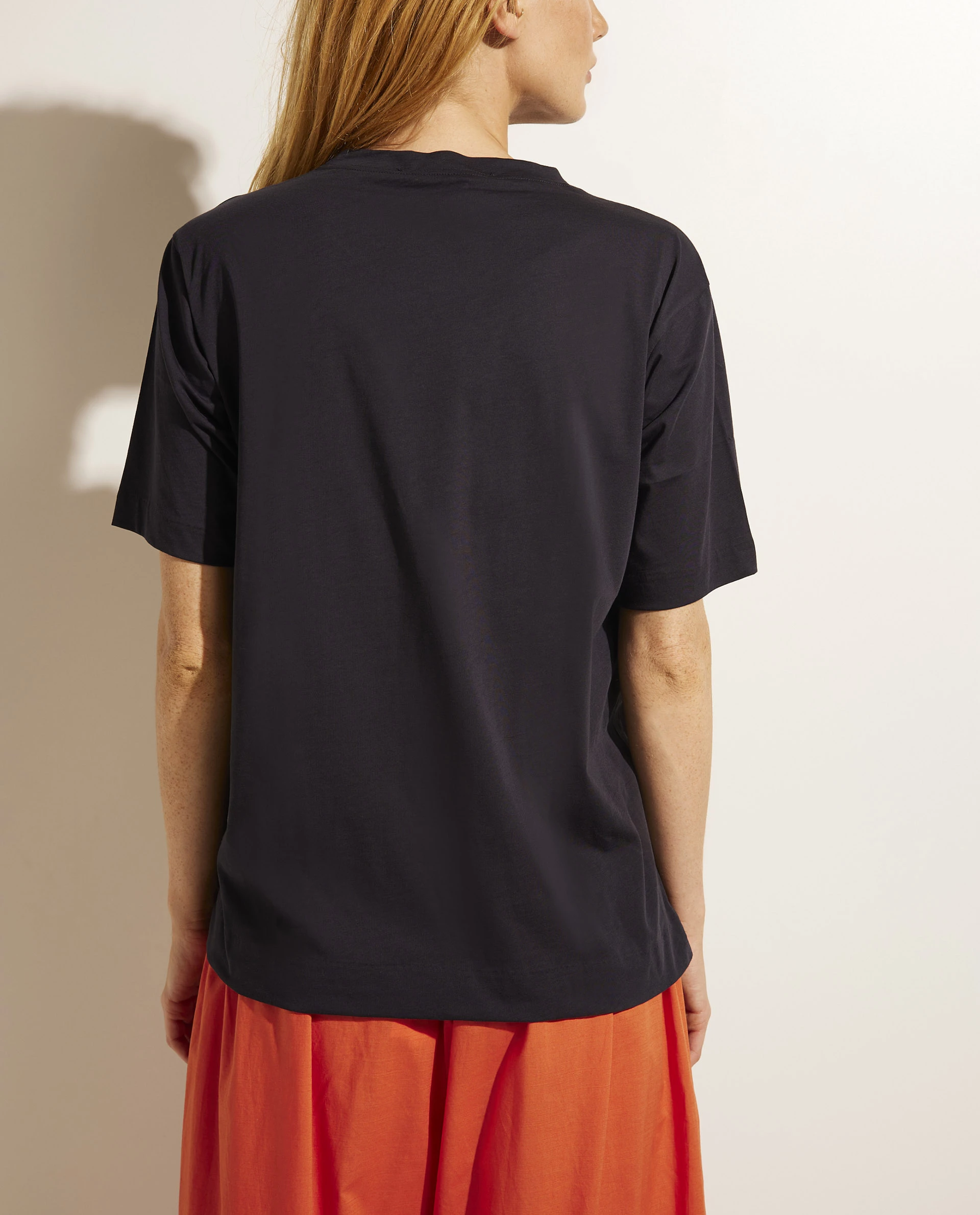 The Belgium designer Sofie D’Hoore is known for her pure and minimalistic designs. This cotton T-breathes the Sofie D’Hoore style and is the perfect basic. This round neckline model is made of a fine cotton jersey and designed for a straight fit with short sleeves. It is detailed on both sides with subtle splits.