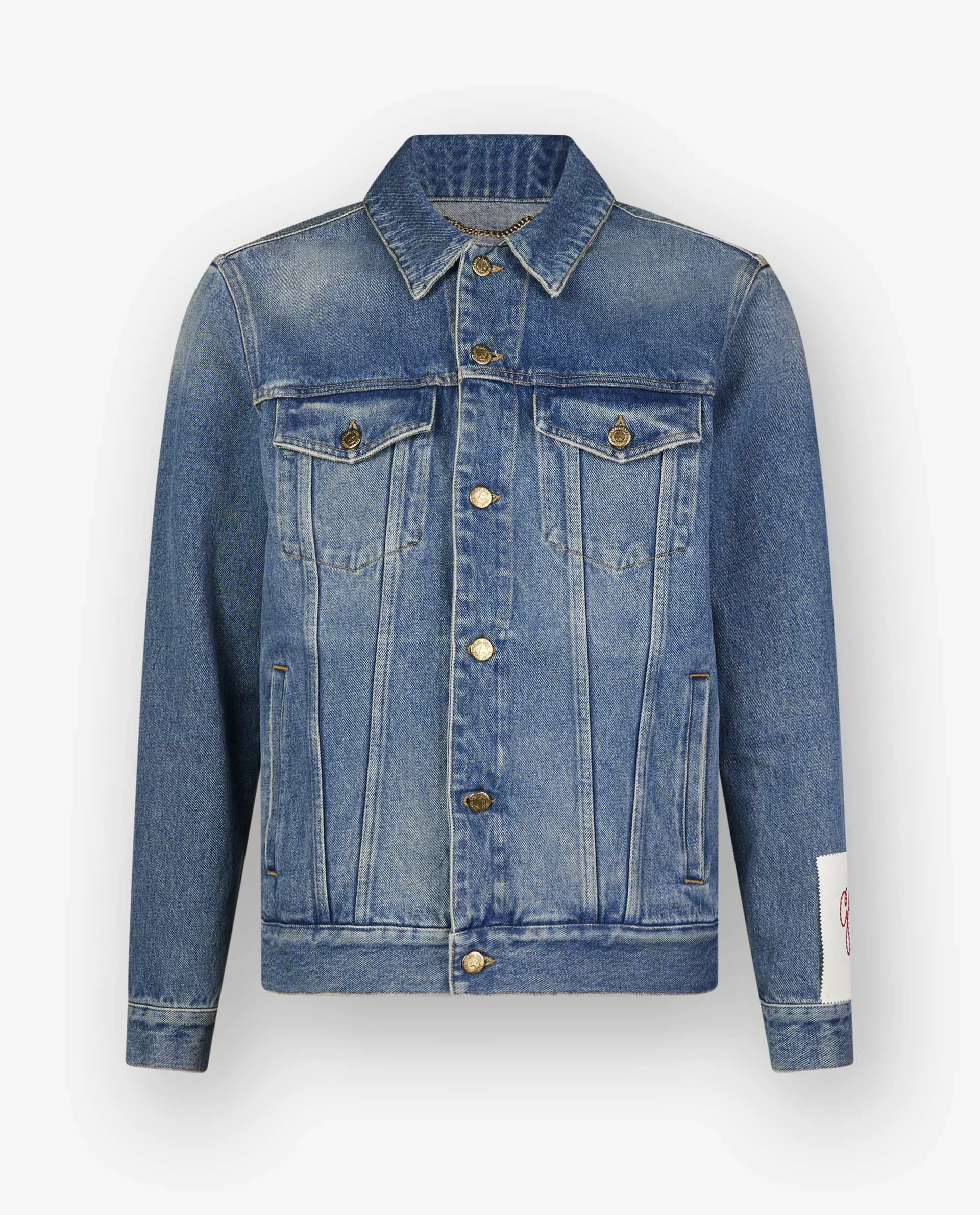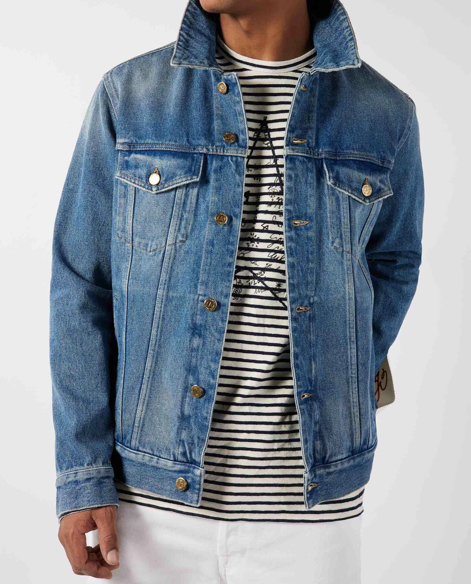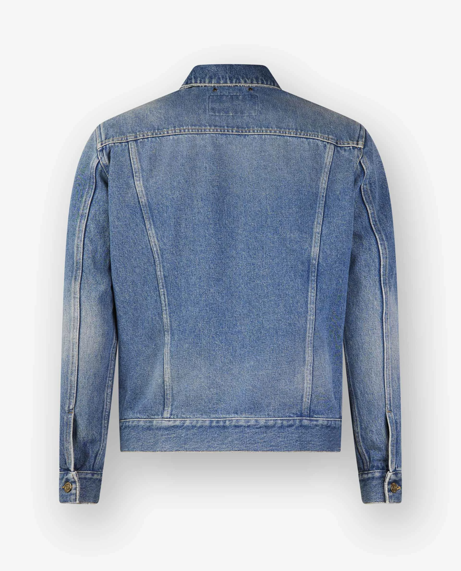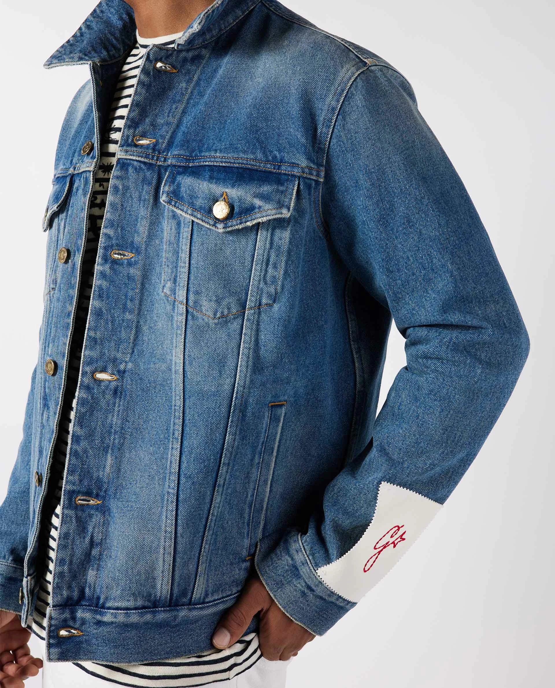 This denim jacket by Golden Goose is made of cotton. Has two patched flap pockets, two slit pockets and a white patch with a red embroidered G – which can be easily detached. Pair with a striped t-shirt, a white denim, and sneakers.