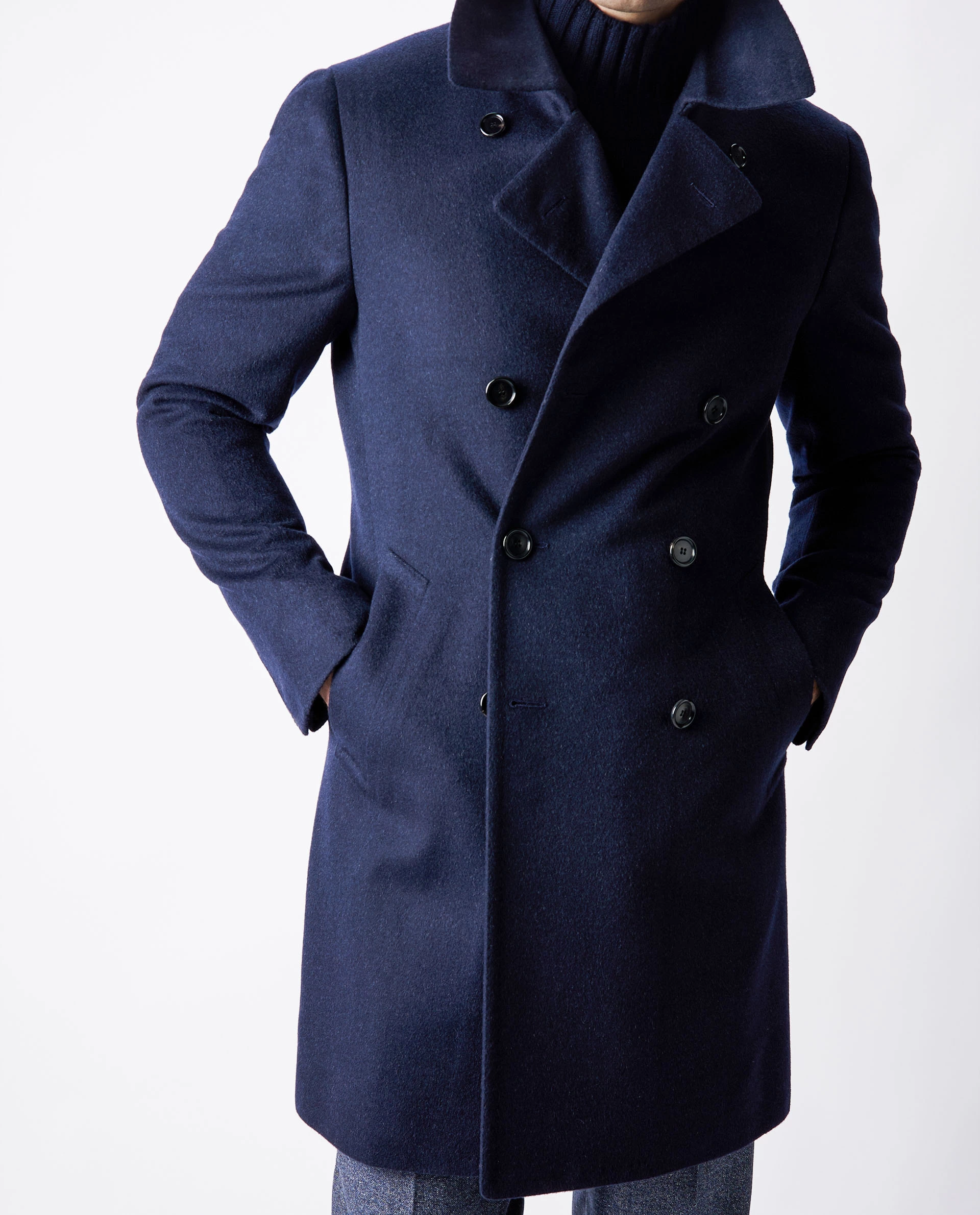 This double breasted coat by Cesare Attolini is made of pure baby camelhair. This ultra soft coat features slit pockets, interior pockets, a martingale and a back vent. Pair this luxurious coat with a suit.