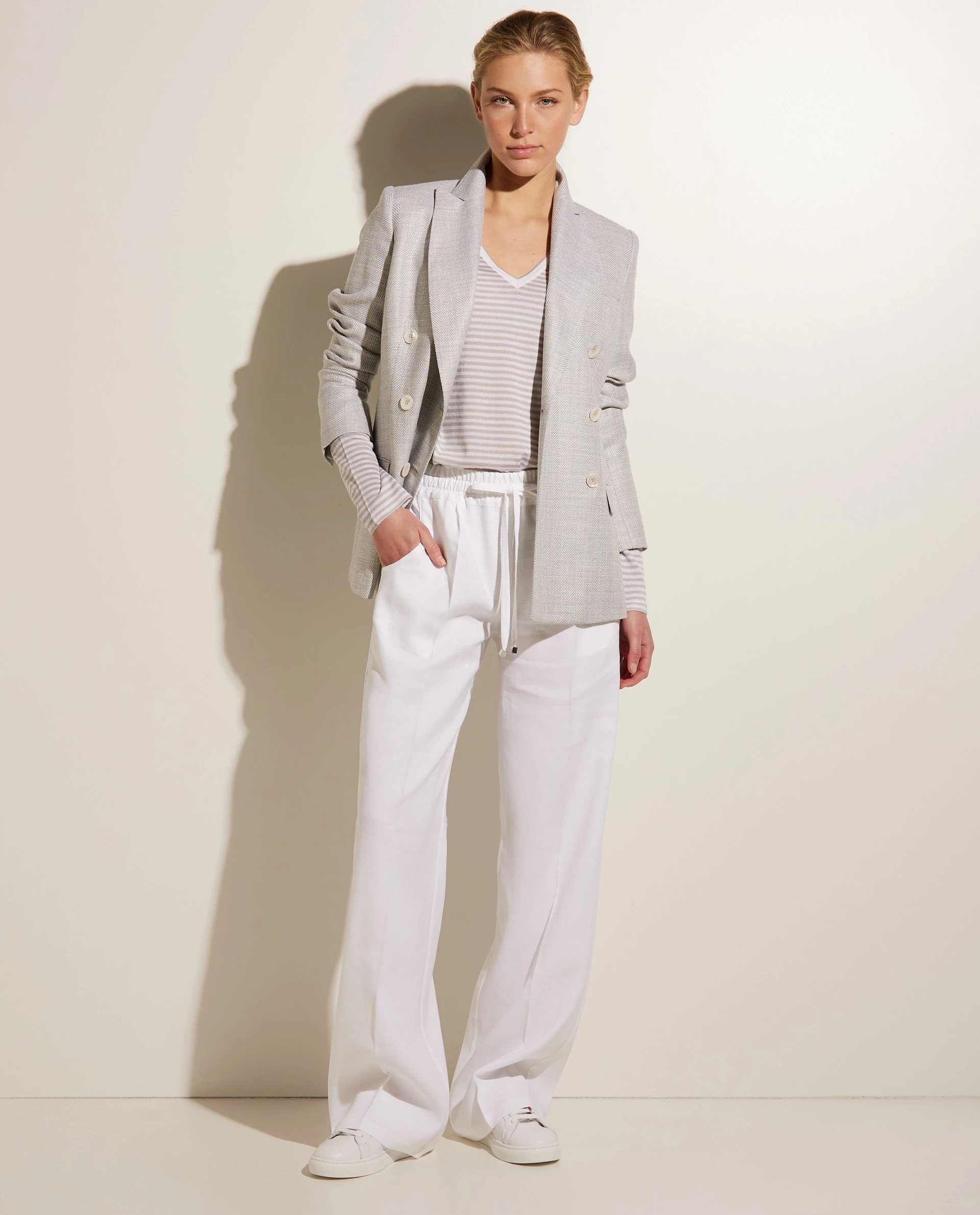 Double breasted blazer with a tailored fit. This blazer is made of a sturdy quality.