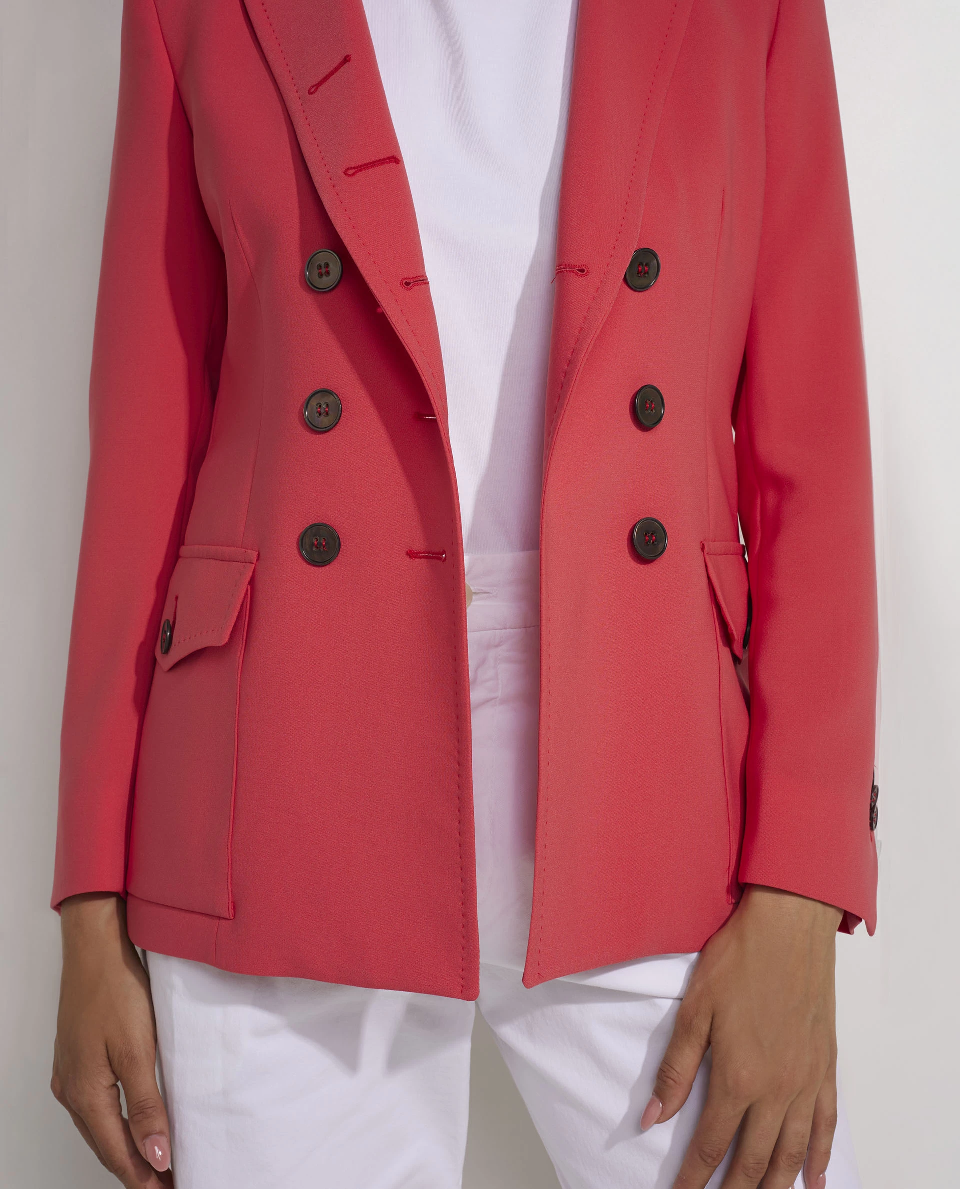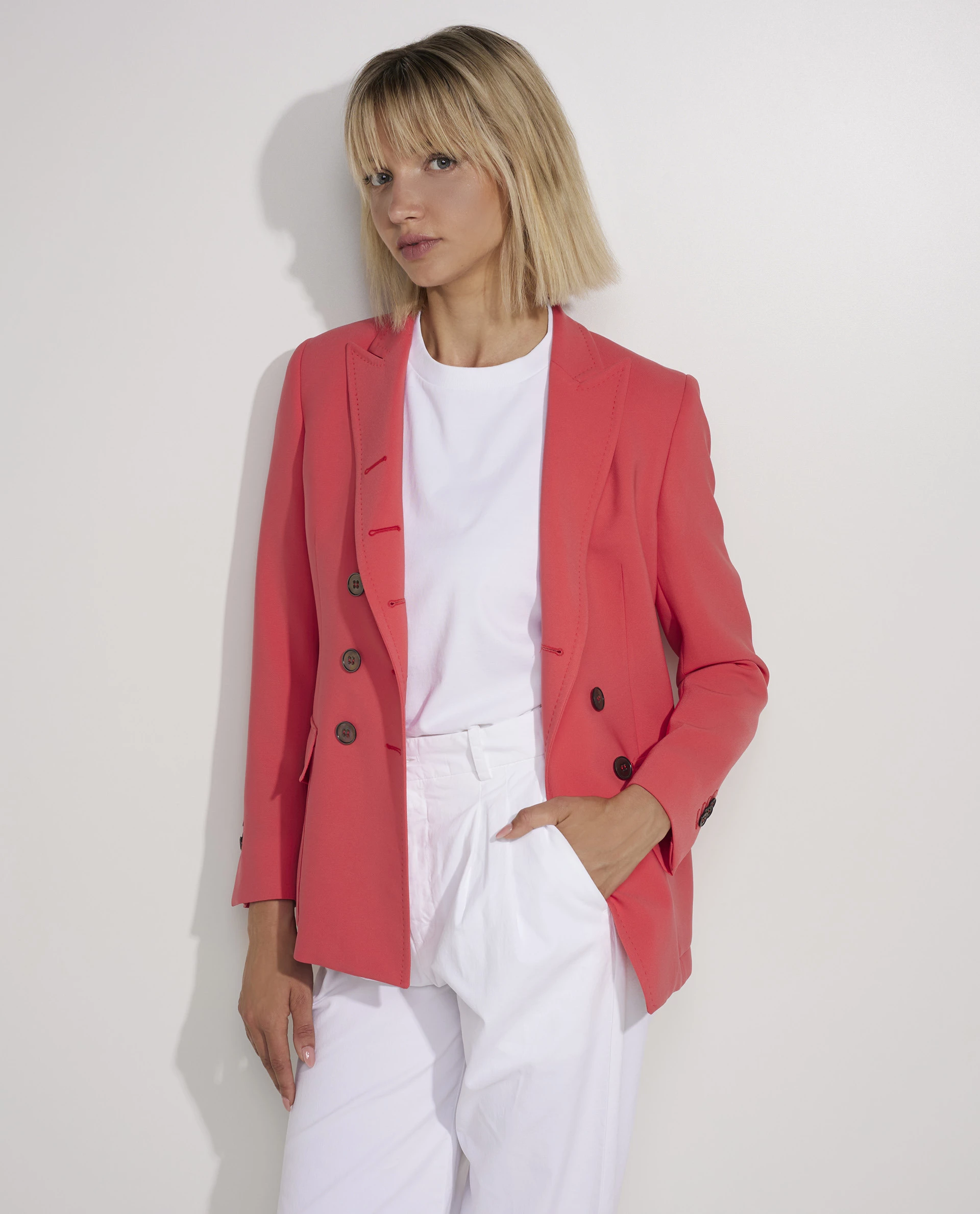 The double breasted blazer with classic lapels and horn buttons is one of Pauw`s signature items. This piece is designed in a fitted silhouette, is fully lined, characterized by two splits at the back and patch pockets at the front. This blazer gives every outfit a classic and refined look.