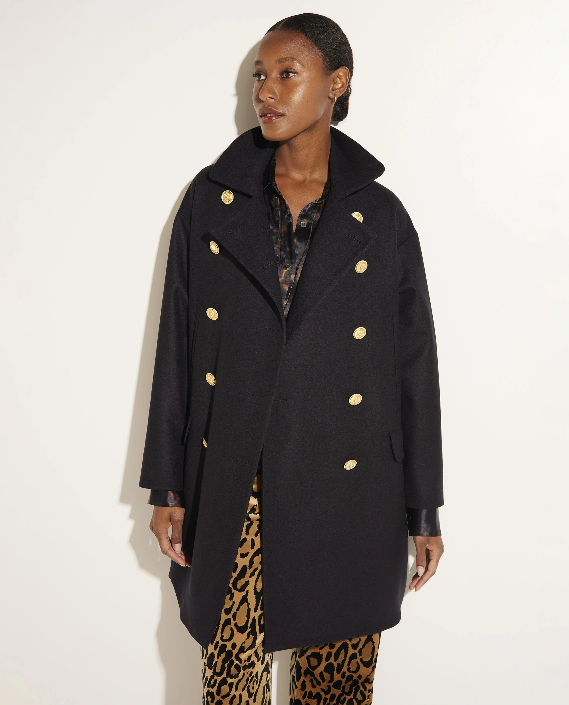 Double-breasted coat from the iconic Pauw Amsterdam collection, crafted in a stiff wool quality. The coat is designed for a casual, straight fit, features dropped shoulders and closes with a double row of buttons. This classic coat contains pockets on both sides and is very easy to combine: wear either open or closed over a wool turtle neck, leather pants and ankle boots. Or combine with a sweater, wide leg trousers and sneakers for a more comfortable look. The ultimate coat to create a timeless, urban-chic outfit.