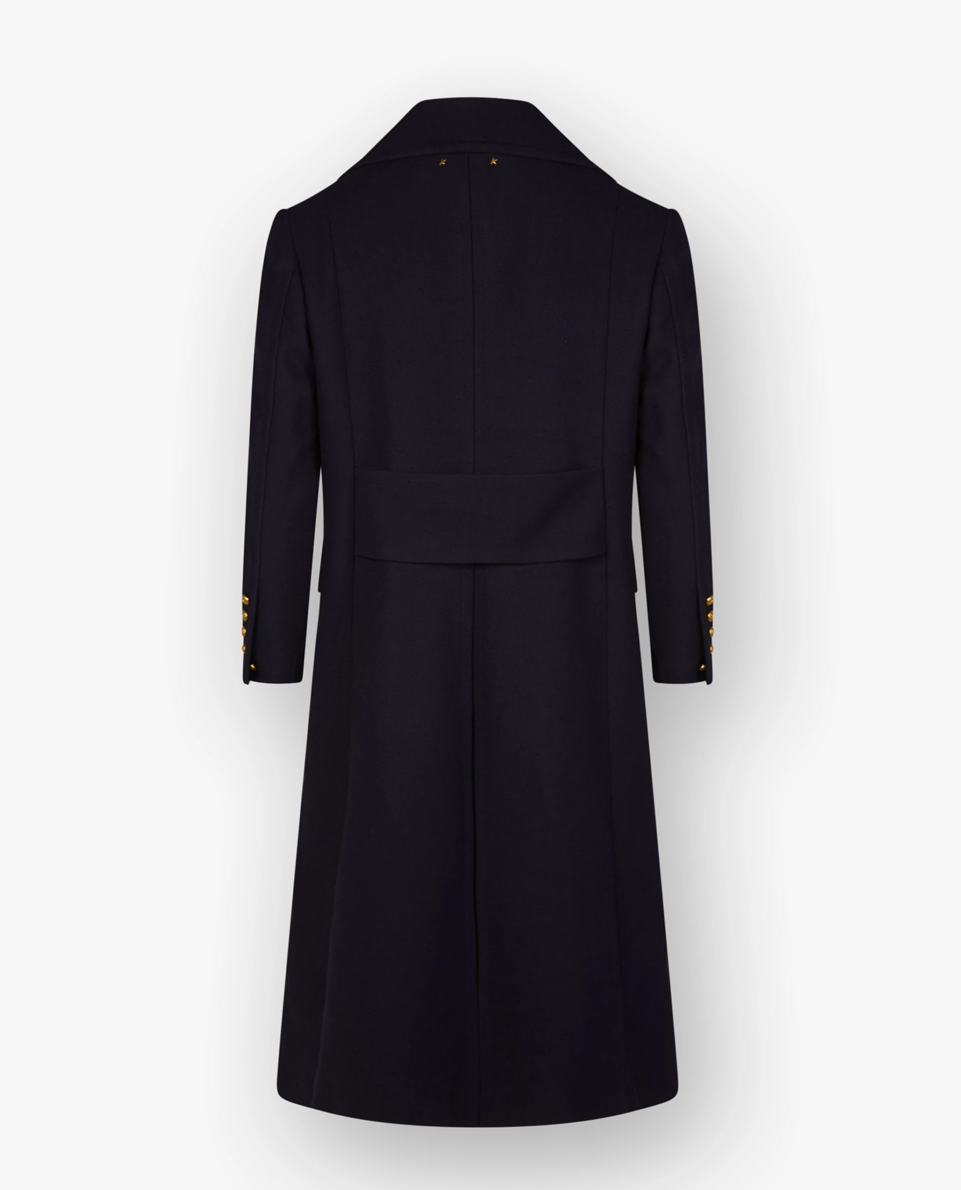This double breasted coat by Golden Goose is crafted in wool and features gold coloured buttons. Has a white patch with a red embroidered G – which can be easily detached. A perfect addition to your casual outfit.