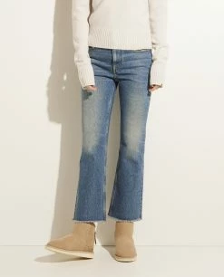 Flared cropped jeans by the Italian brand Golden Goose in a medium stone washed denim.