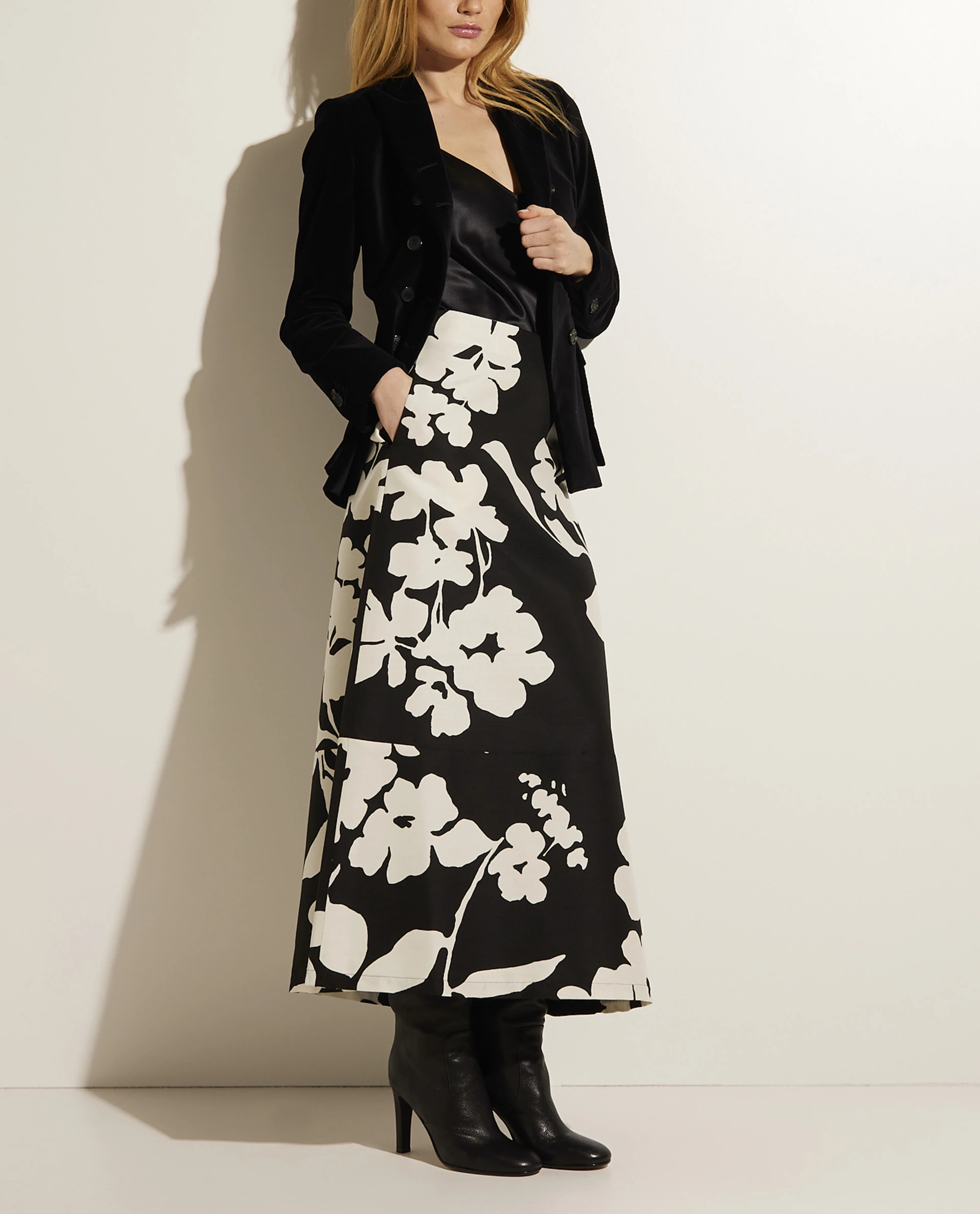 Voluminous long skirt by La DoubleJ, made from a wool quality. This A-line design features a slim fit waistband and closes with buttons.