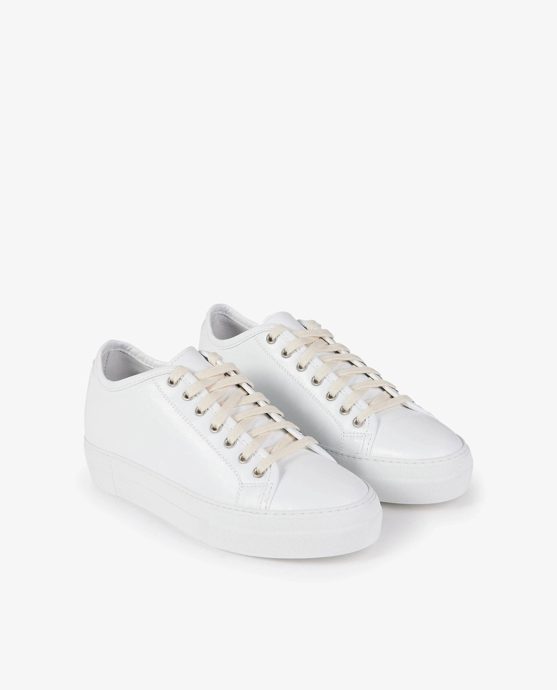 Sofie D’Hoore is known for her pure, simple designs. This platform sneakers in a smooth leather quality is a true example of her signature style. This low-top design is enriched with ecru-coloured laces.