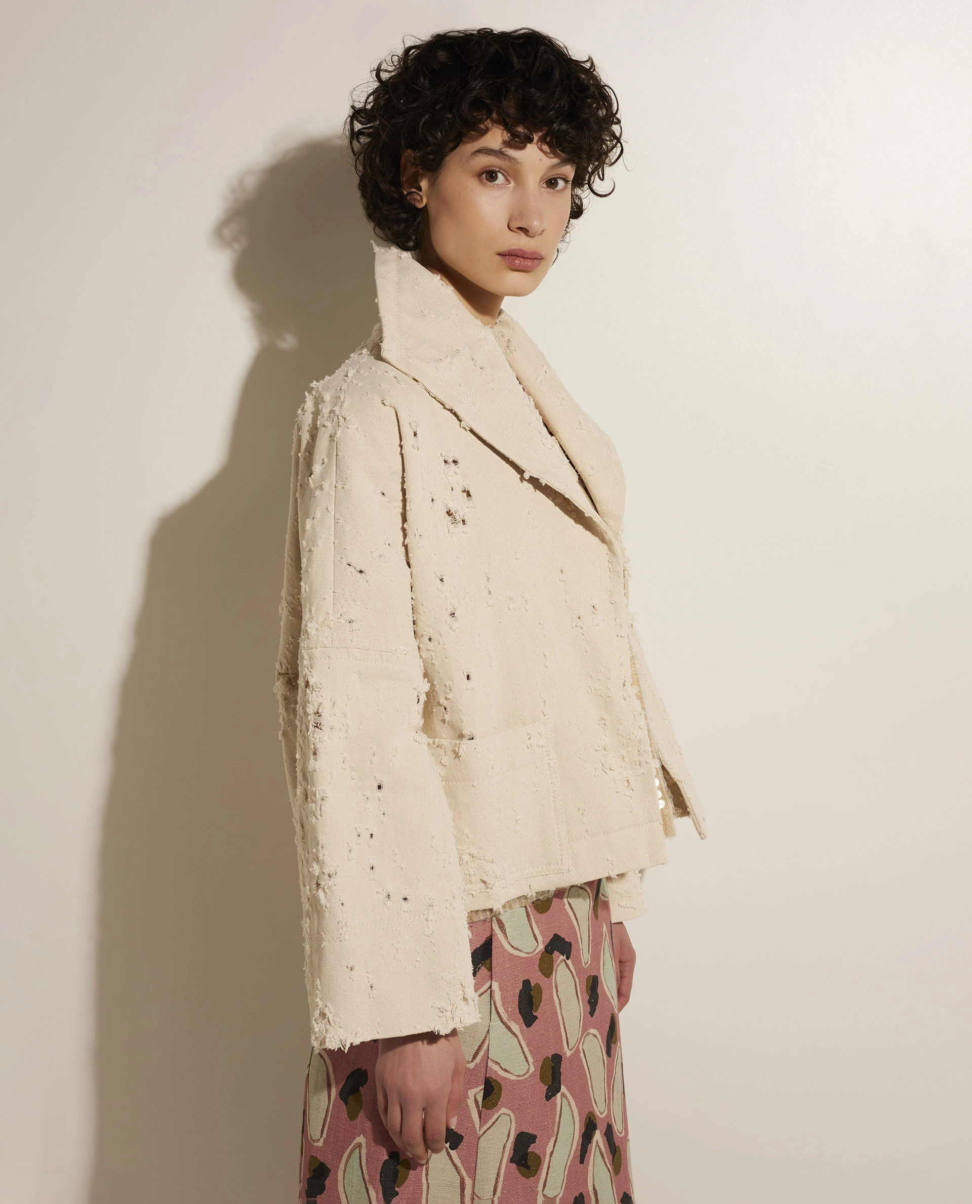 Oversized jacket from Odeeh, in a supple cotton quality. A very suitable design to wear in between seasons, which can also be combined as blazer in the winter months. Not lined.