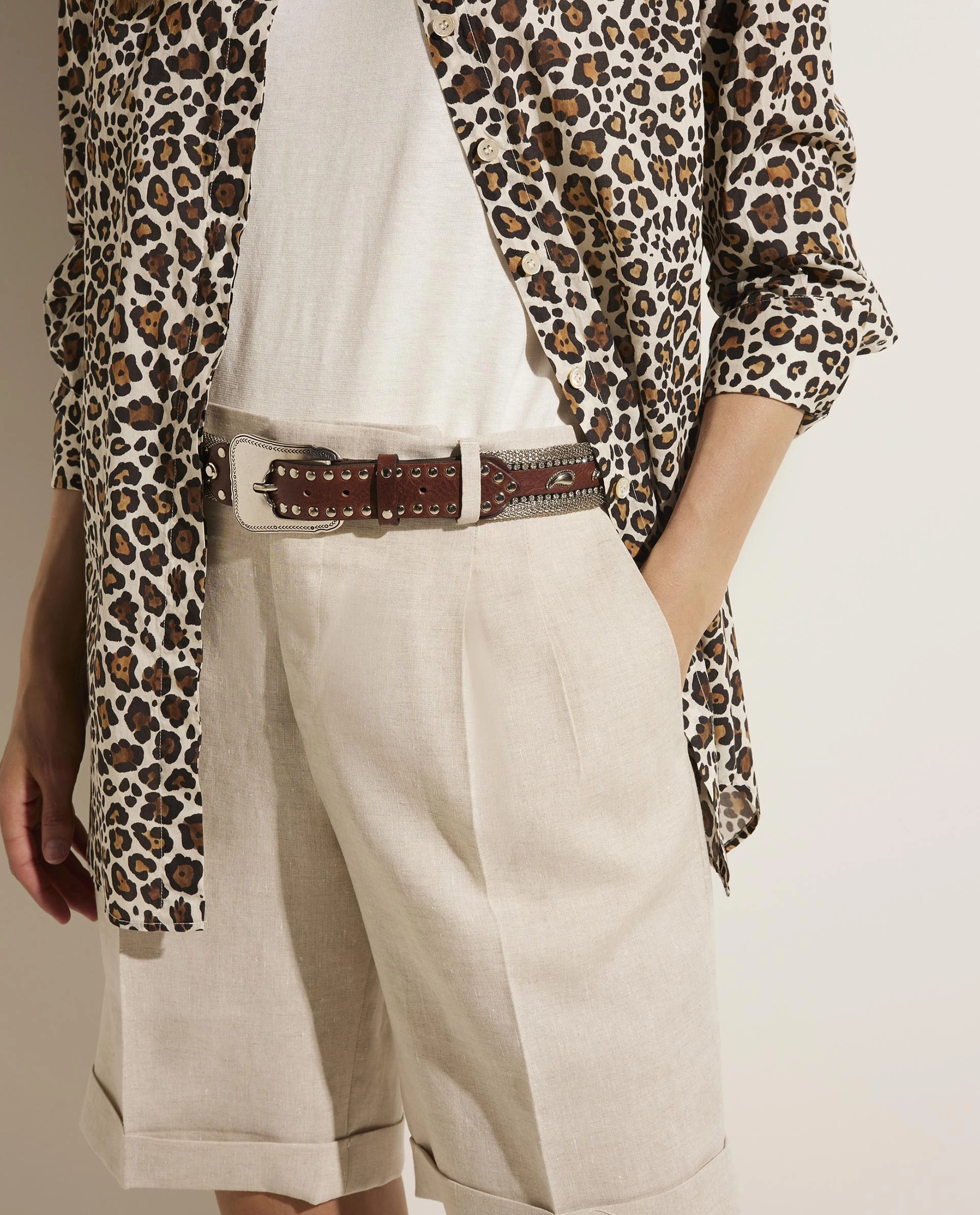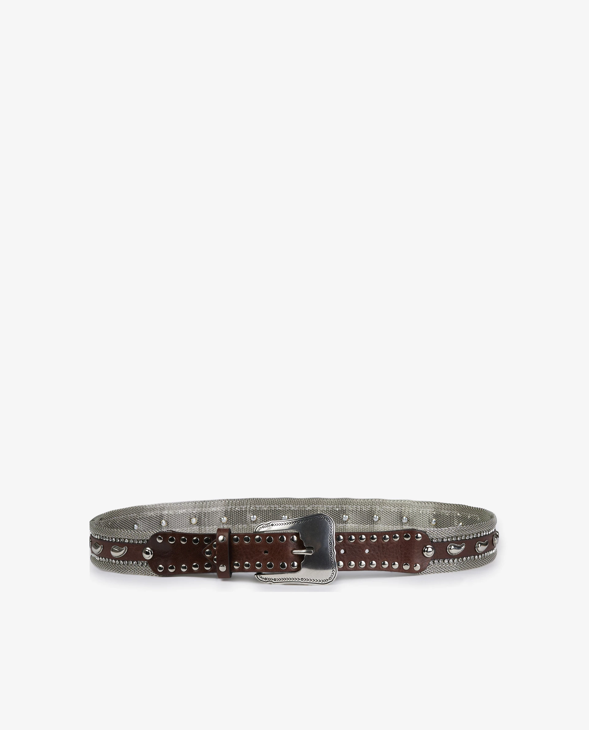 Nanni represents Italian craftsmanship. This belt with studs is crafted in butter soft leather and features details with an western character. Wear it over a dress or blazer for a playful effect.