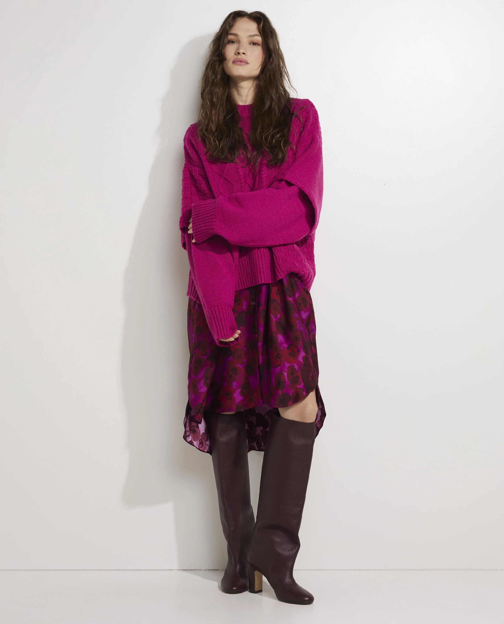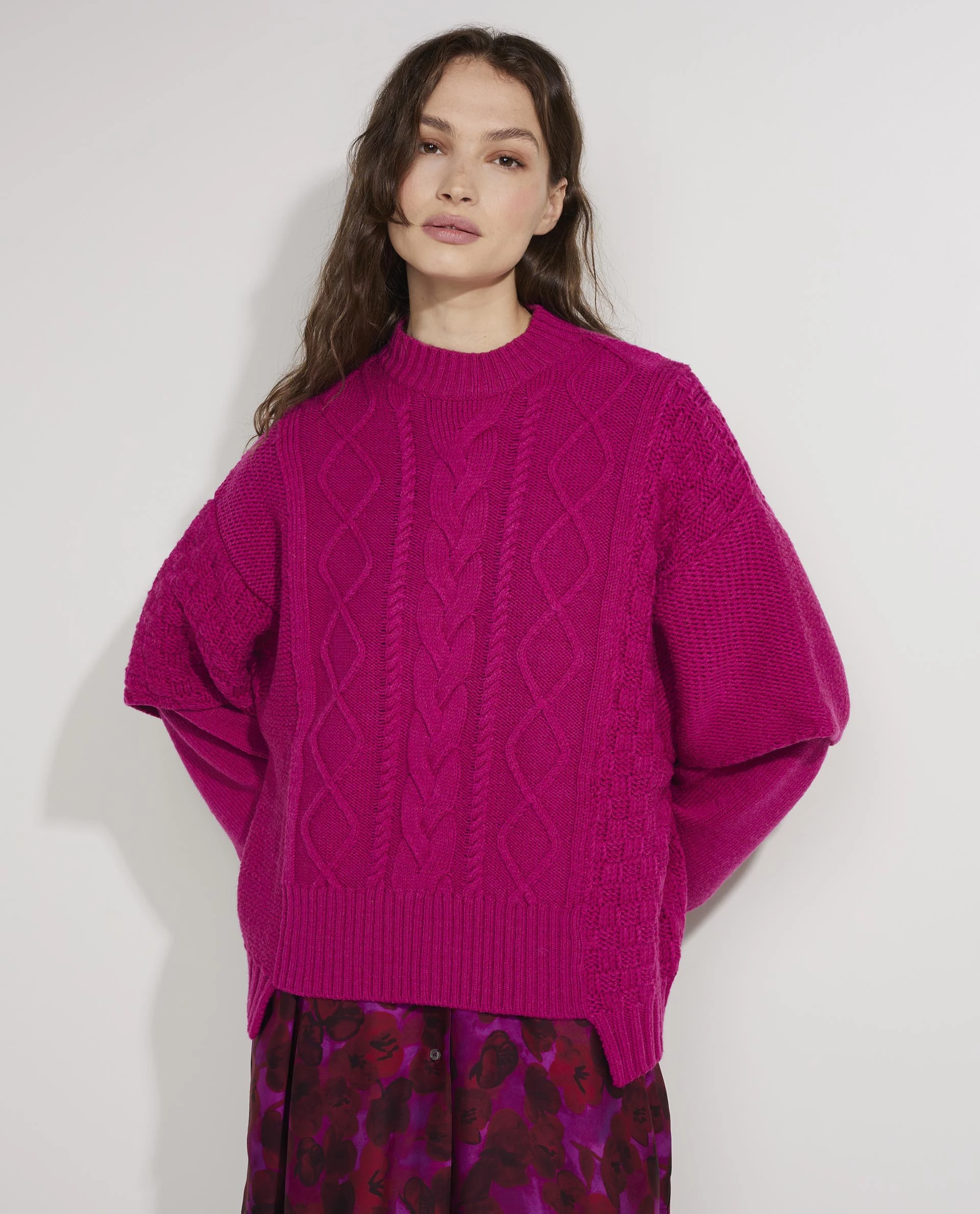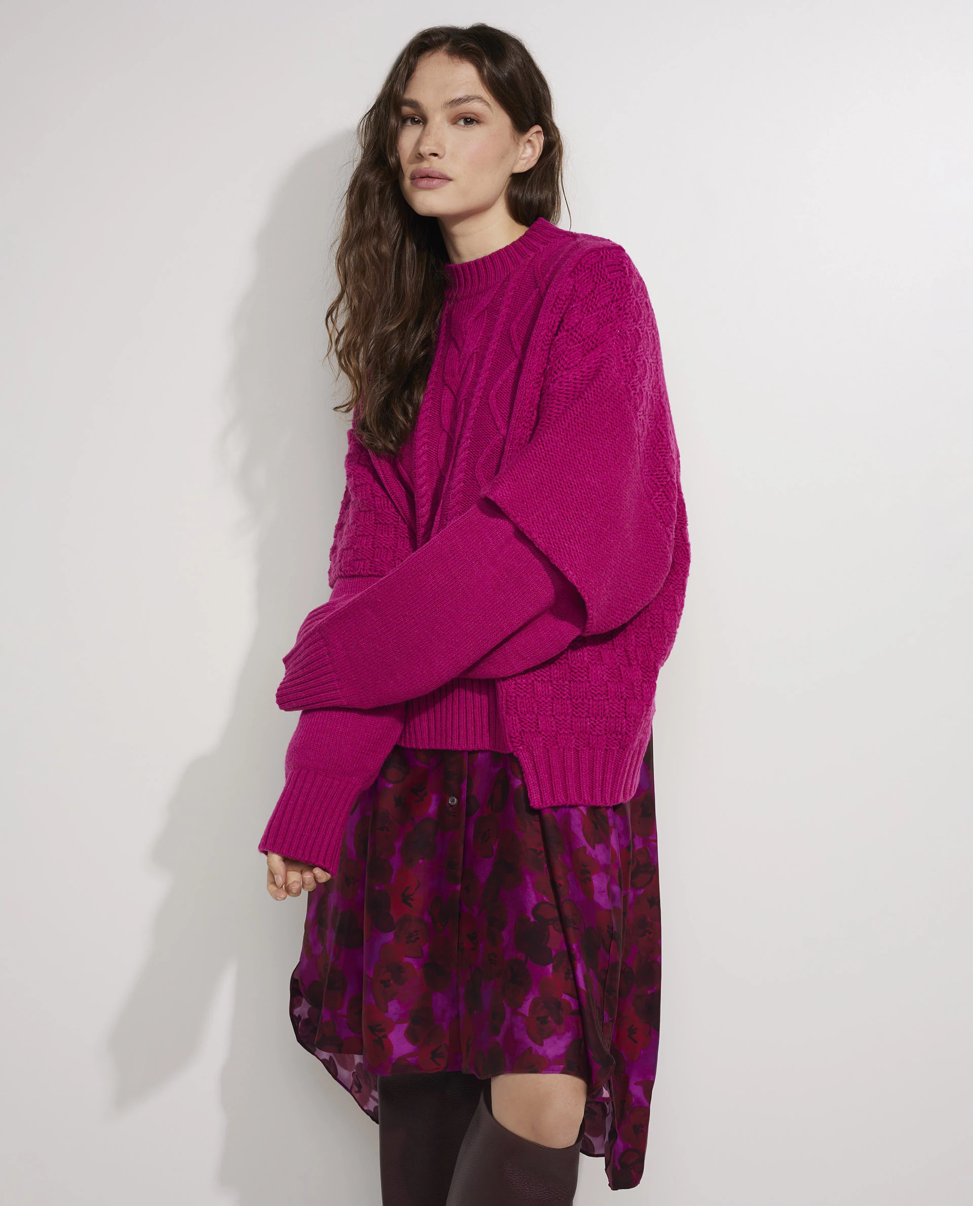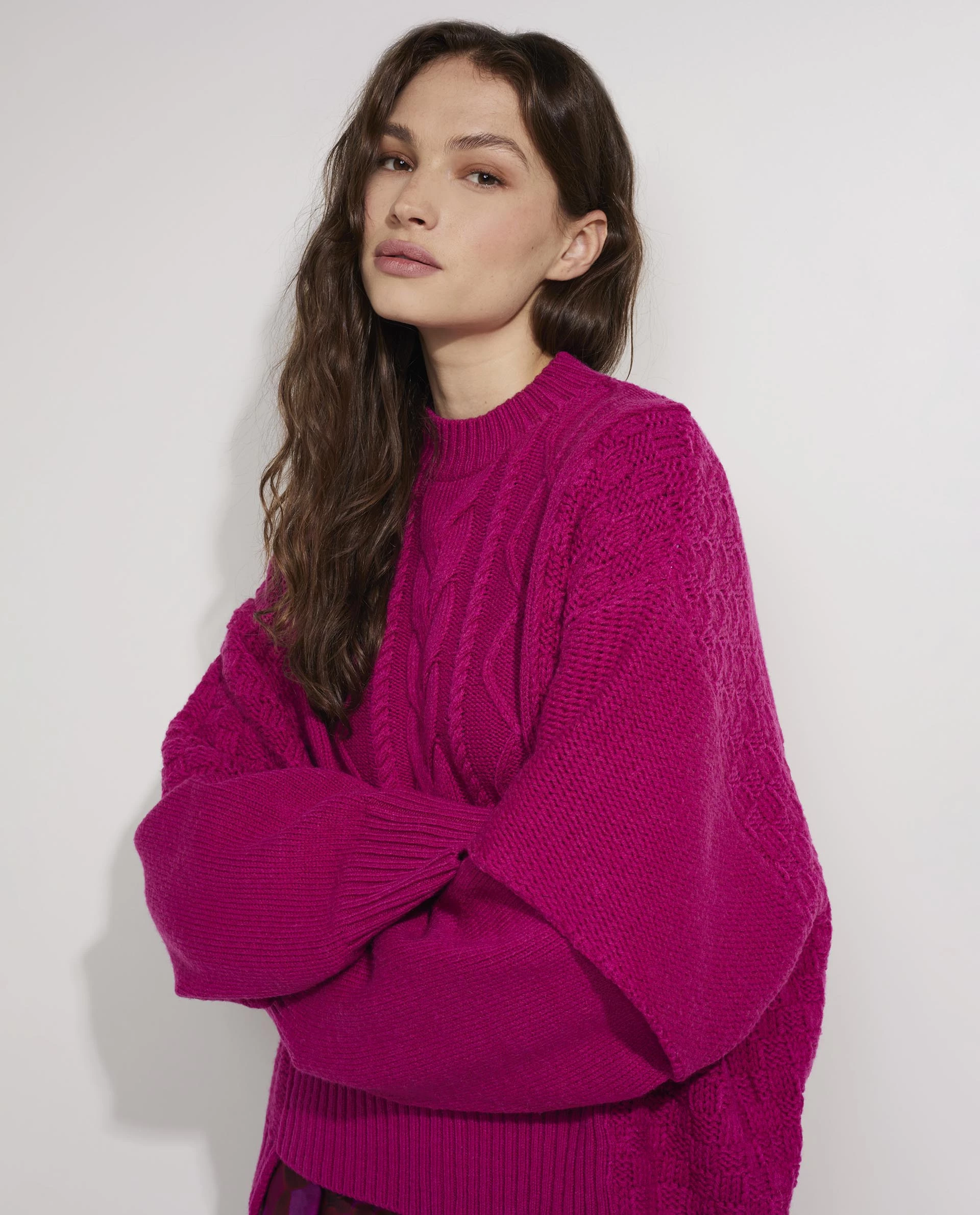Oversized sweater from Khrisjoy. The sweater is made of a fine wool blend, has different layers for a playful effect and features the Khrisjoy signature on the back.