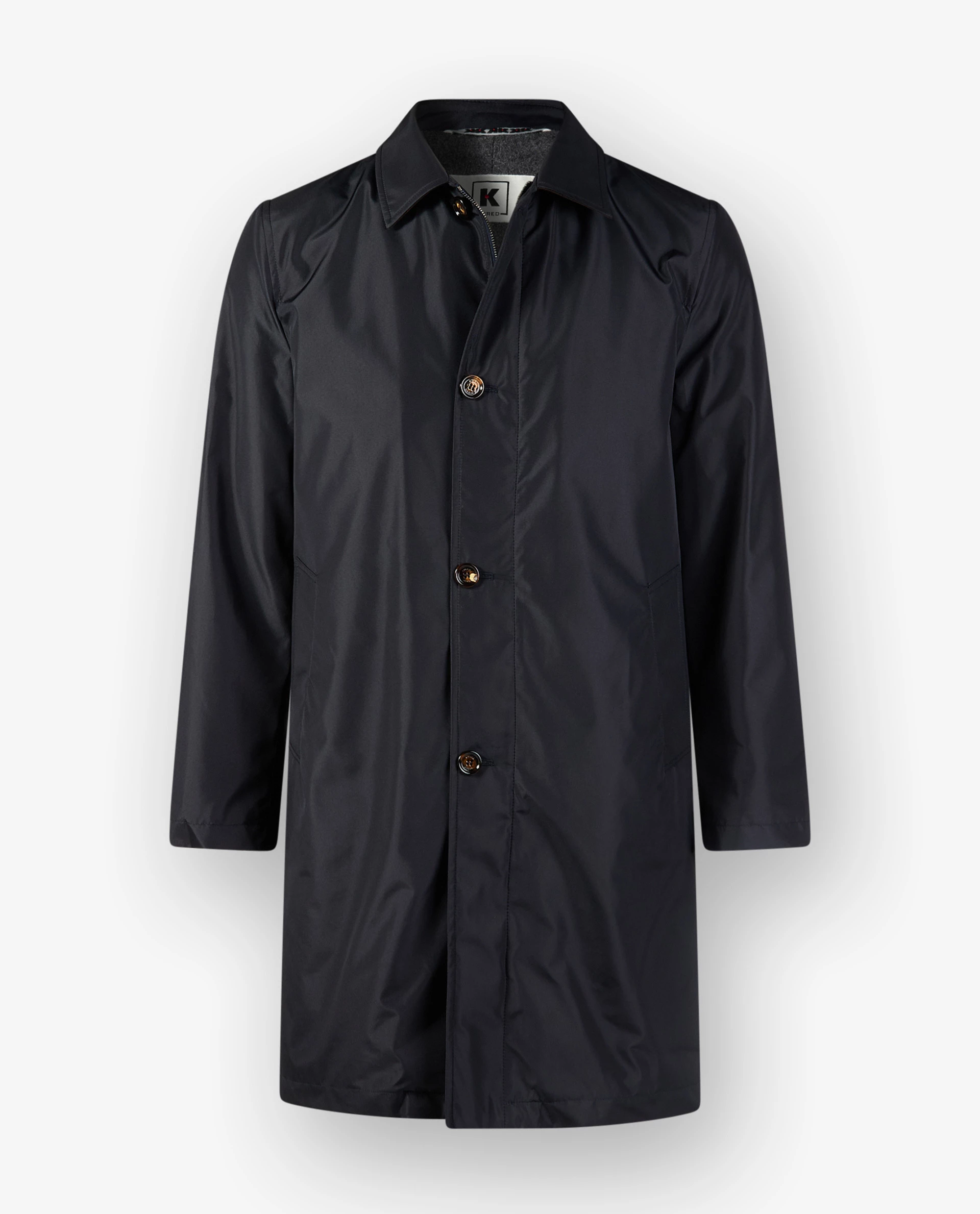 This raincoat by Kired has a padded lining made of pure cashmere. Which makes it extremely suitable to wear when it is rainy and cold. The hidden zipper makes it practical, while the button closure gives a dressed-up touch.