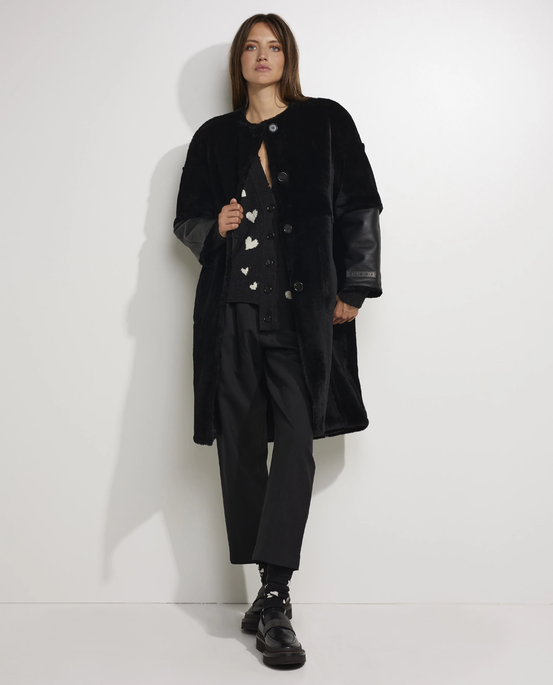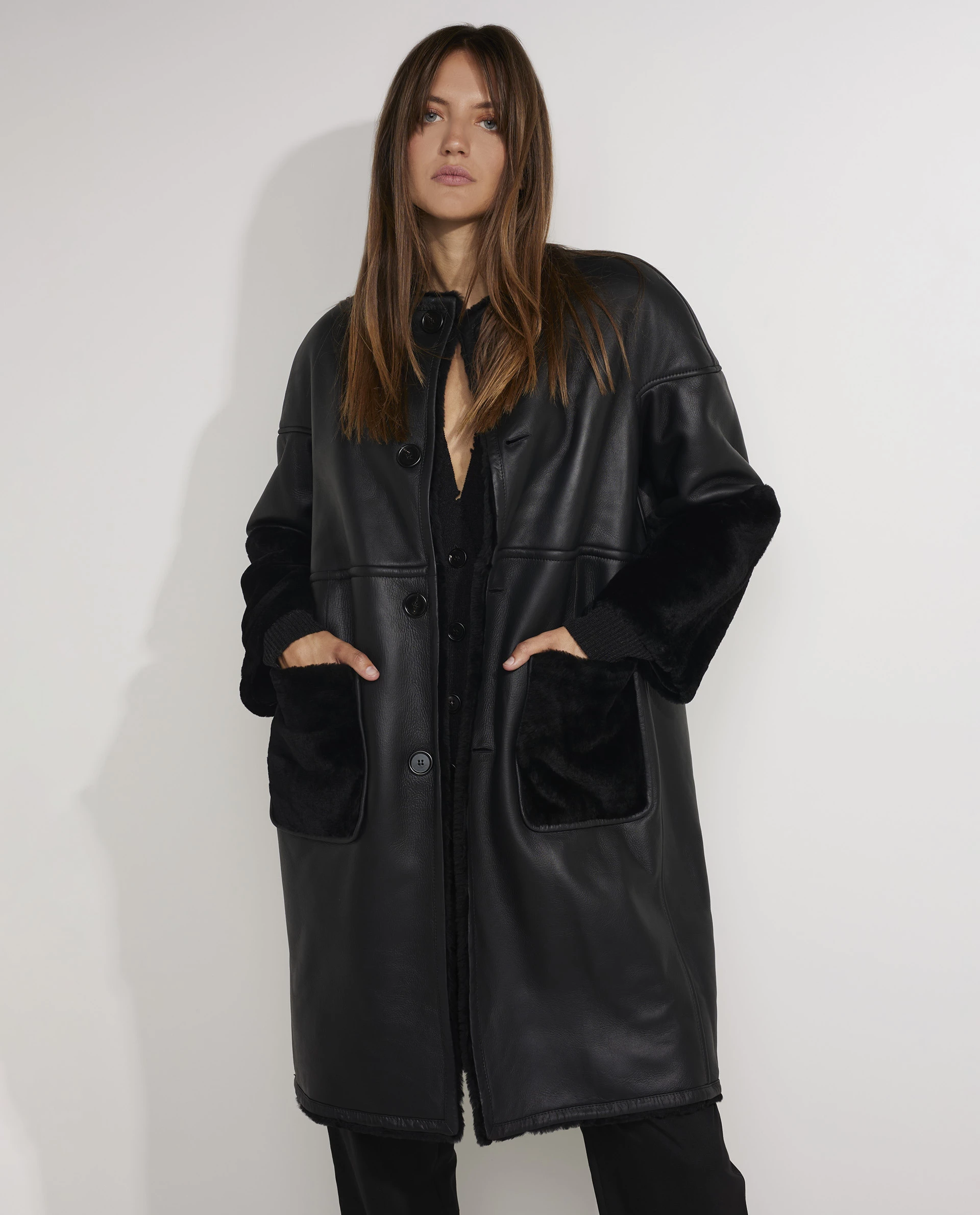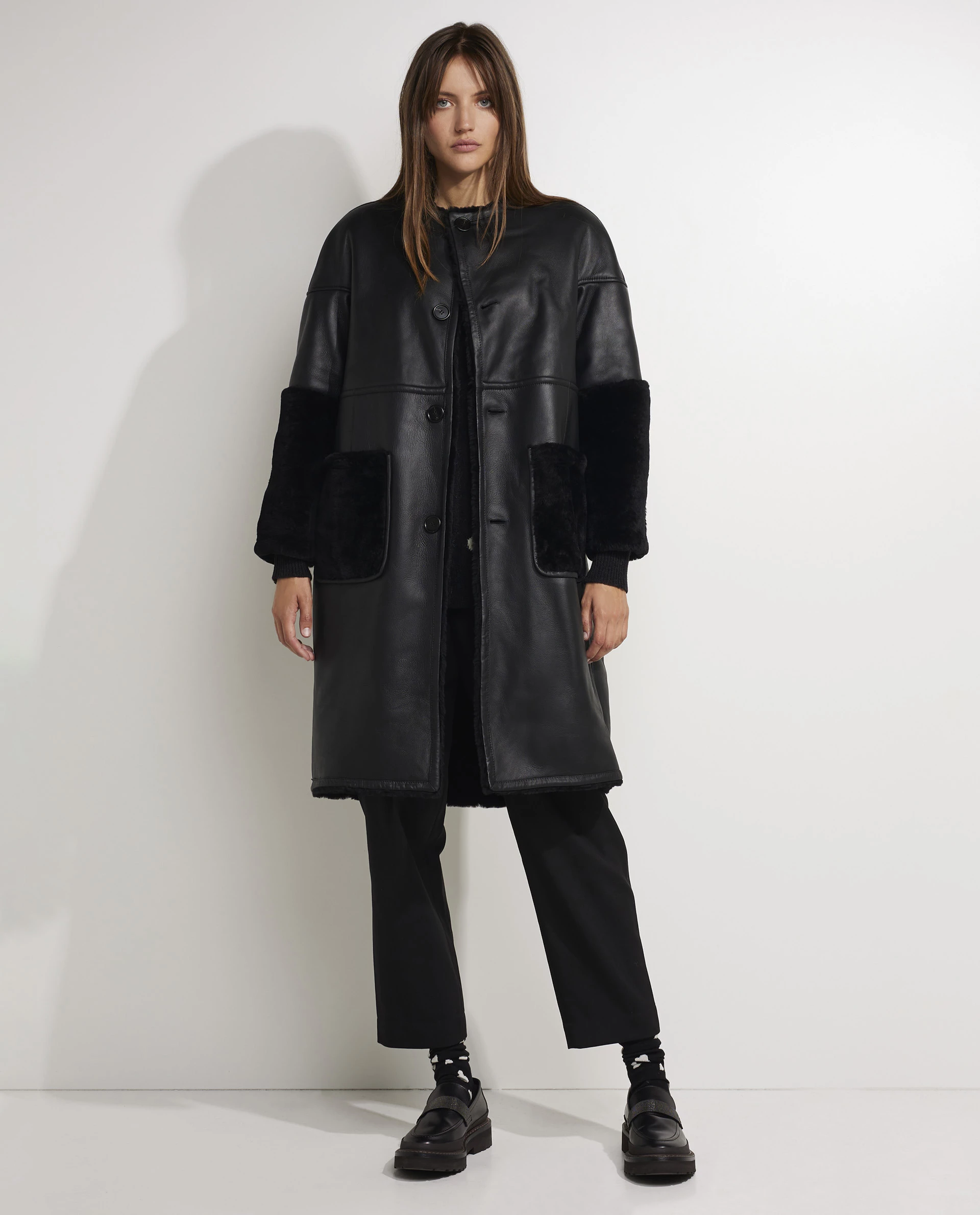 Reversible coat in lambskin nappa and shearling from the Italian label Marni. Regular fit with crew neck and single-breasted button closure. Finished with patch pockets on both sides. Made in Italy.