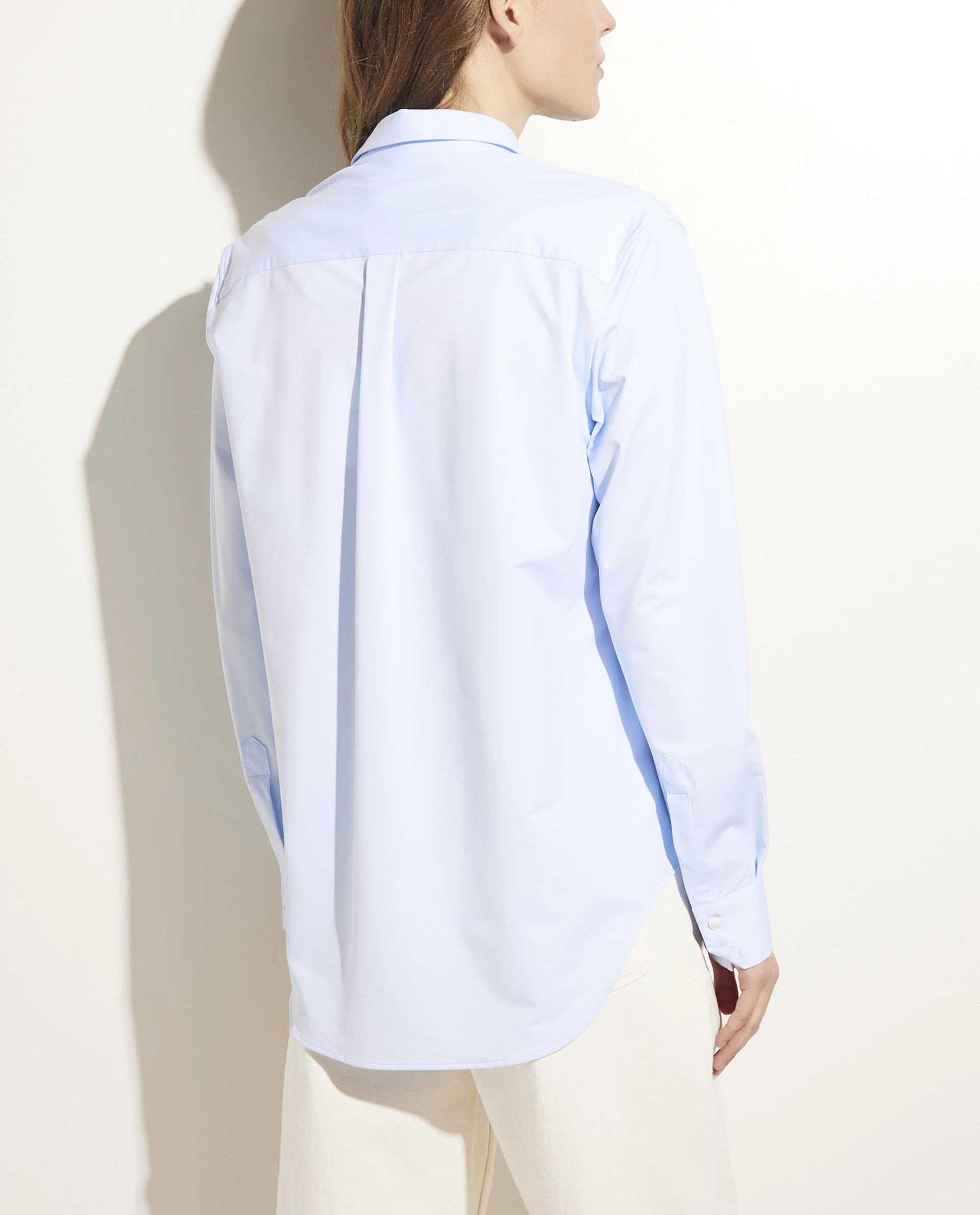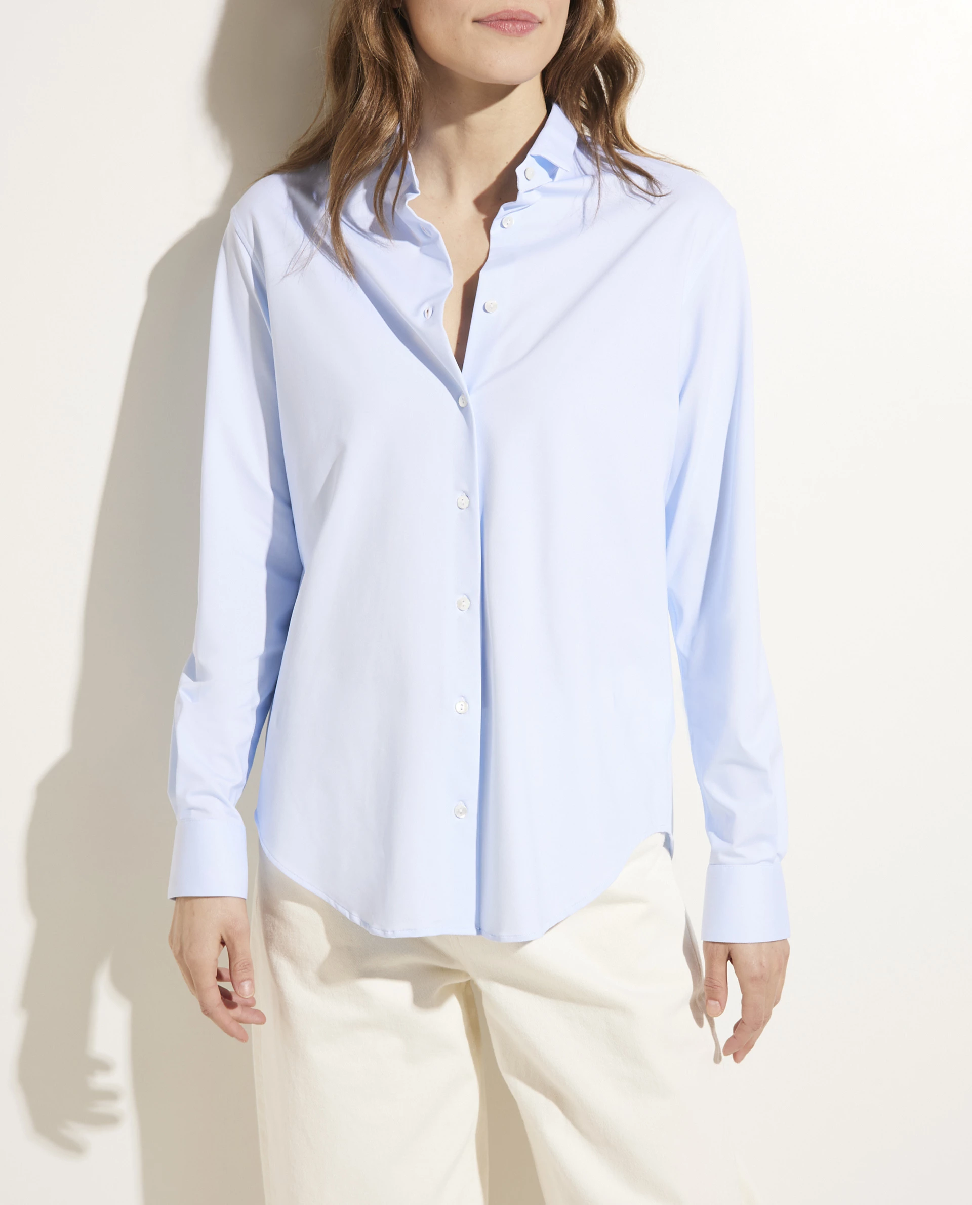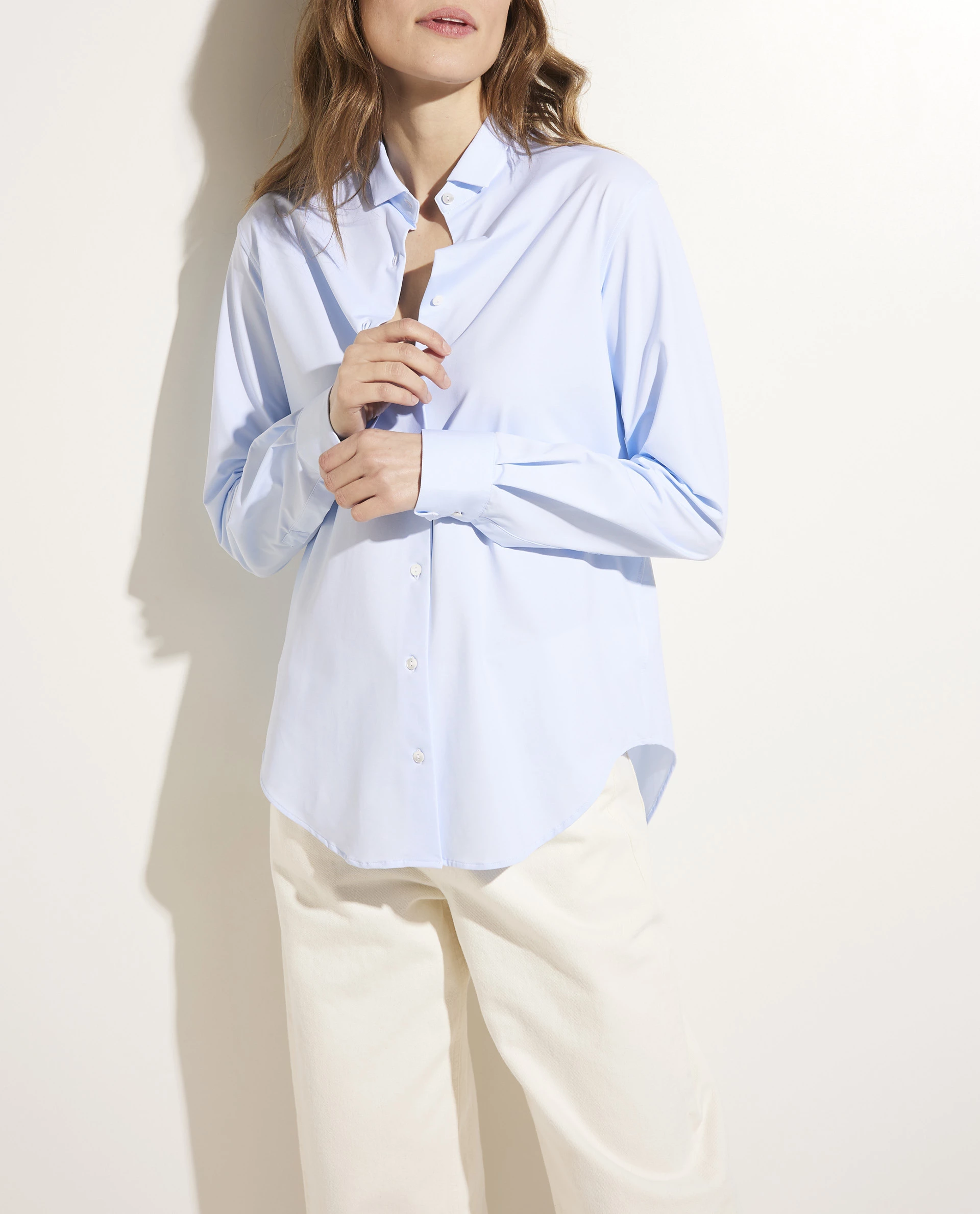 A true must-have in your wardrobe: the classic shirt. This model from the Italian brand Xacus is designed in a light, smooth quality with stretch, which results in a very comfortable fit. The silhouette is quite slim, which gives it a relaxed, casual look. Combine with leather pants, a double face cashmere coat and western boots to complete your outfit.