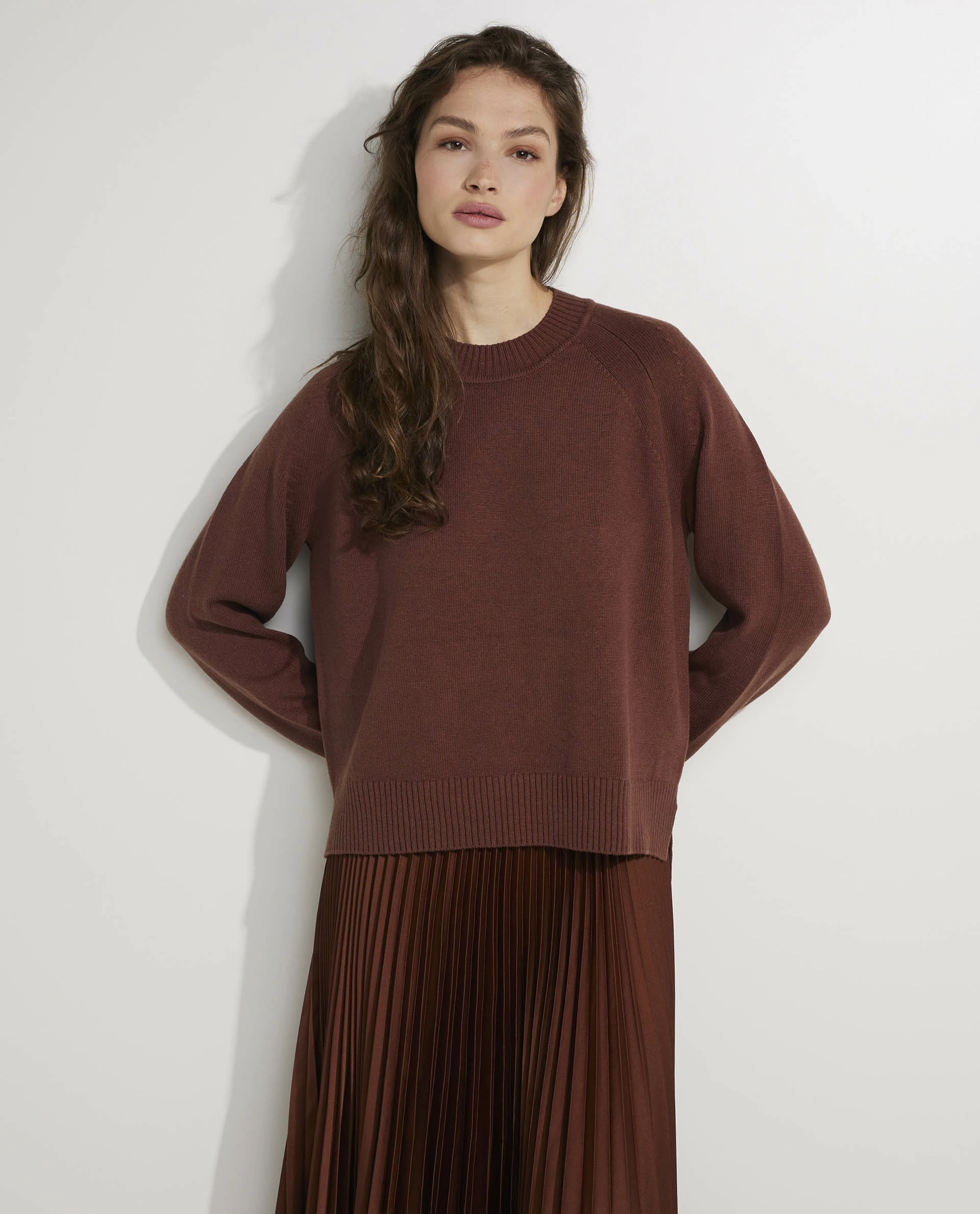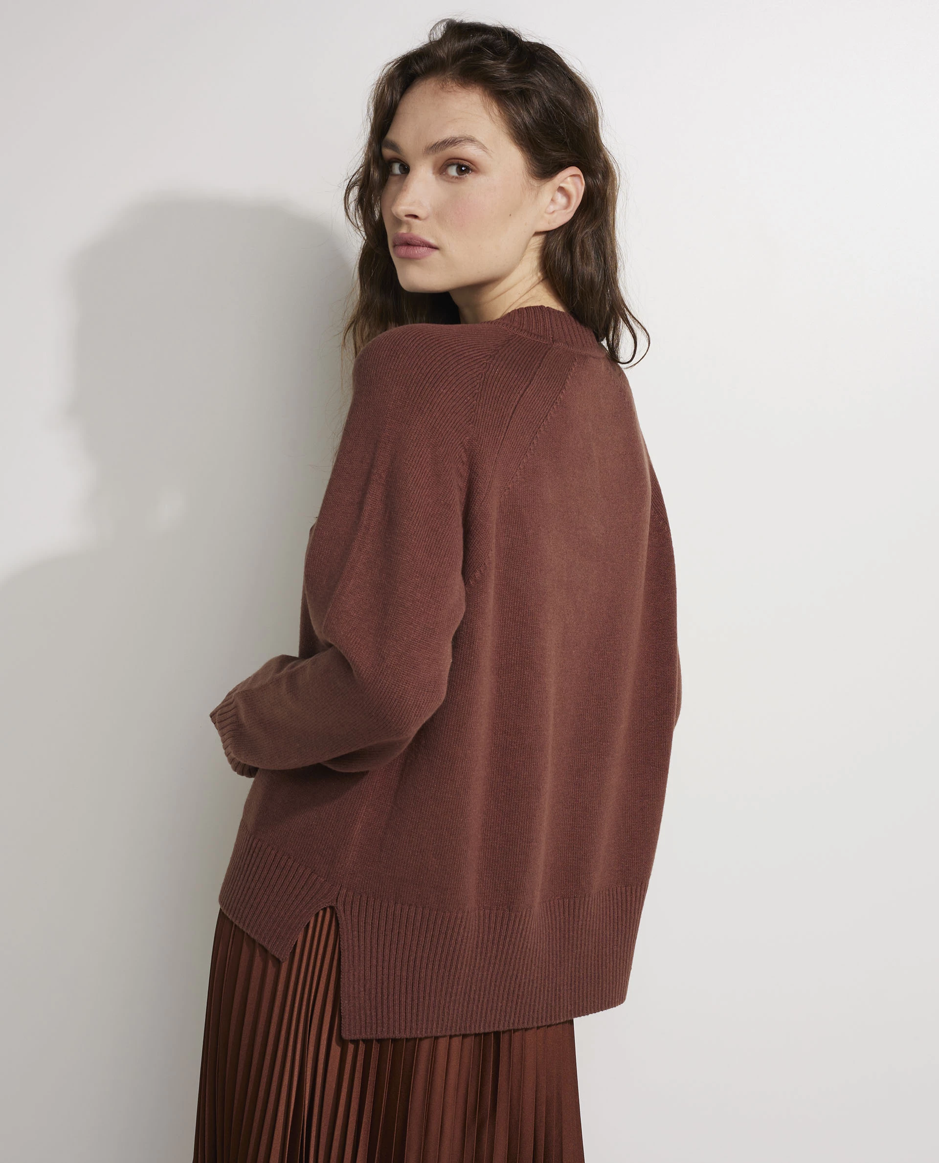 Heavy knitted sweater by Joseph. This casual piece features long sleeves and splits on both sides.