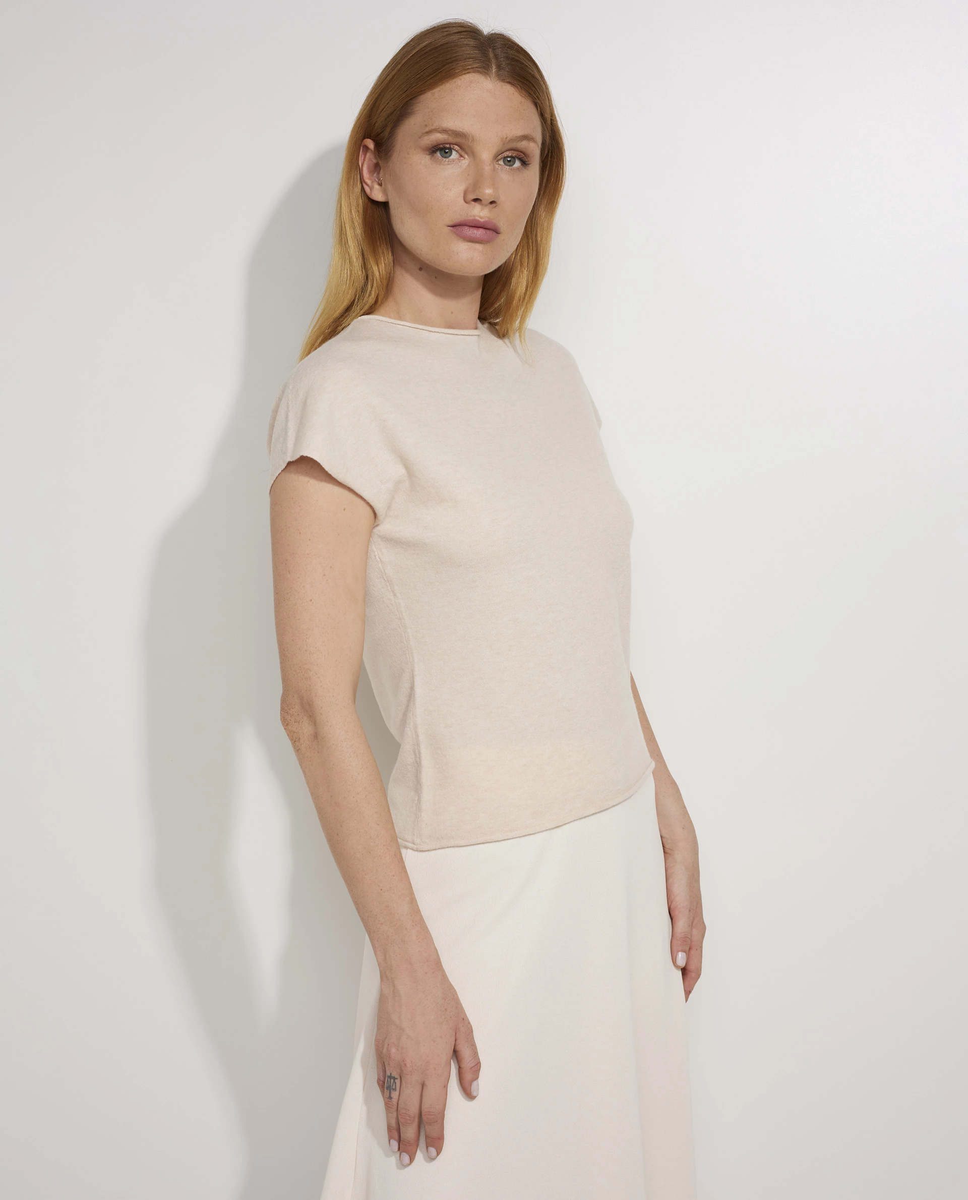 Soft top from Vince, in a casual silhouette made in a soft wool quality. The top has short sleeves and a round neckline.