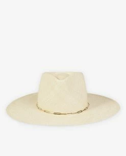 This straw hat from the brand Van Palma is handmade in the south of France, which makes each piece unique. This hat is made in a sturdy straw quality and enriched with a gold plated chain around the headband.