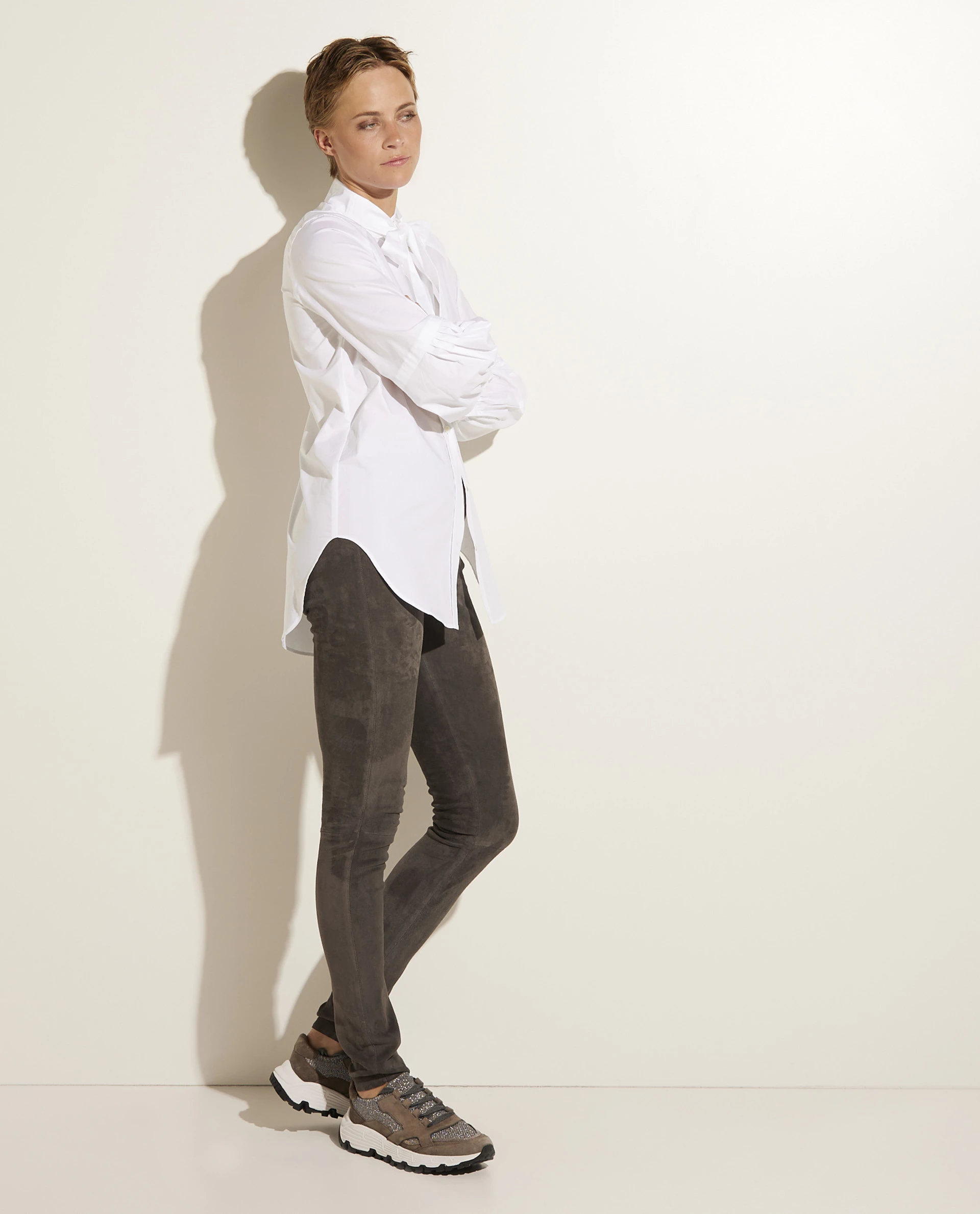 The Pauw Amsterdam collection contains iconic, timeless designs, such as this suede legging, designed for a slim fit and crafted from soft suede with a subtle stretch. This piece features an elastic band in the waist which creates a comfortable fit and has hems around the knees to give you enough freedom of movement. Combine with an oversized knit and sneakers for a casual appearance.