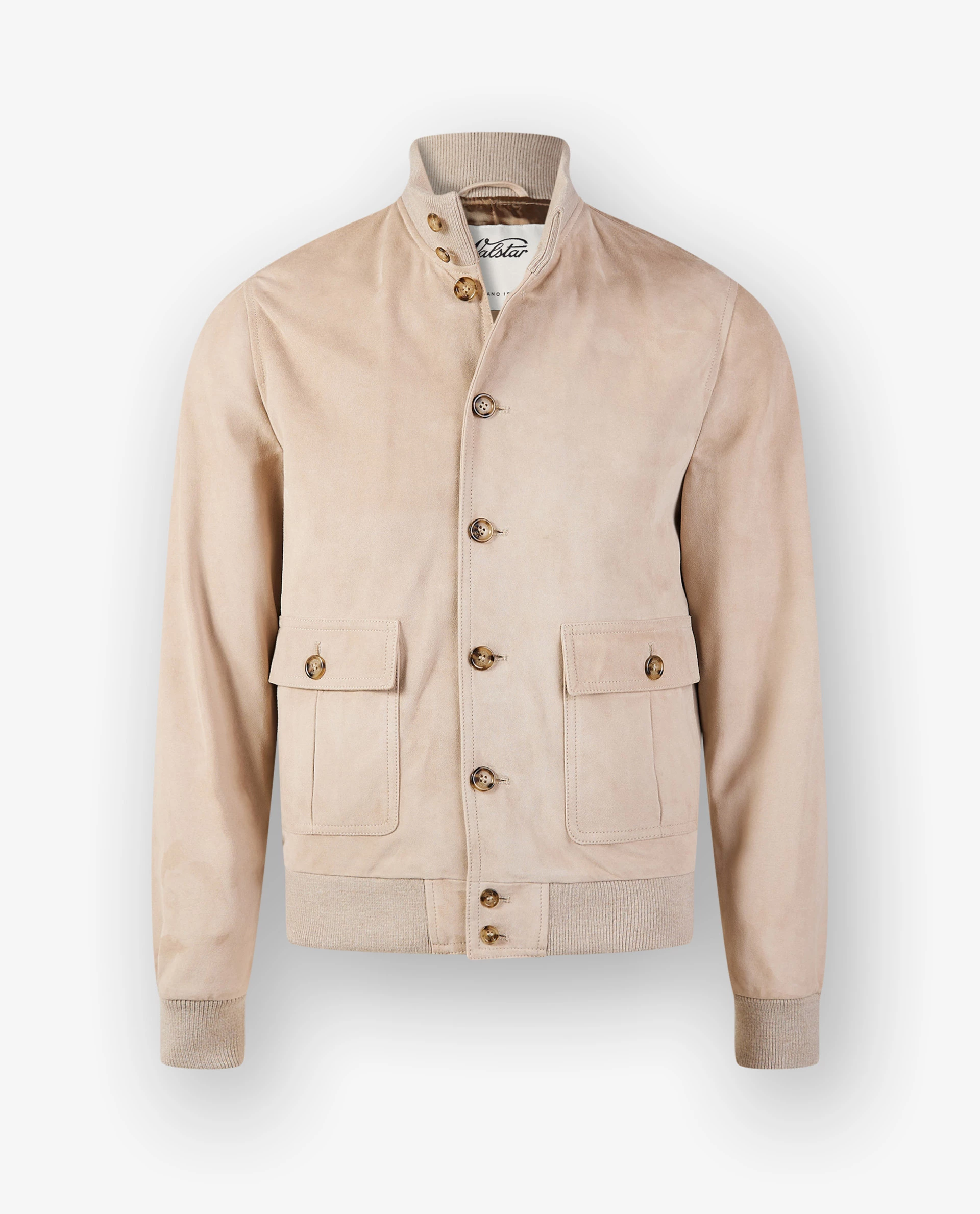 This suede jacket by Valstar is iconic. The design has flap pockets, a ribbed collar, ribbed cuffs and ribbed hems. Wear this with a rollneck, chinos and sneakers for a casual yet elegant look.