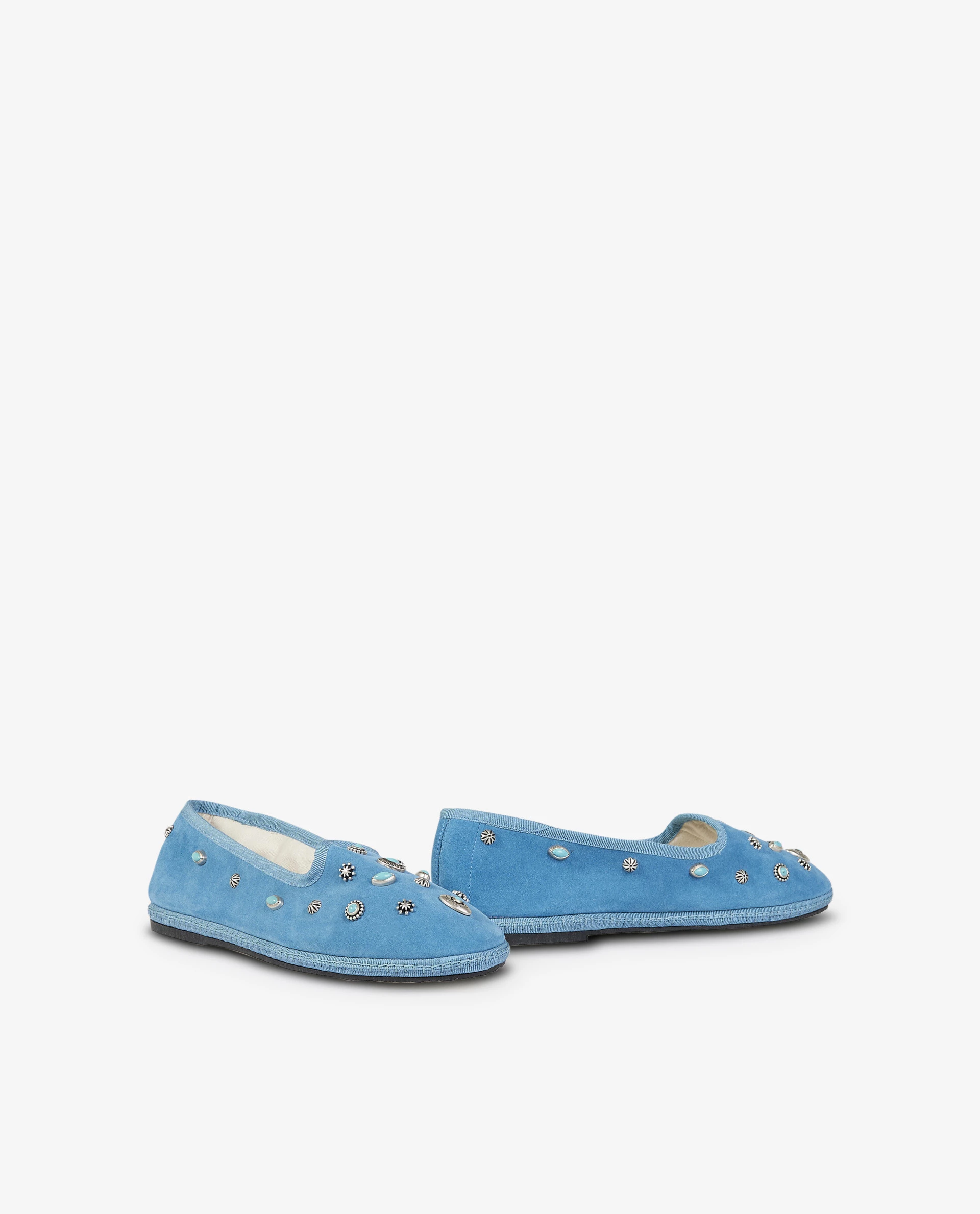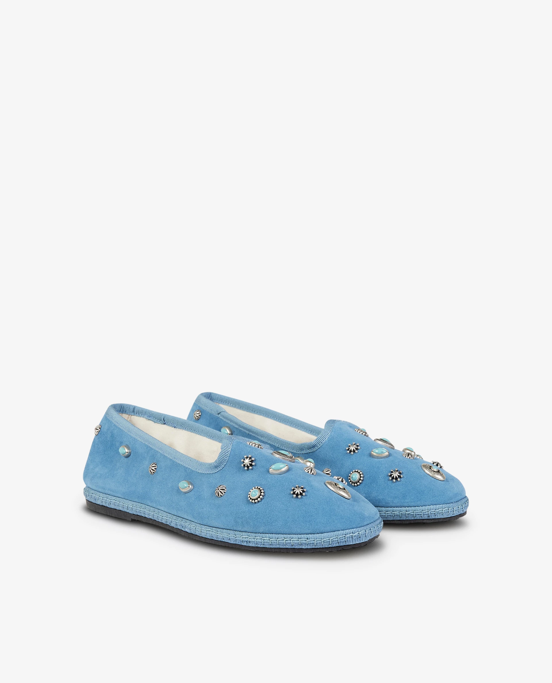 Velvet loafers decorated with jewelry in an elegant model designed by the Italian brand Fortela
