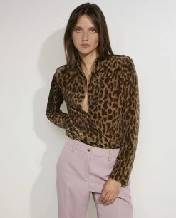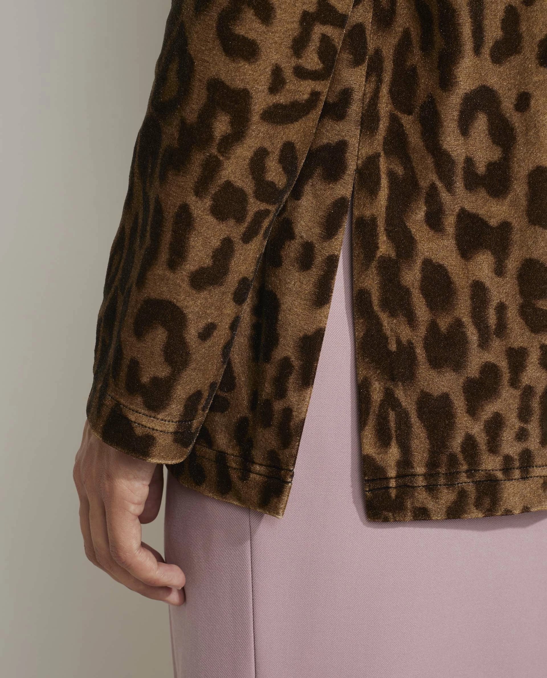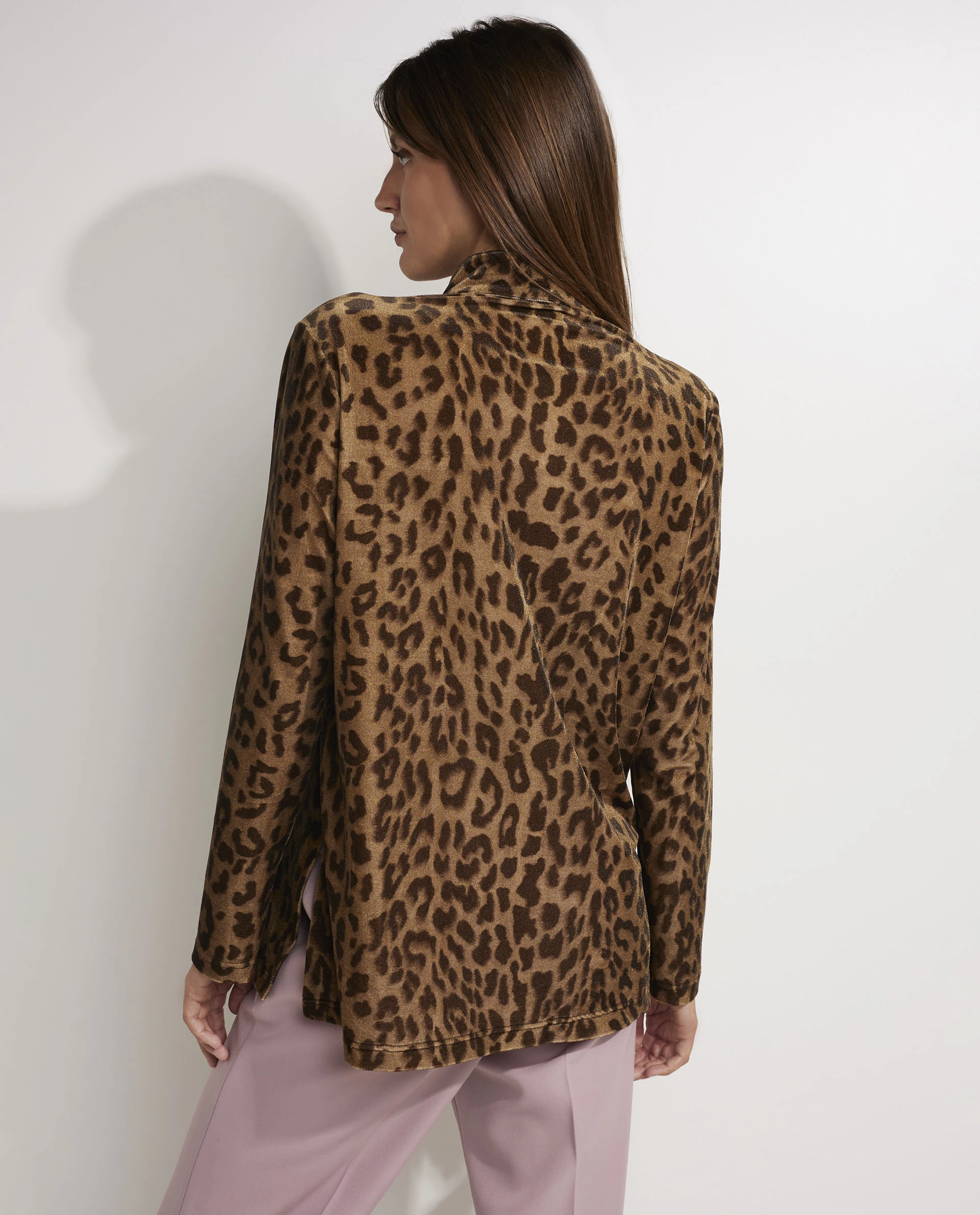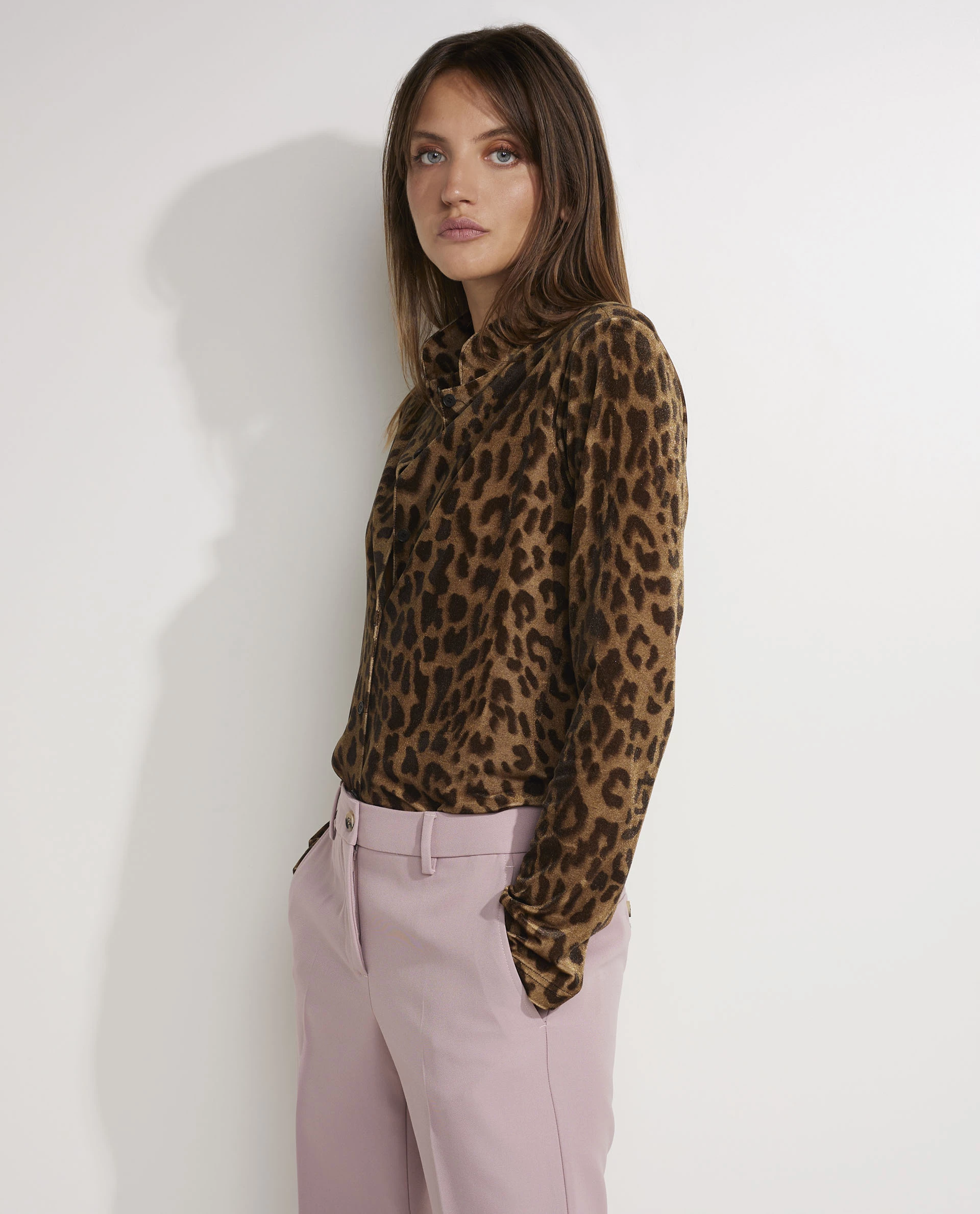 Velvet blouse by Irie in a regular fit. This item is made in a velvet-stretch quality and features a playful panther print. The blouse has long sleeves, a classic collar and a black button closure.