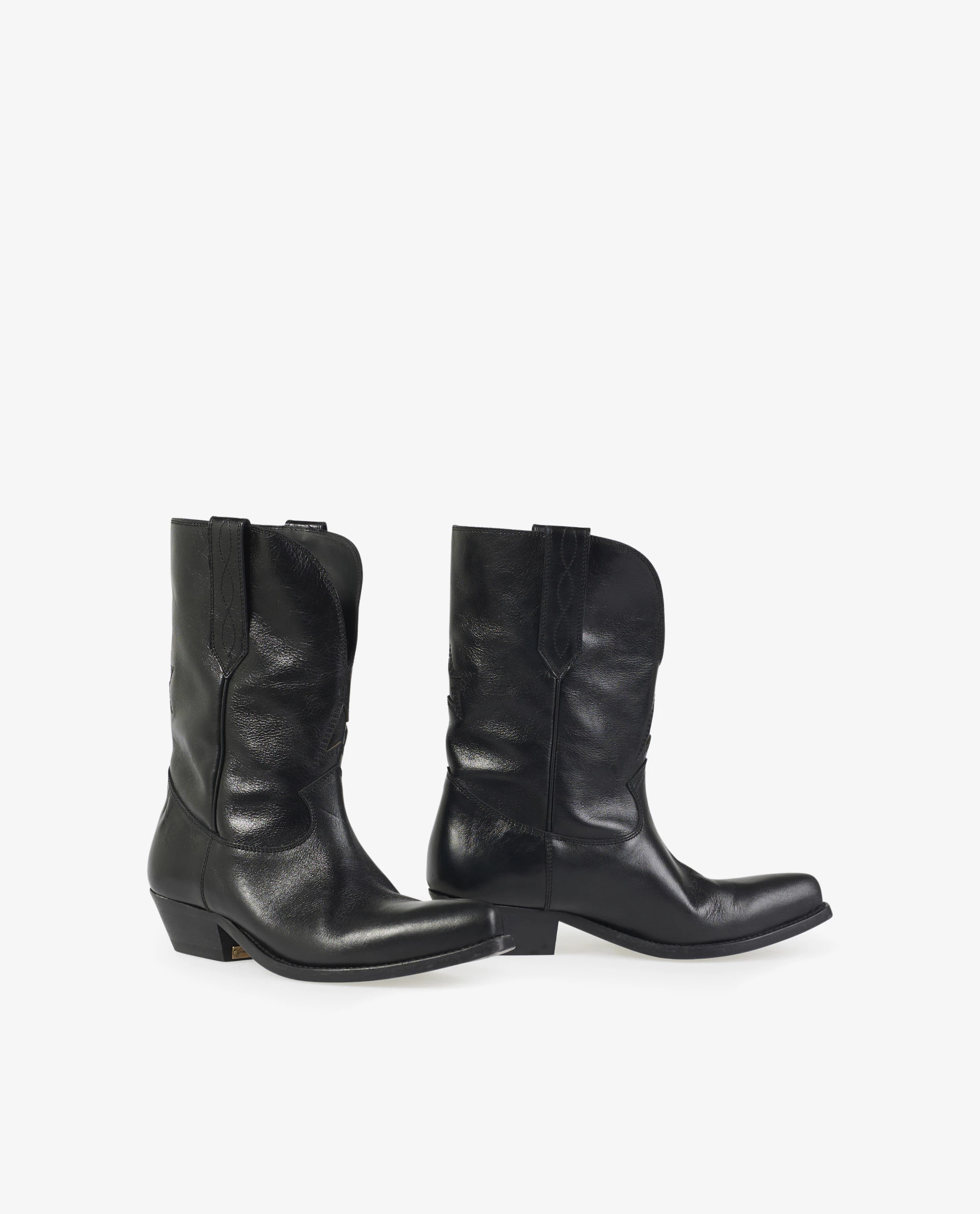 Boots from the Golden Goose collection, model ‘Wish Star Low’, designed in a smooth leather. These boots are handmade, an iconic design, inspired by the timeless cowboy style.