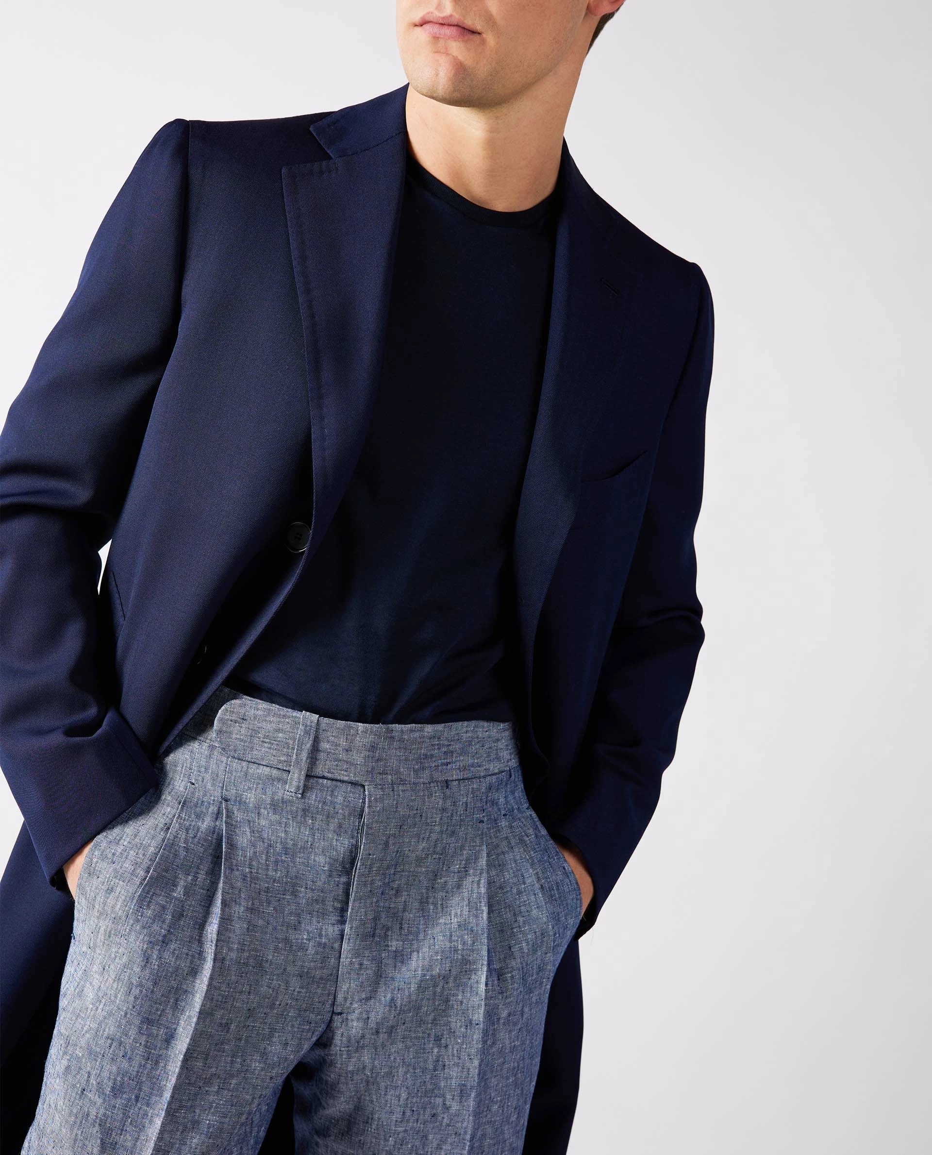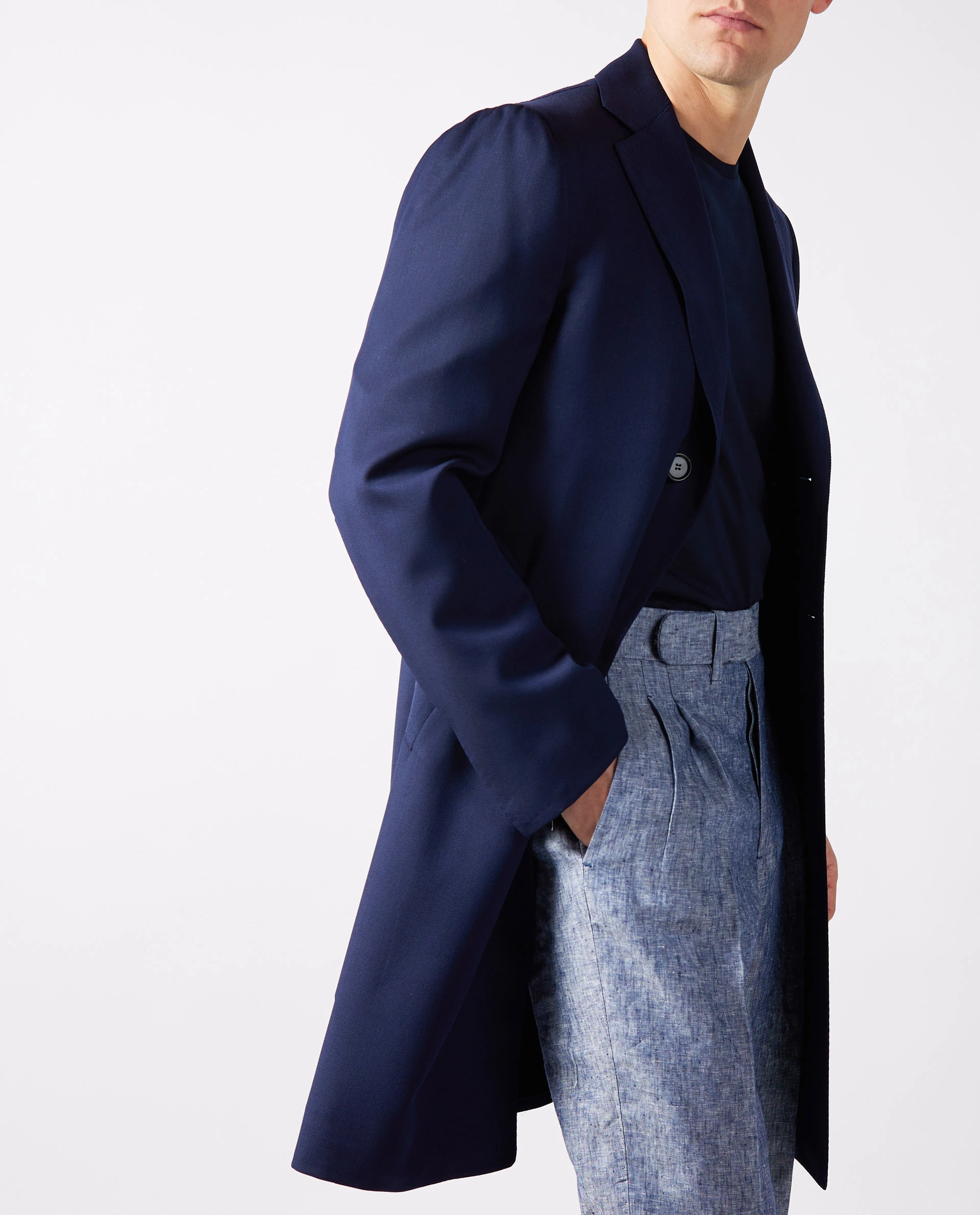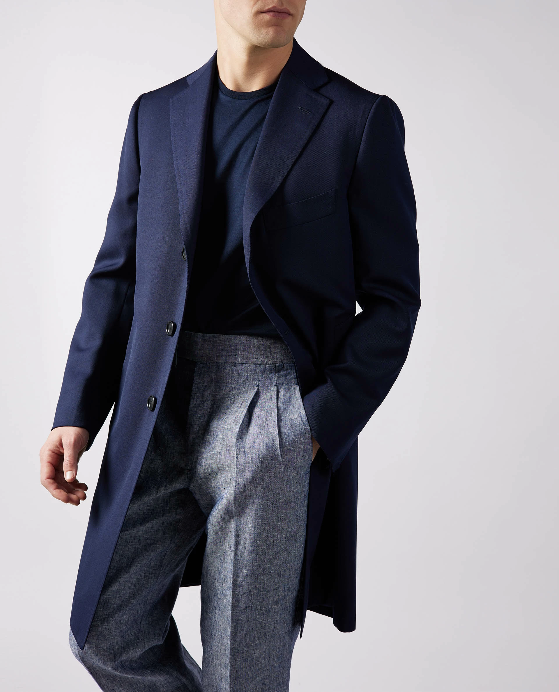 This single breasted coat by Cesare Attolini is crafted in wool. This spring/summer coat has a 3 button closure, slit pockets, a breast pocket and is finished with a AMF stitch. The perfect add-on to your suit whenever it gets chilly.