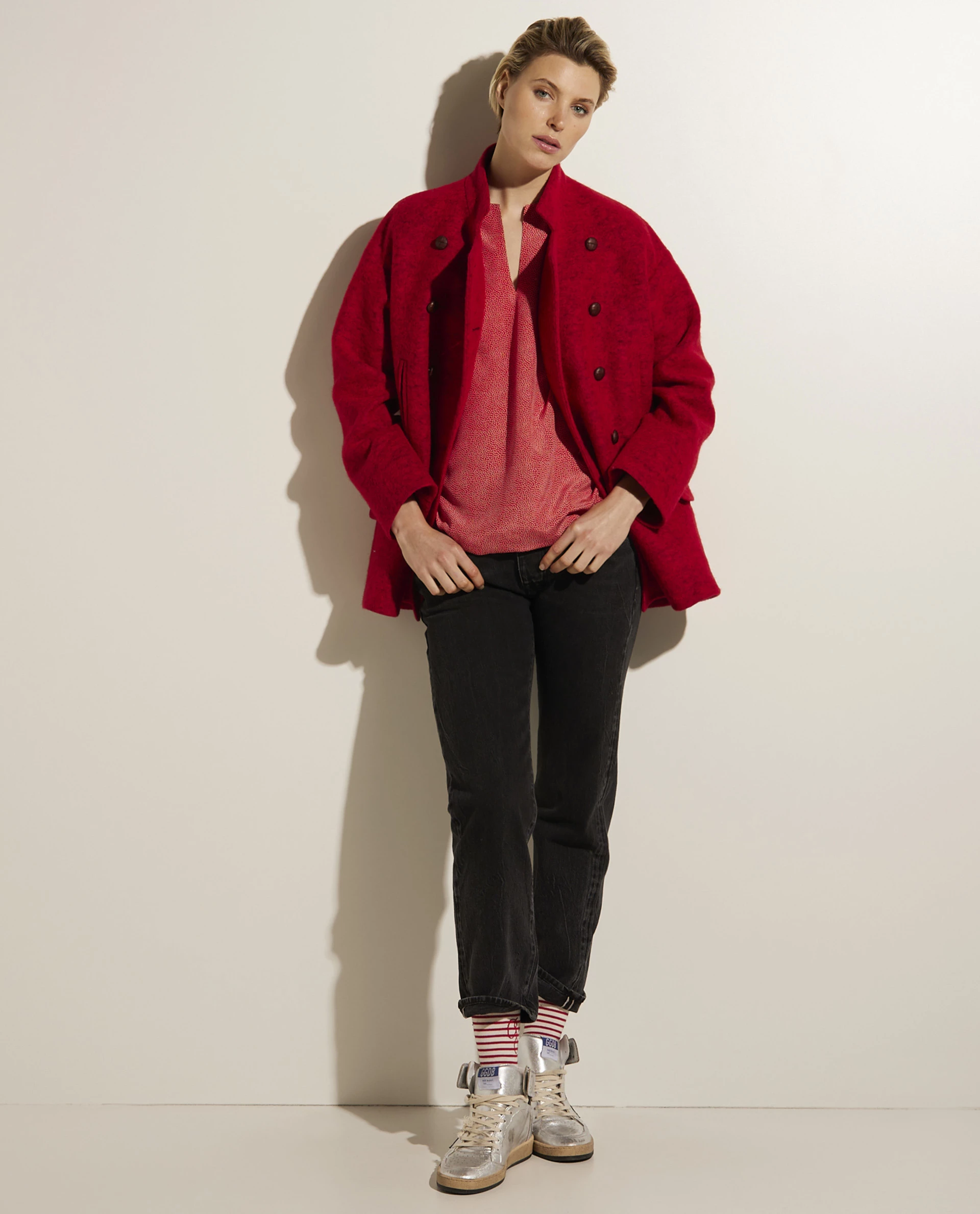 Double breasted blazer from the Pauw Amsterdam collection, made from a firm wool mix quality. This slim fit model features the characteristic buttons and can be worn either open or closed.