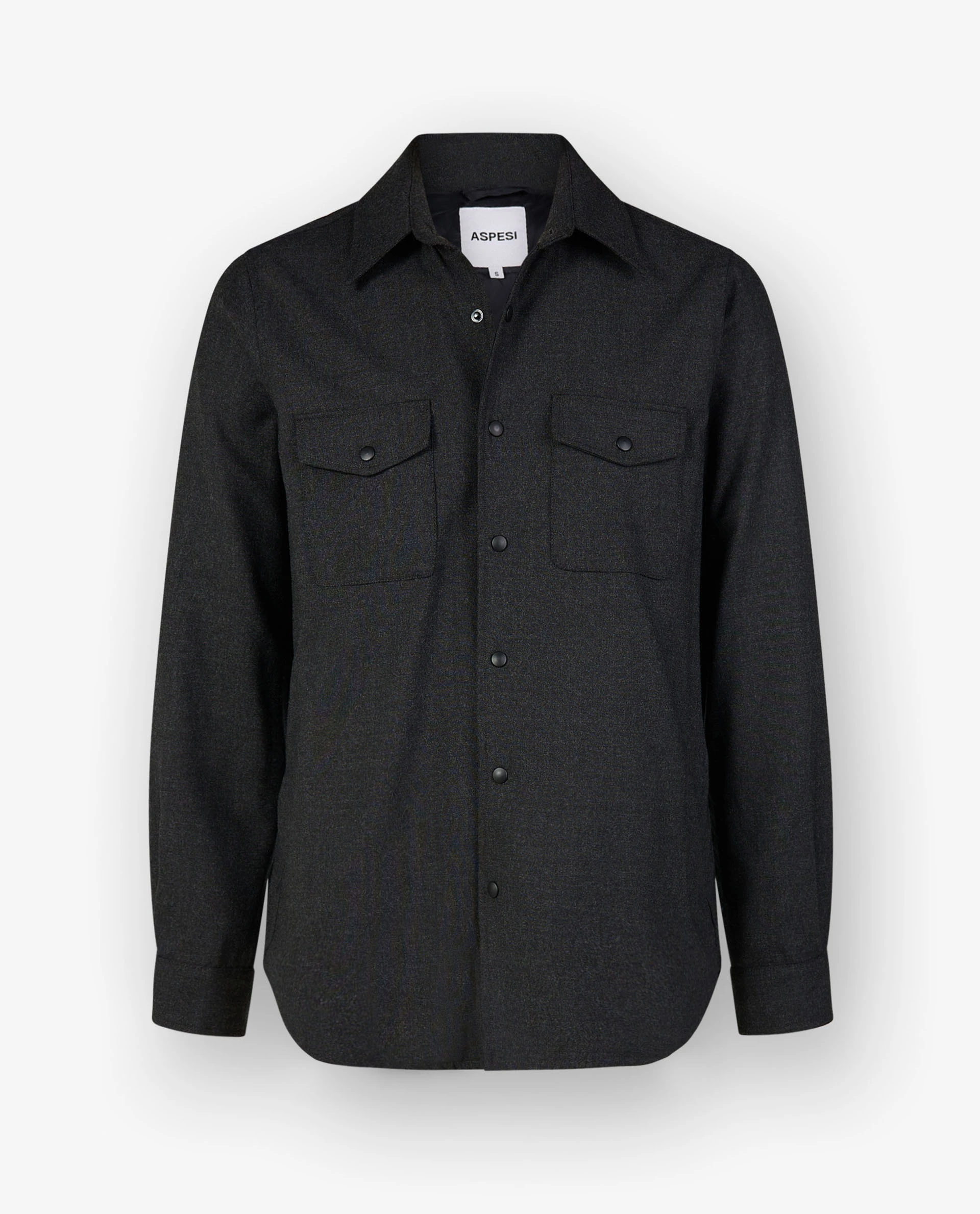 This Aspesi overshirt is made of a wool-blend and is lined on the inside. This makes it a coat, but with the look of a shirt. The press buttons and noticable breastpockets give it a cool appearance.
