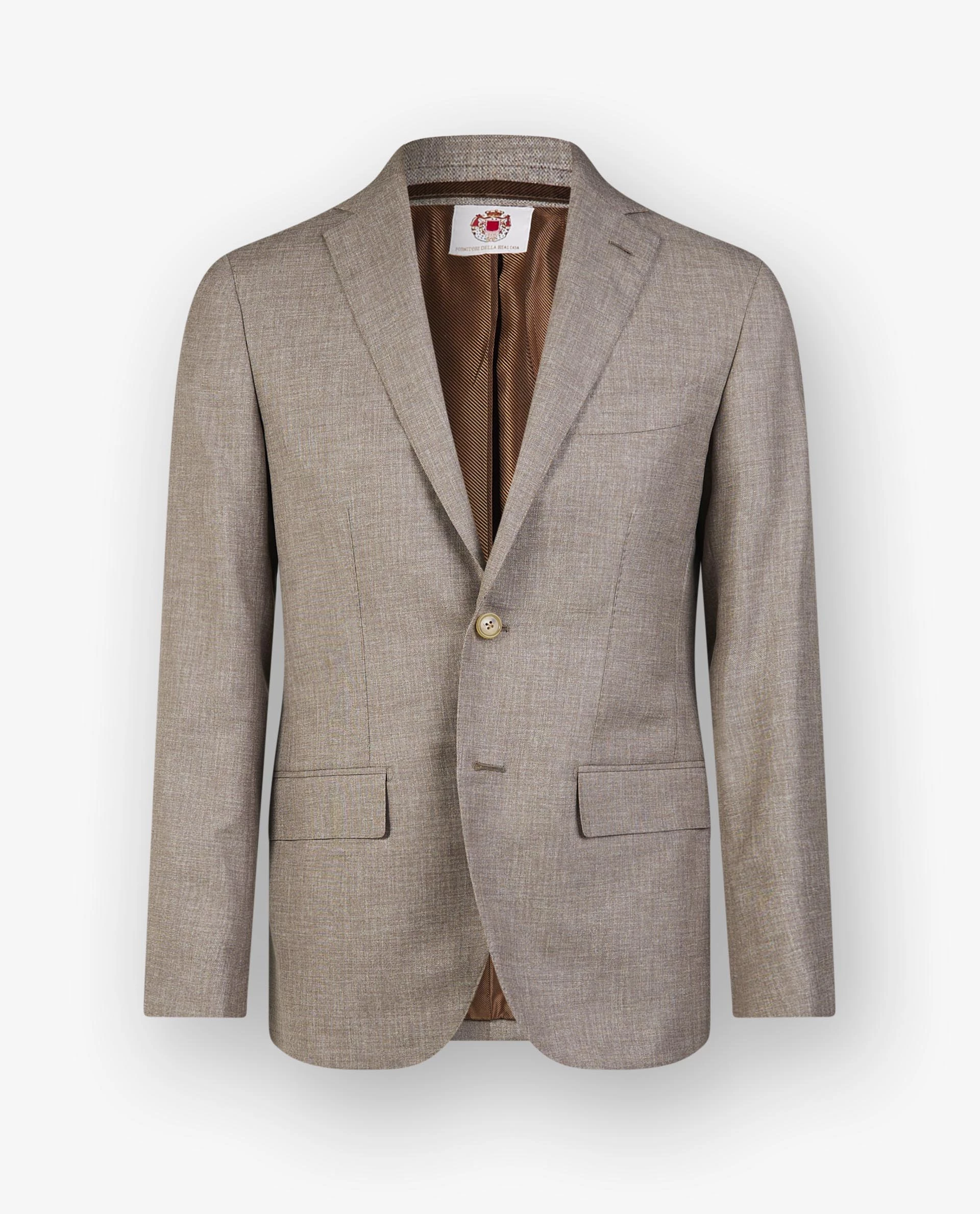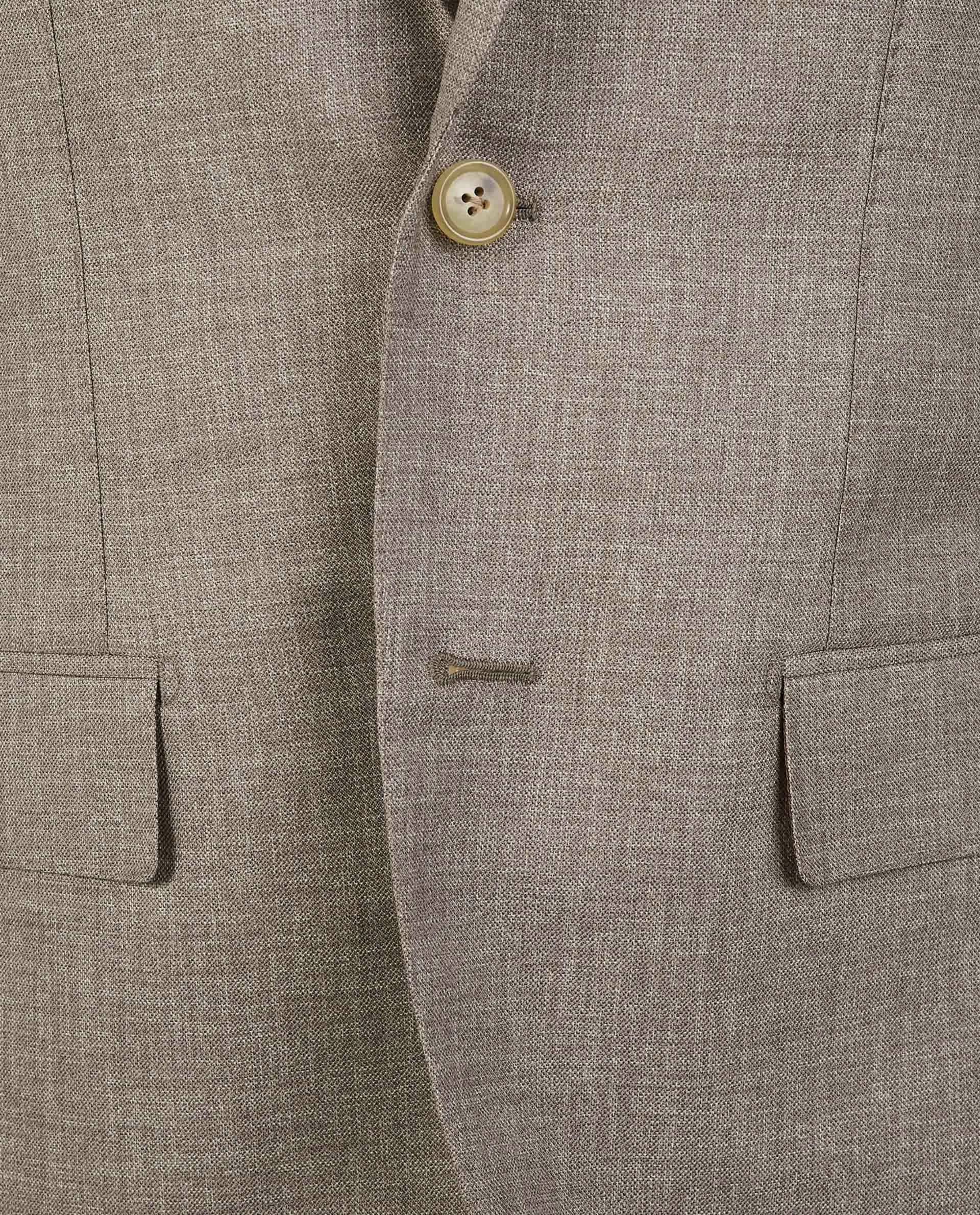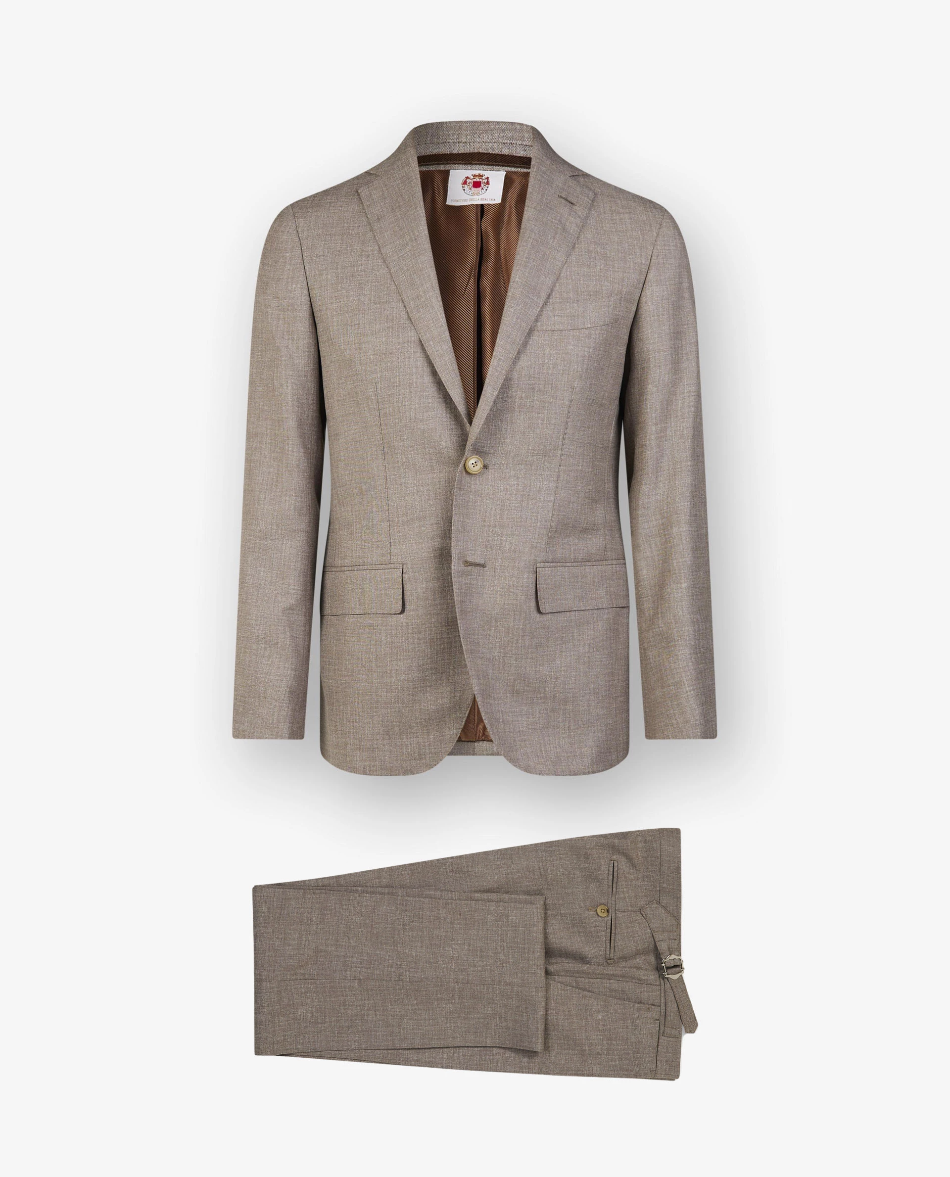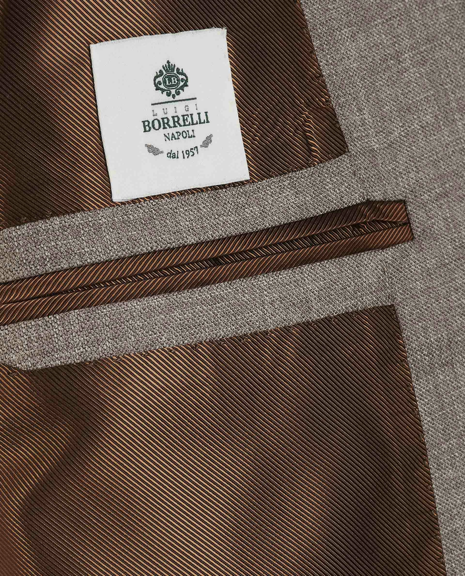 Luxurious suit by Borrelli from Naples. Made in pure wool with a stylish depth in the fabric. The jacket has a 2-button closure with flap pockets and the trousers feature side-adjusters for a sartorial touch.
