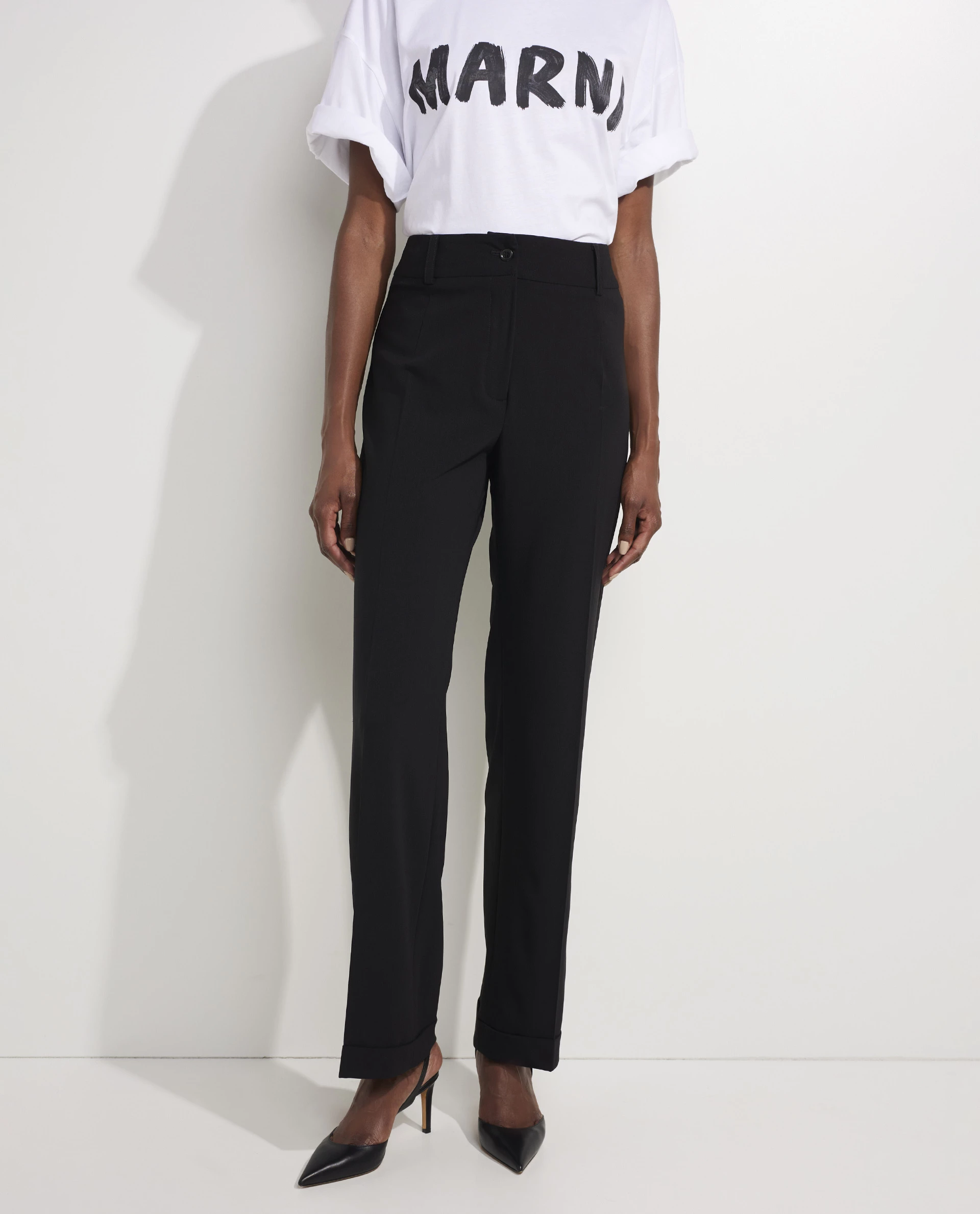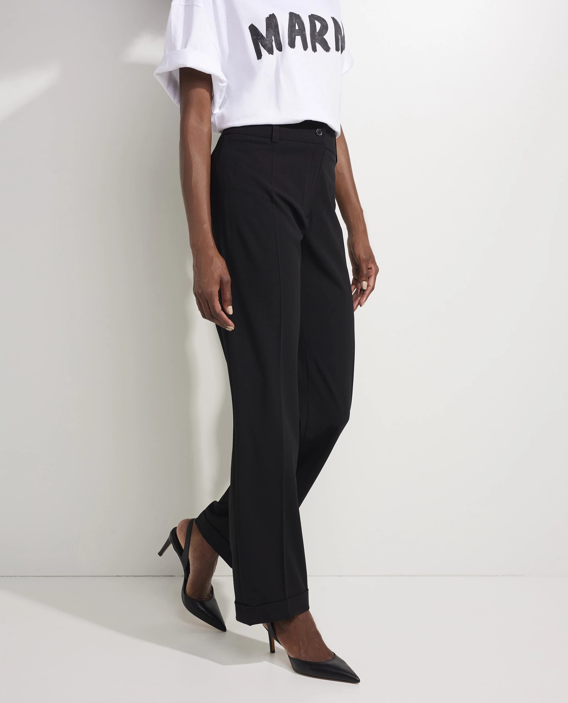 Pauw Amsterdam’s pants are the perfect choice for business – especially when paired with the coordinating blazer. Made of a wool quality, they are pleated and fall to relaxed wide legs. This high-waist style combines best with a loose blouse of with a woolen cardigan for the perfect weekend look.